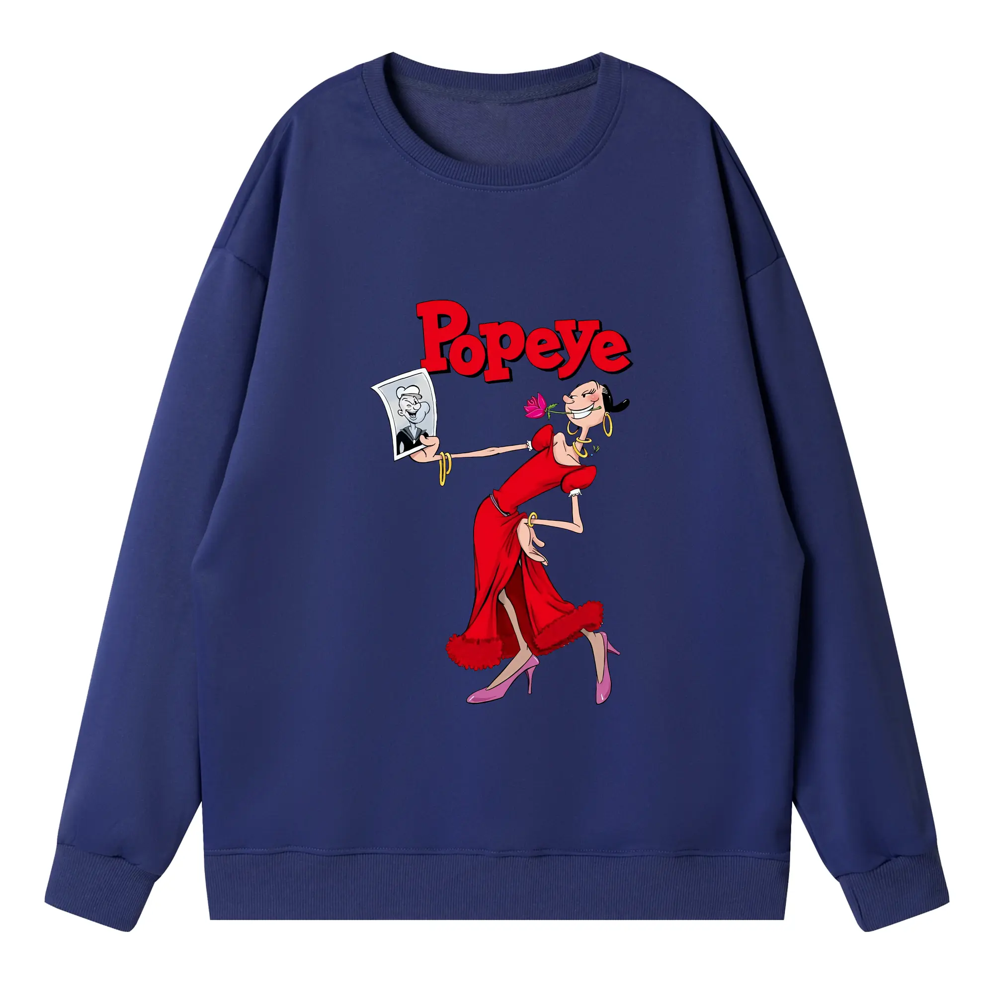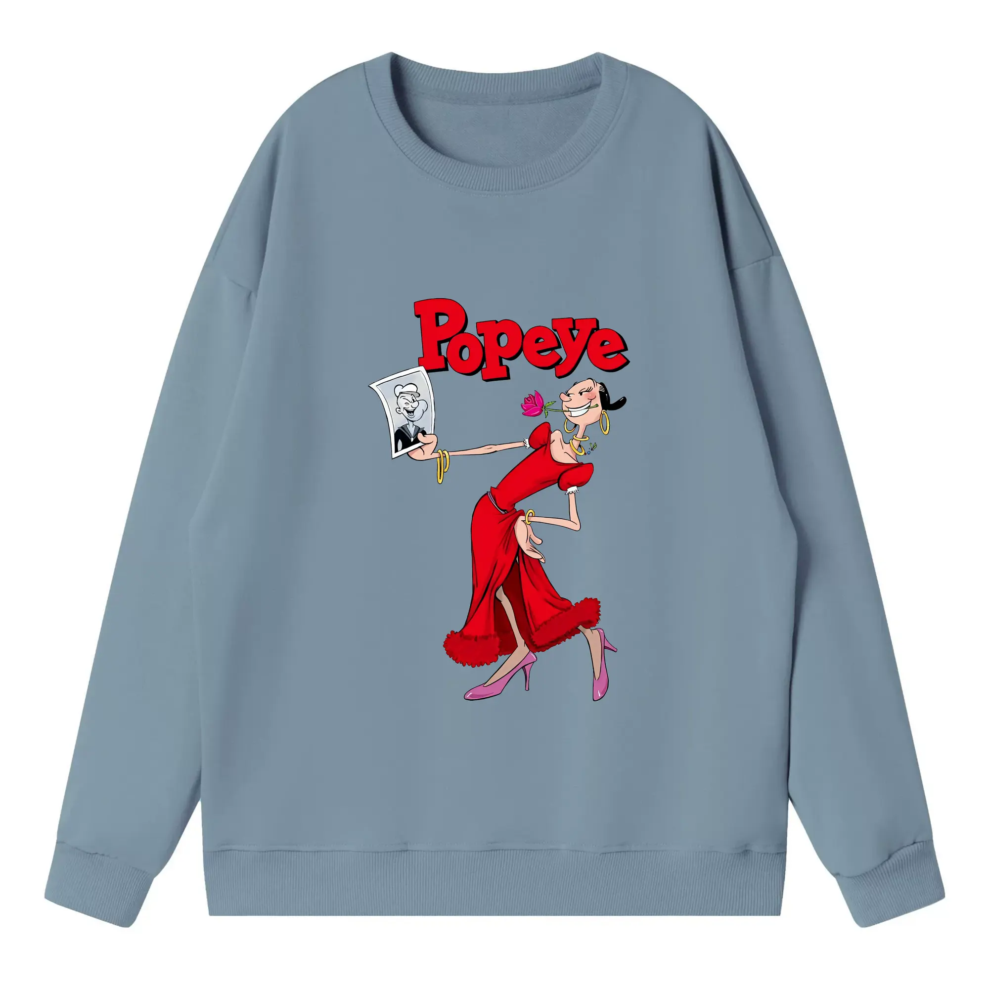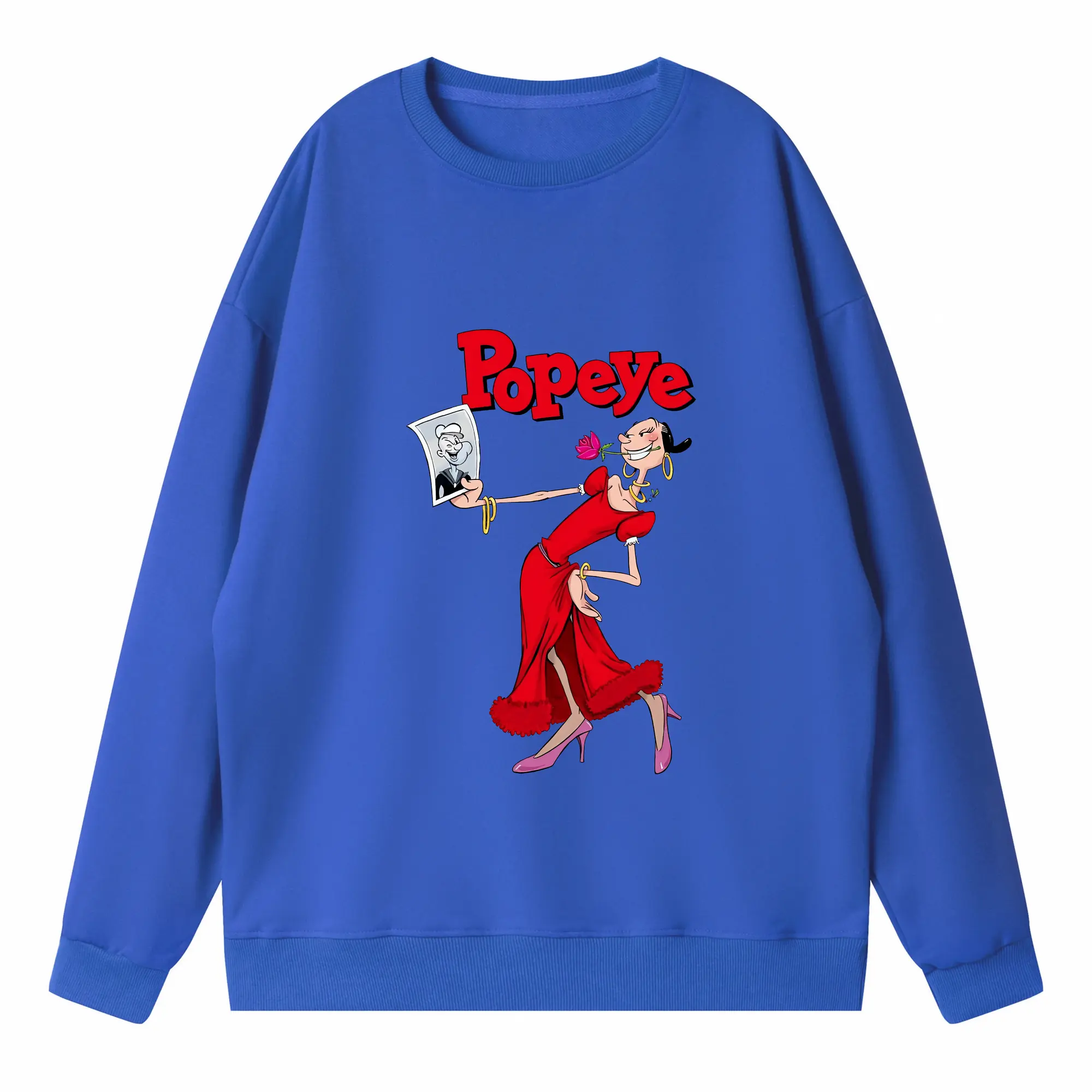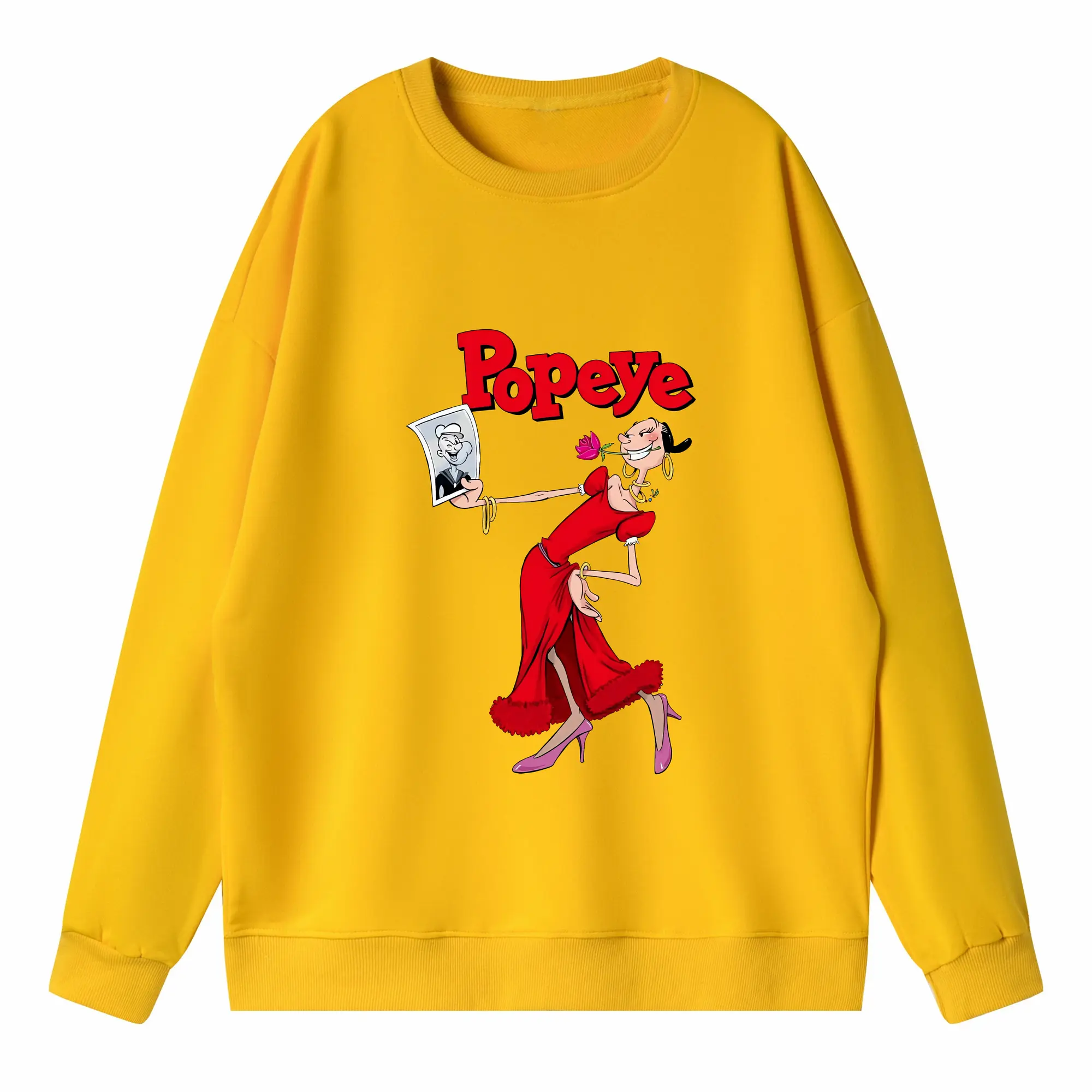 ポパイ グッズ オリーブ・オイル - 高品質 クルーネック スウェット ・ コットン59% ポリエステル41% ・ ユニセックス 長袖 トレーナー ・ カジュアル デイリー スポーツ 散歩用