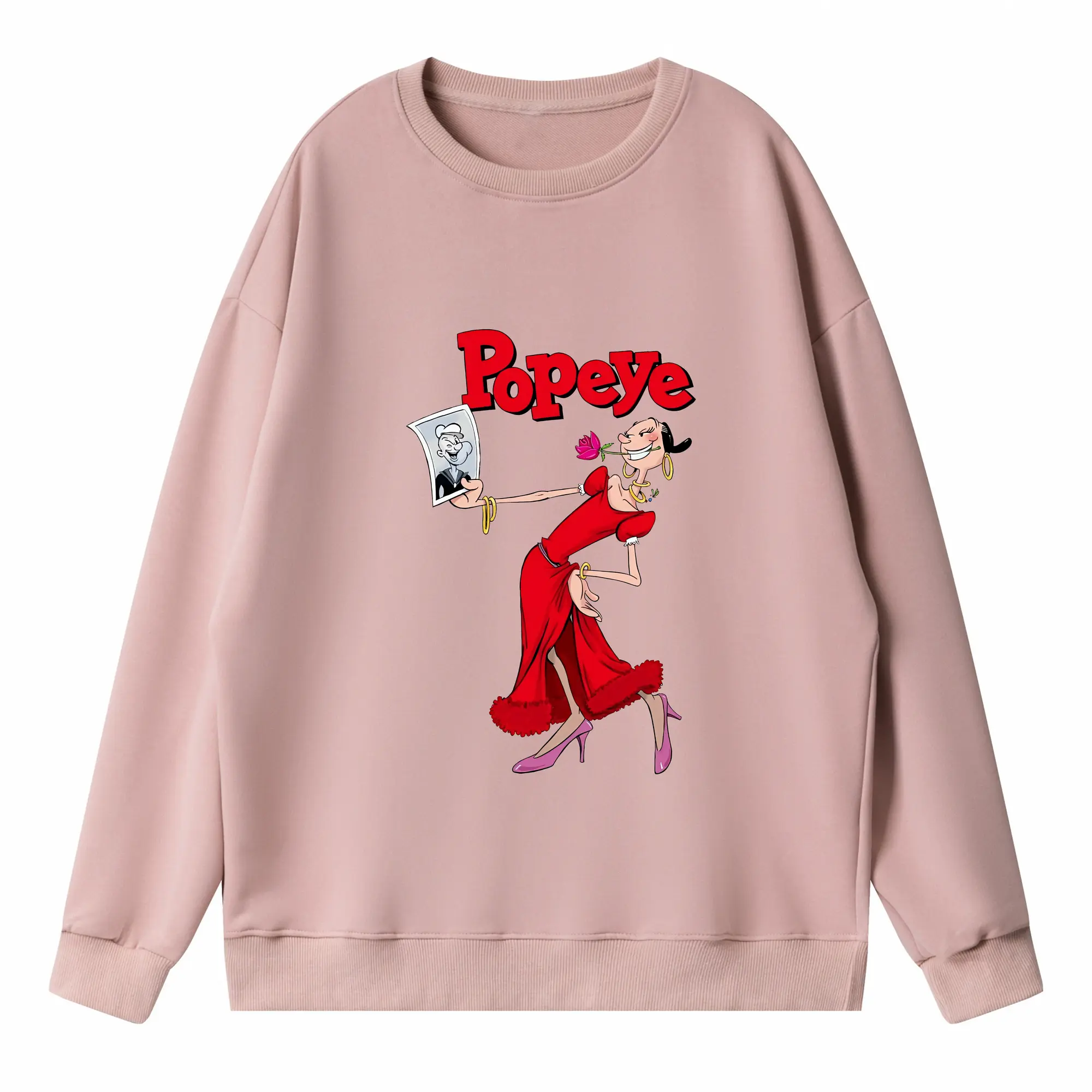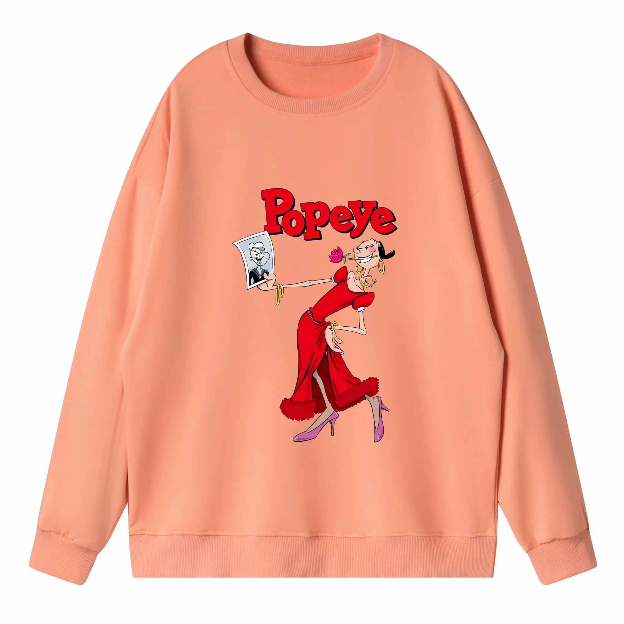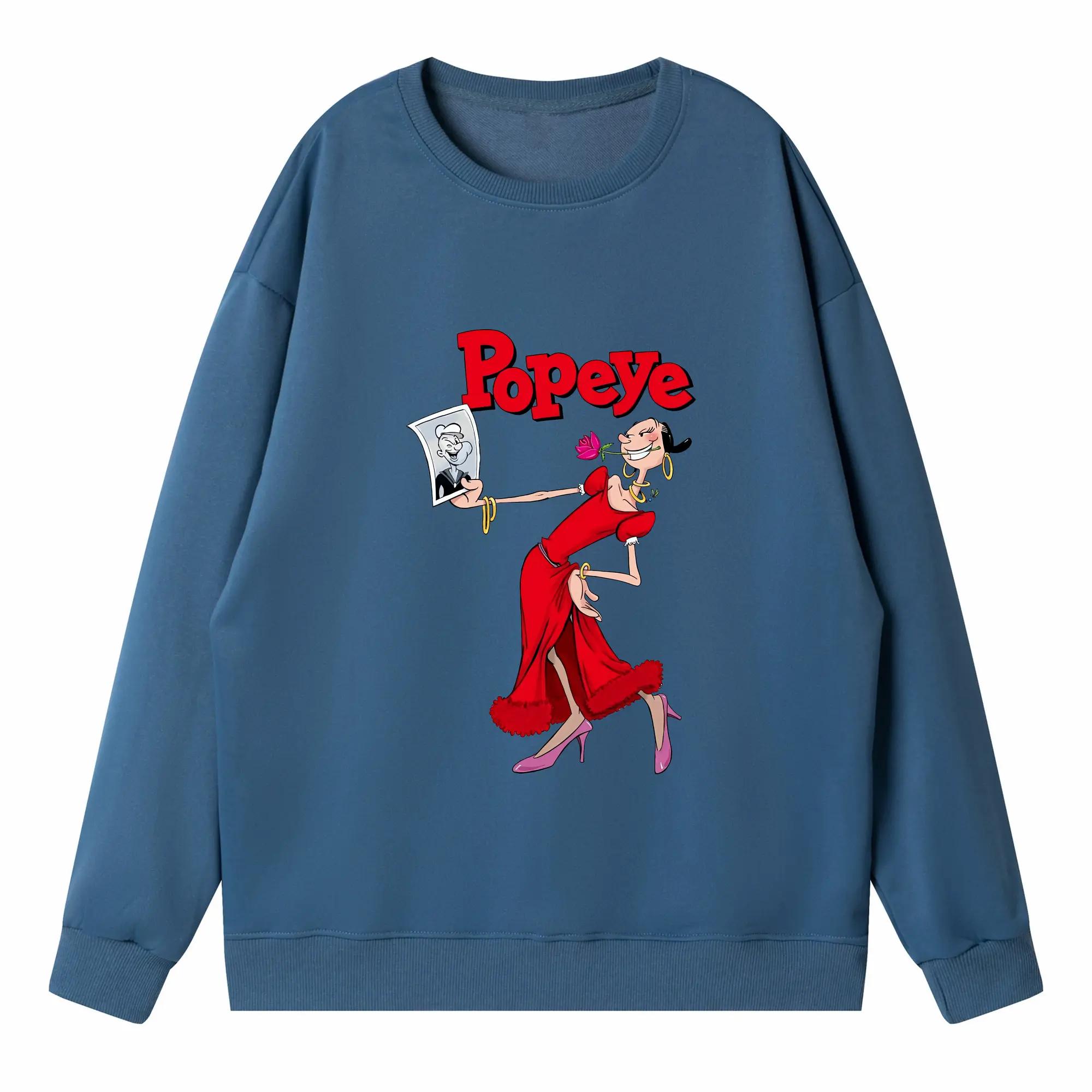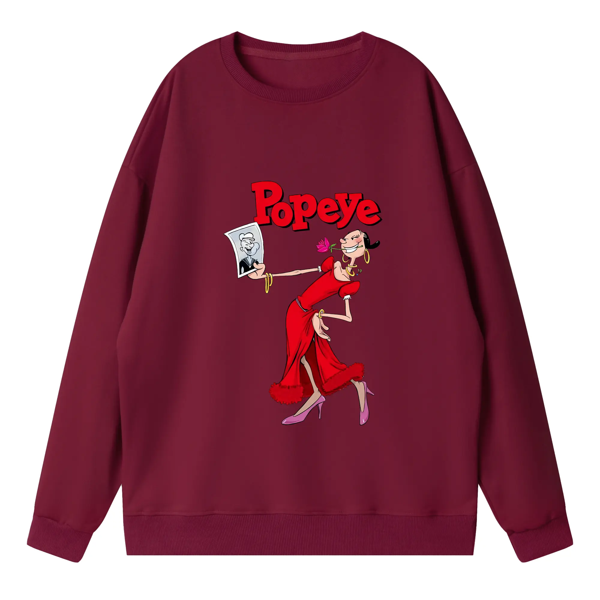 ポパイ グッズ オリーブ・オイル - 高品質 クルーネック スウェット ・ コットン59% ポリエステル41% ・ ユニセックス 長袖 トレーナー ・ カジュアル デイリー スポーツ 散歩用
