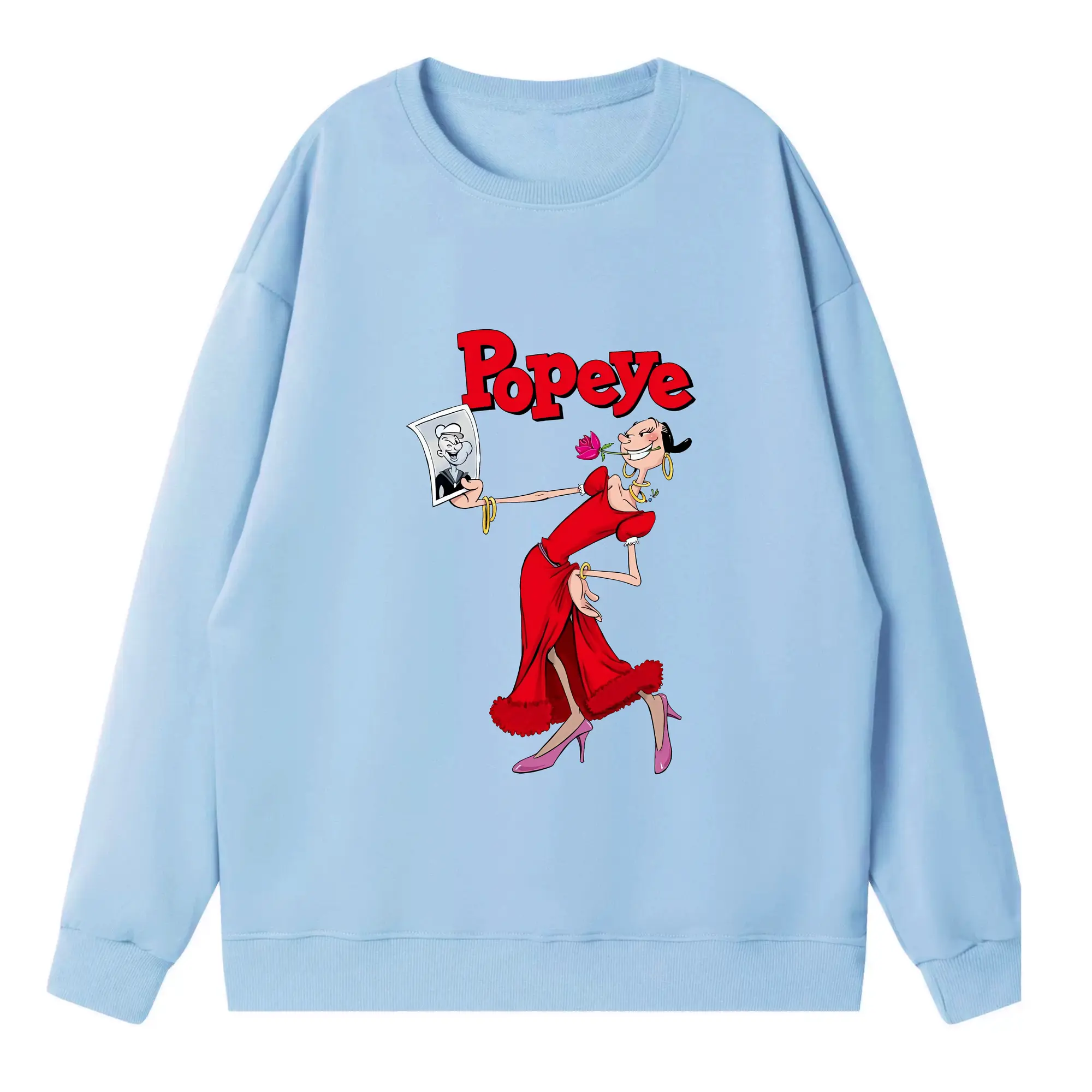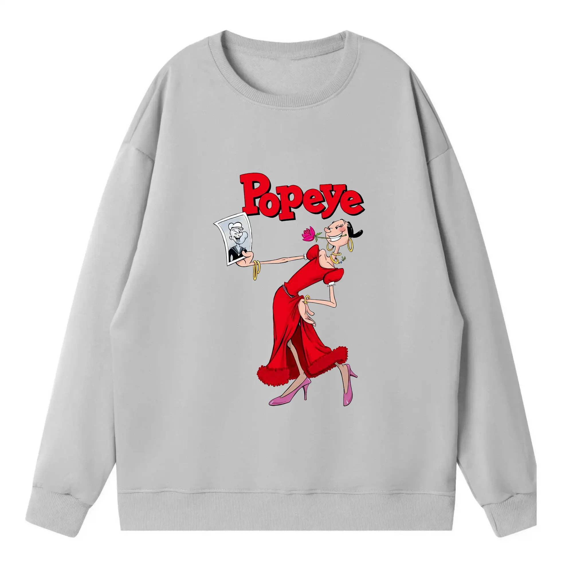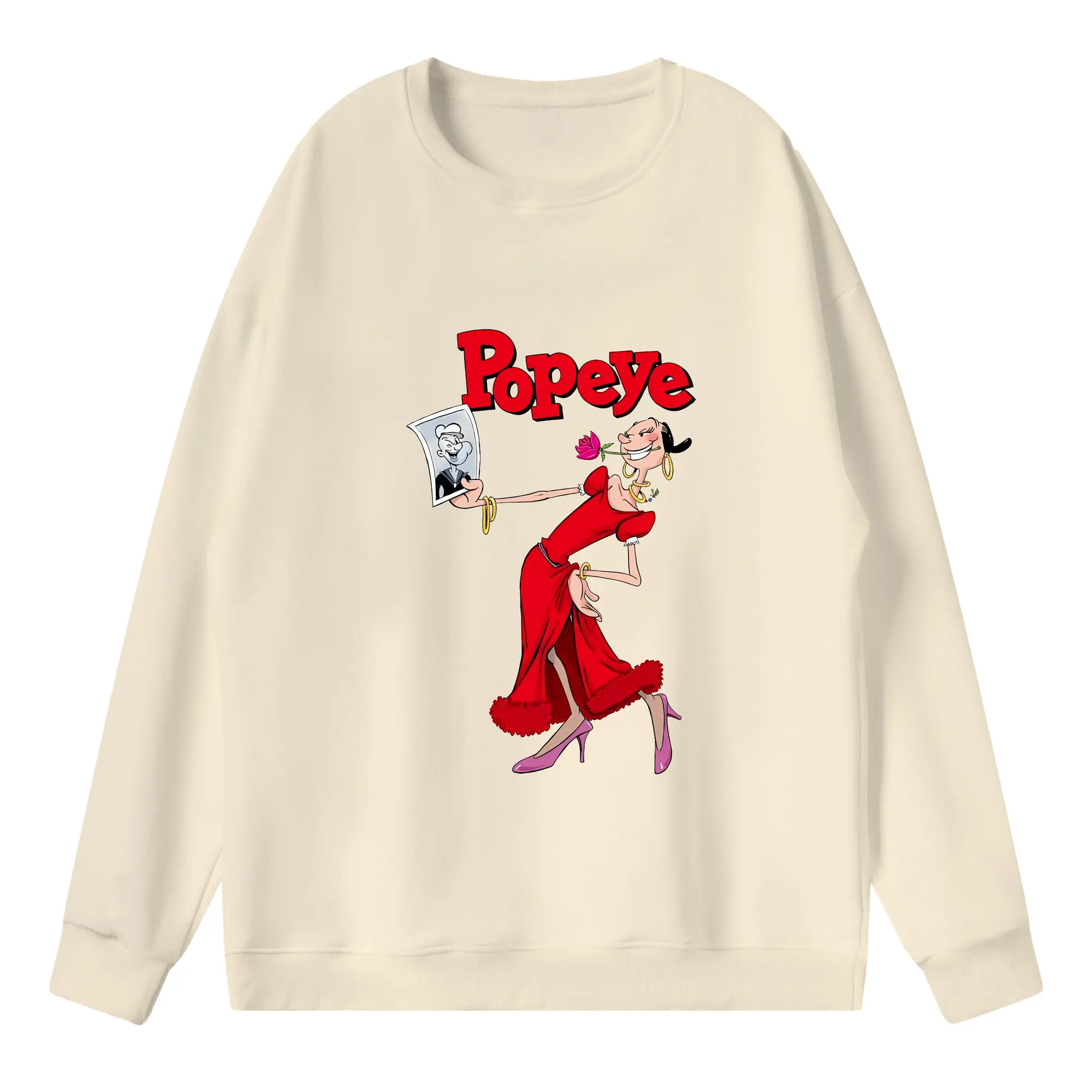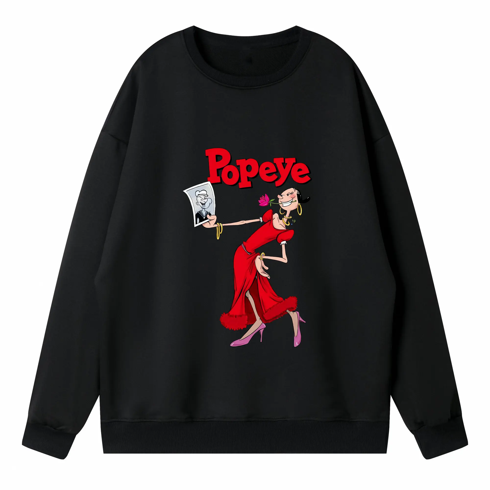 ポパイ グッズ オリーブ・オイル - 高品質 クルーネック スウェット ・ コットン59% ポリエステル41% ・ ユニセックス 長袖 トレーナー ・ カジュアル デイリー スポーツ 散歩用