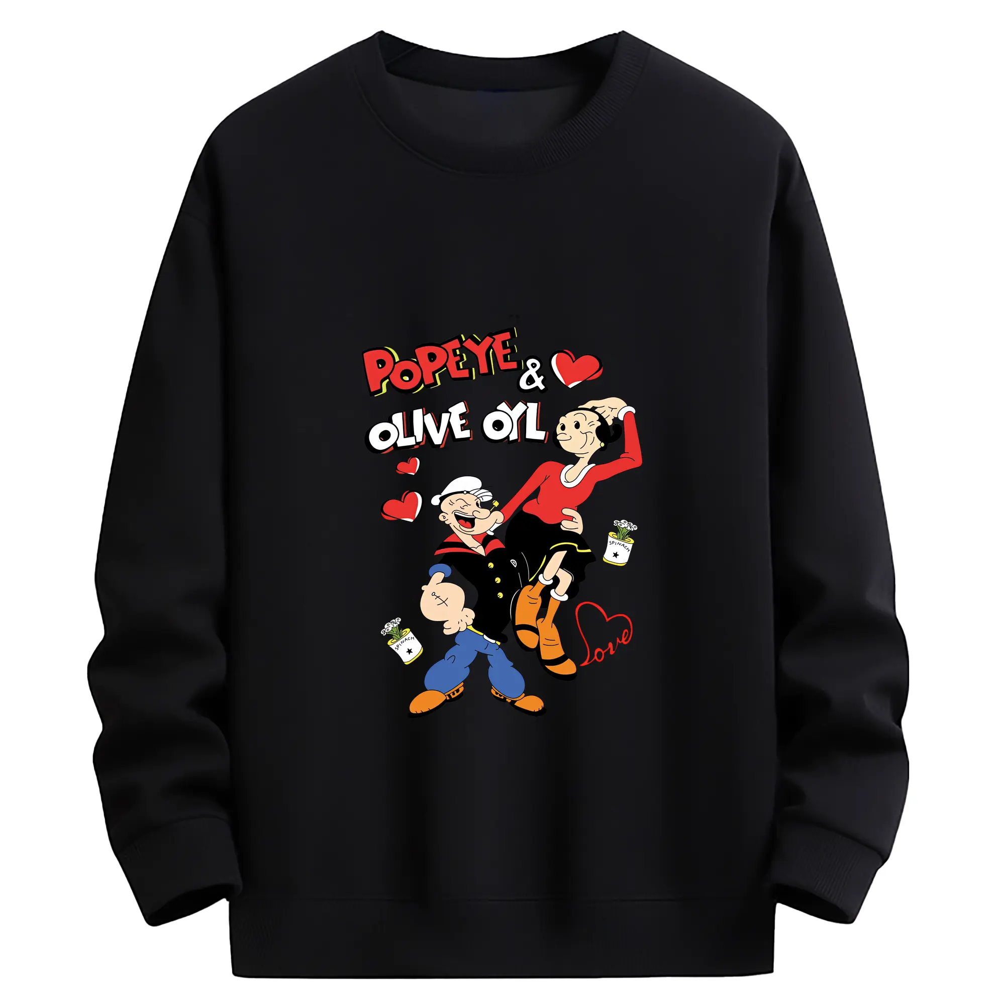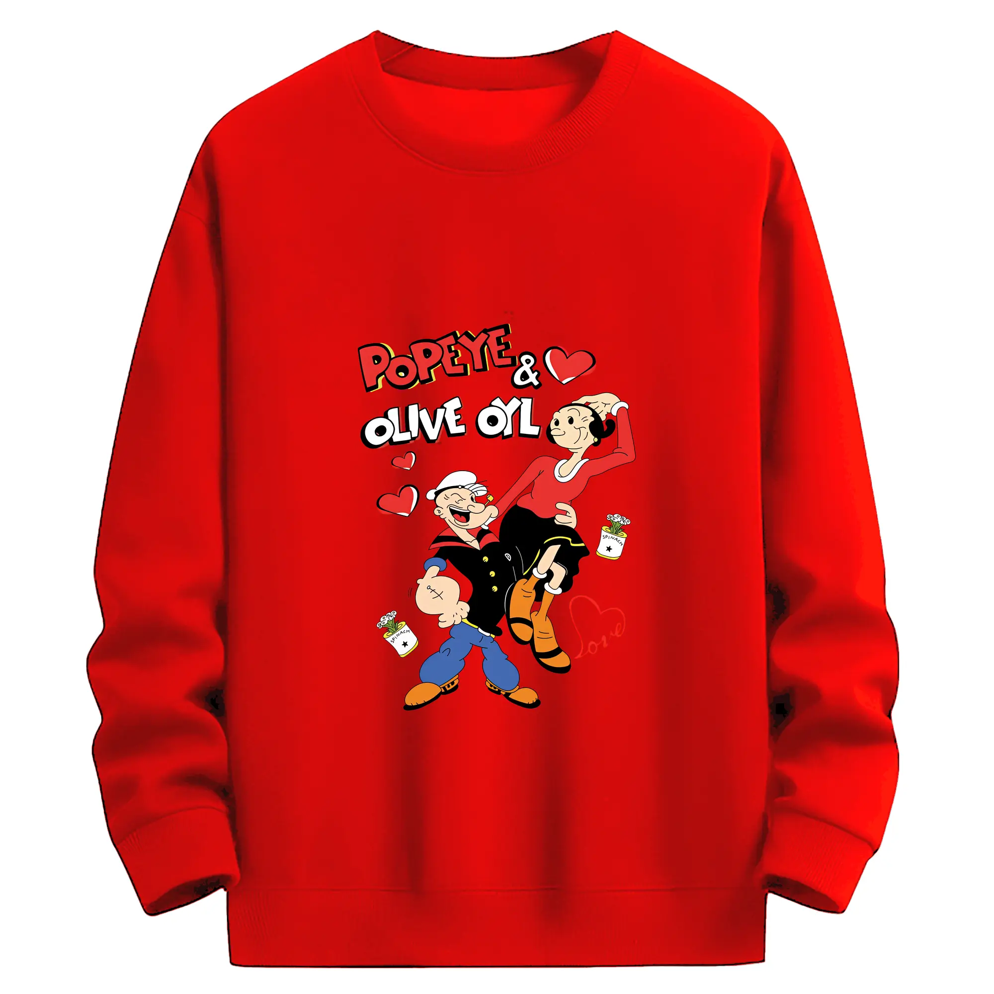 ポパイ グッズ オリーブ・オイル - 高品質 クルーネック スウェット ・ コットン59% ポリエステル41% ・ ユニセックス 長袖 トレーナー ・ カジュアル デイリー スポーツ 散歩用