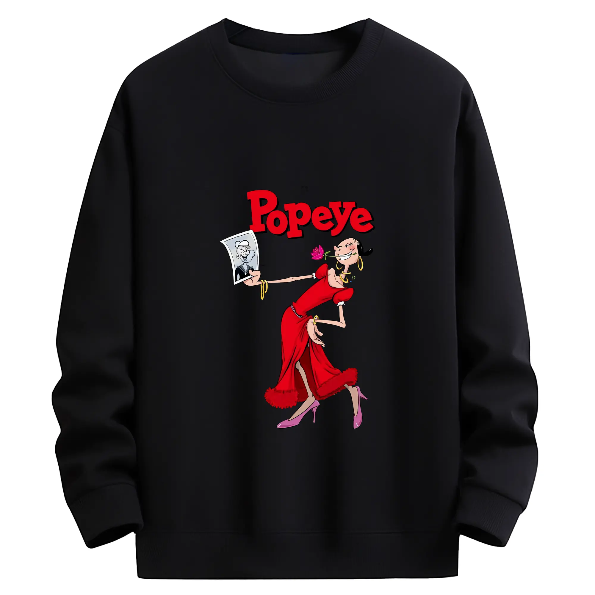 ポパイ グッズ オリーブ・オイル - 高品質 クルーネック スウェット ・ コットン59% ポリエステル41% ・ ユニセックス 長袖 トレーナー ・ カジュアル デイリー スポーツ 散歩用
