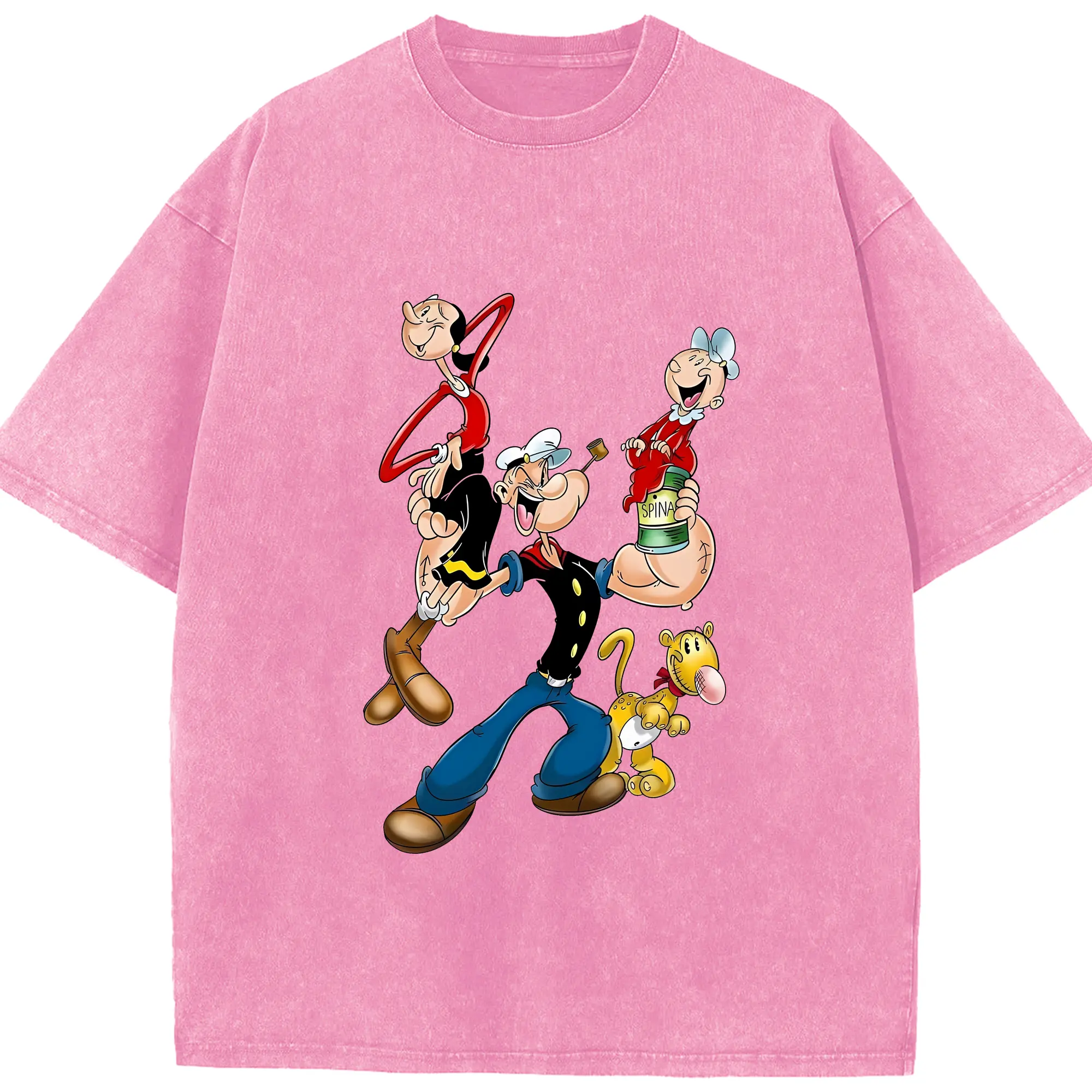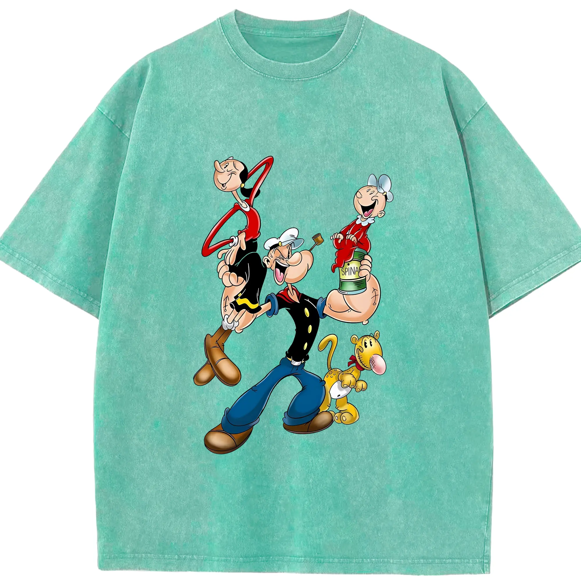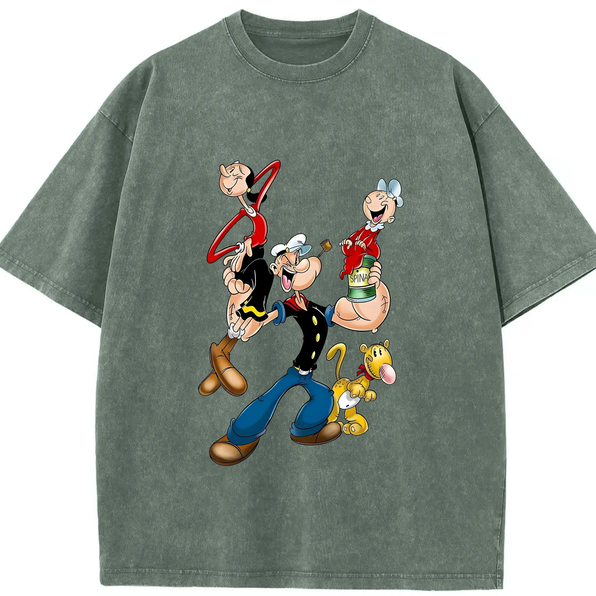 ポパイ グッズ オリーブ・オイル - 綿100% ヴィンテージ風 半袖Tシャツ ・ 背面プリント ・ 柔らか肌触り ・ 通気性 快適 ・ スポーツ カジュアル 外出用