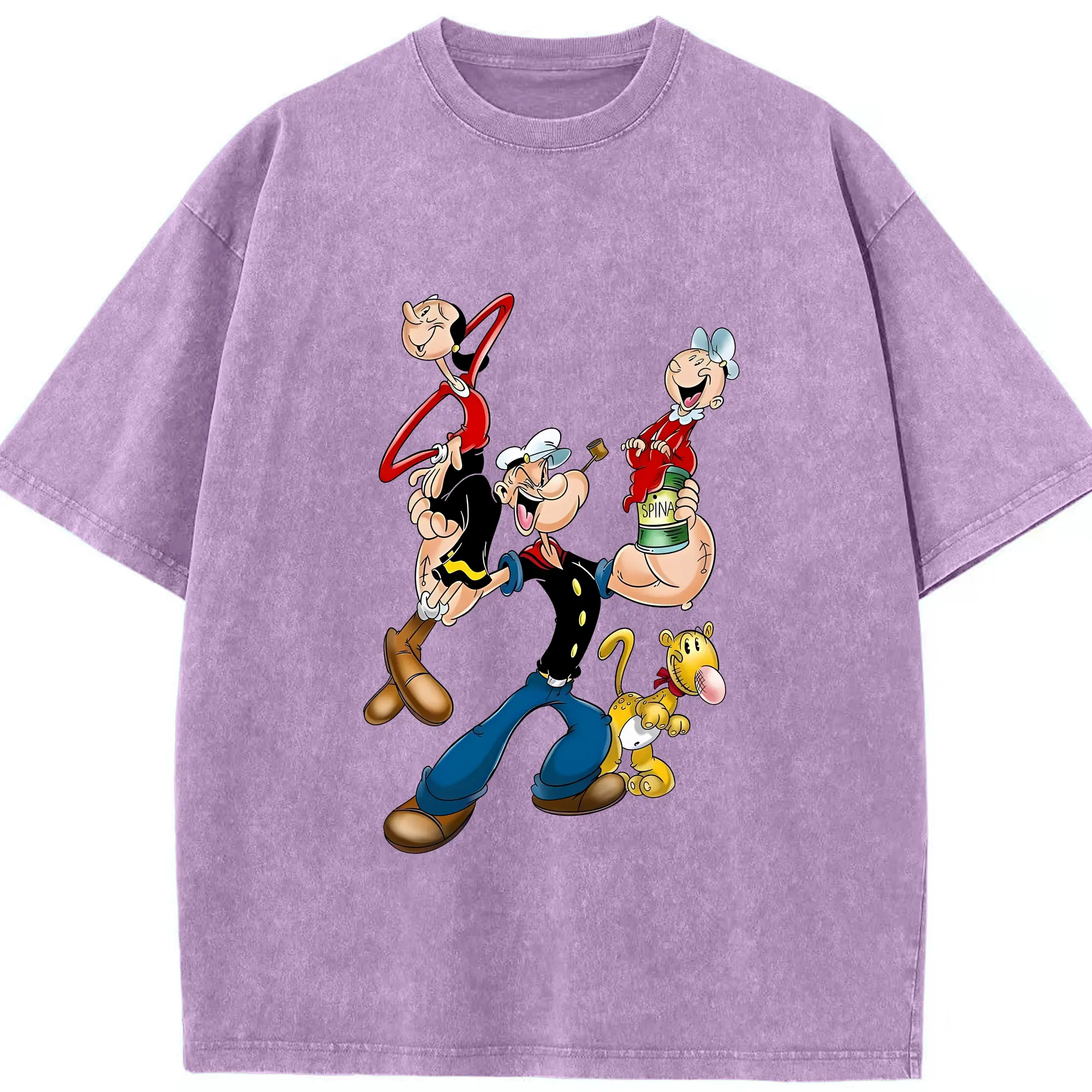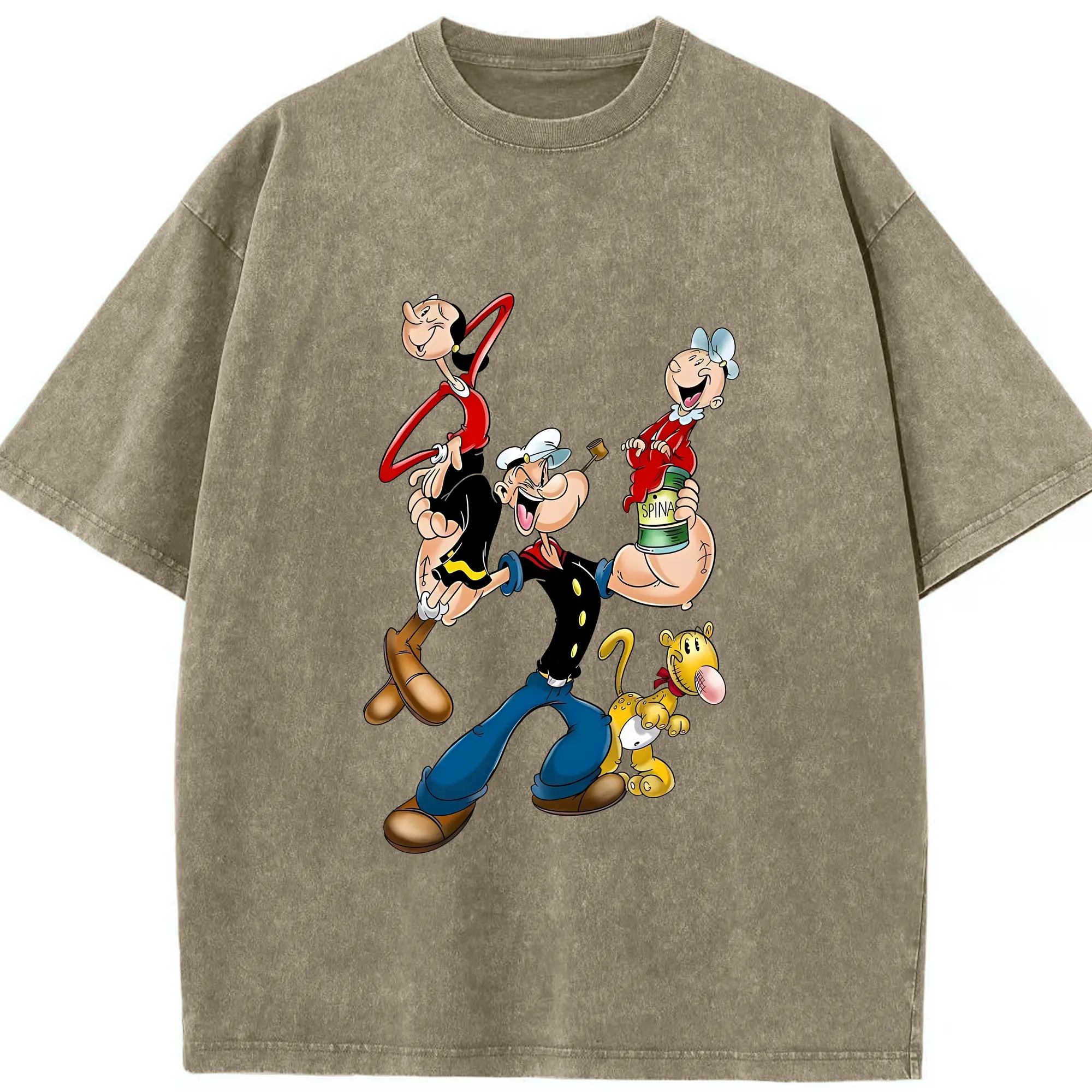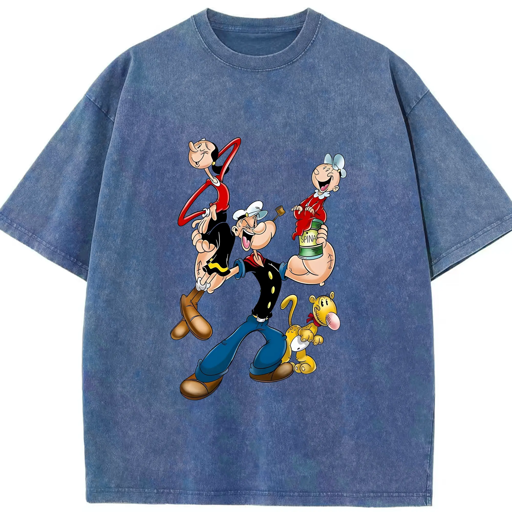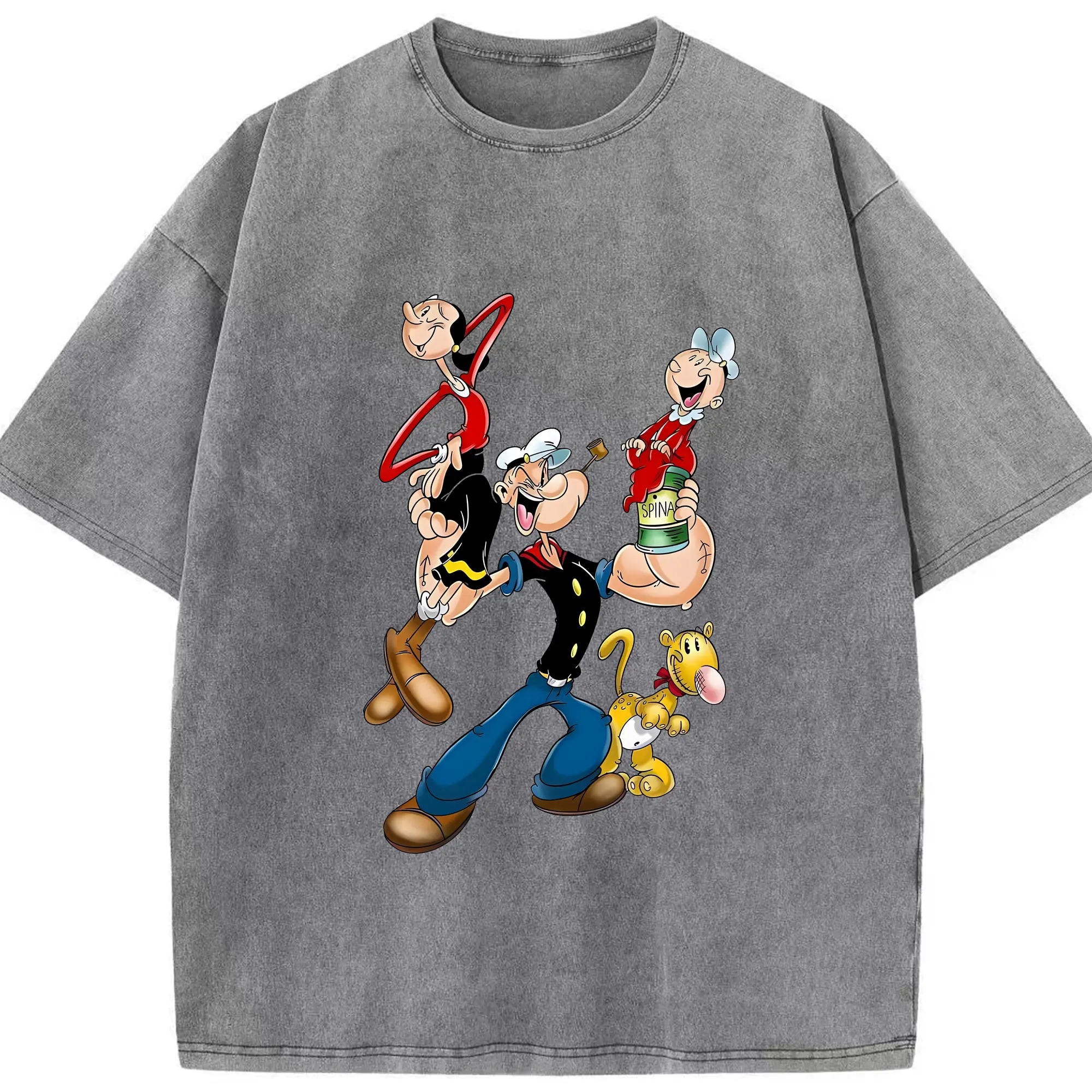 ポパイ グッズ オリーブ・オイル - 綿100% ヴィンテージ風 半袖Tシャツ ・ 背面プリント ・ 柔らか肌触り ・ 通気性 快適 ・ スポーツ カジュアル 外出用