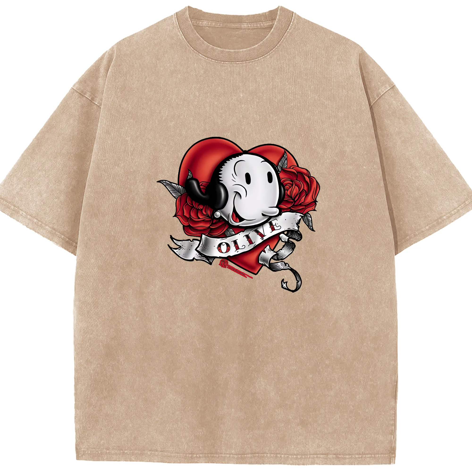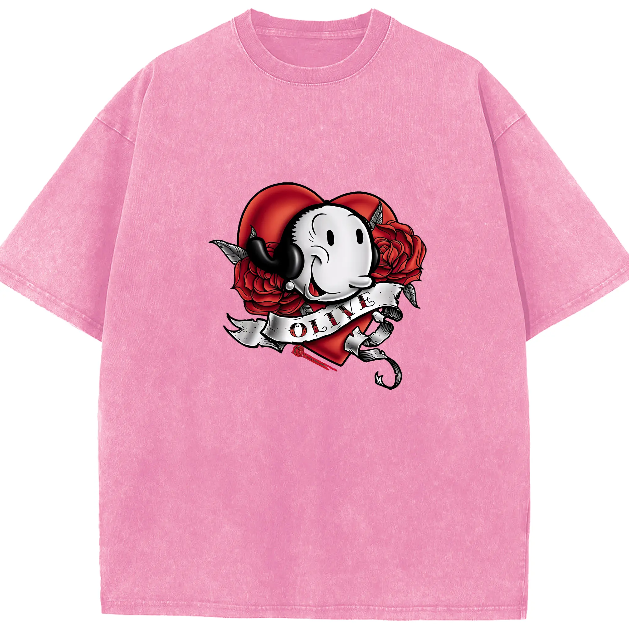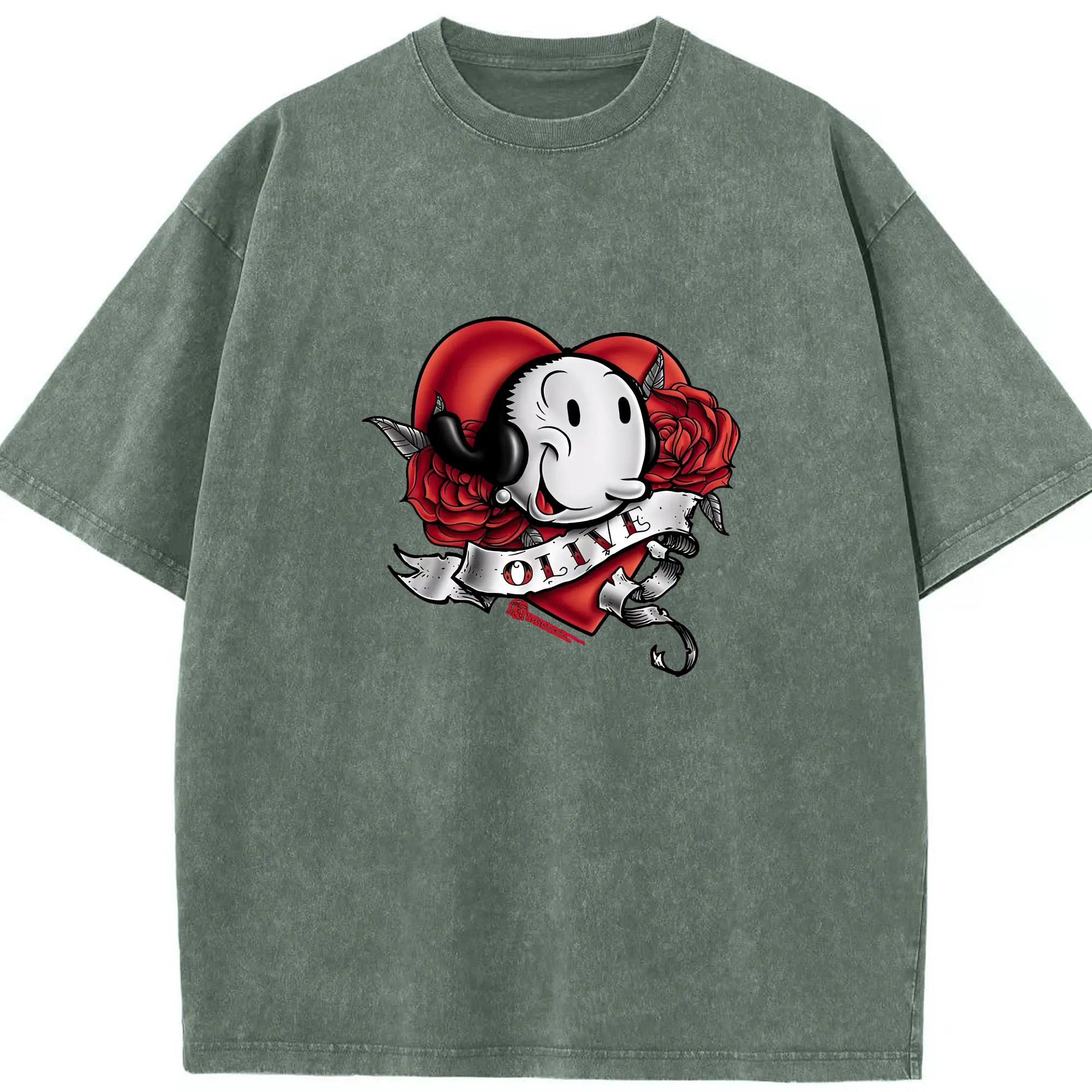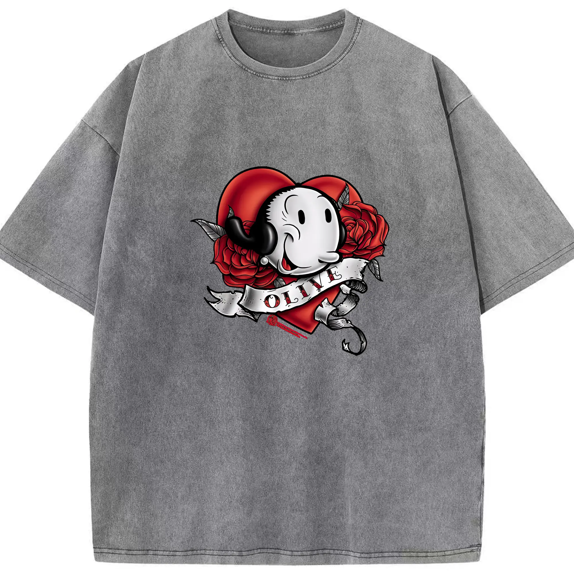 ポパイ グッズ オリーブ・オイル - 綿100% ヴィンテージ風 半袖Tシャツ ・ 背面プリント ・ 柔らか肌触り ・ 通気性 快適 ・ スポーツ カジュアル 外出用