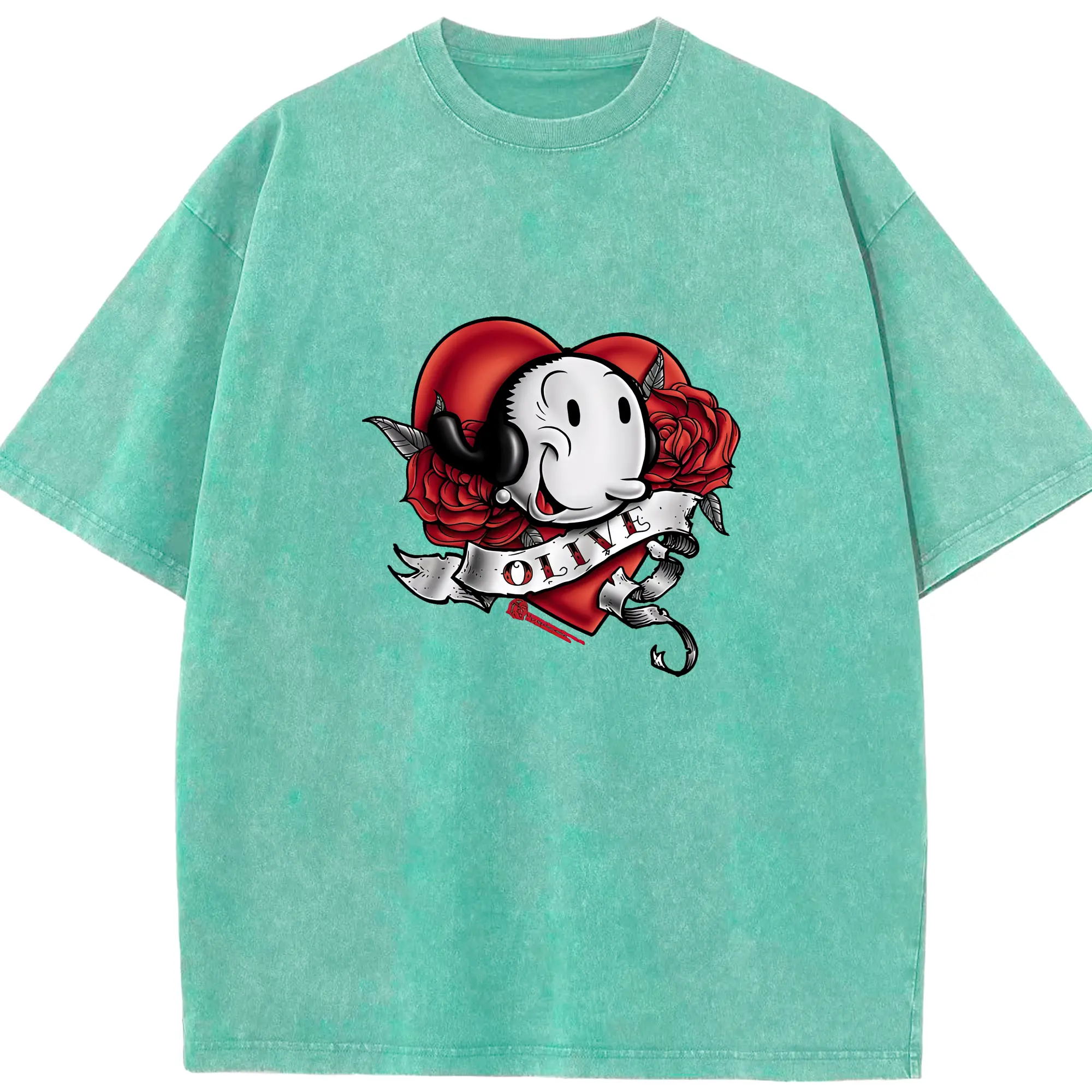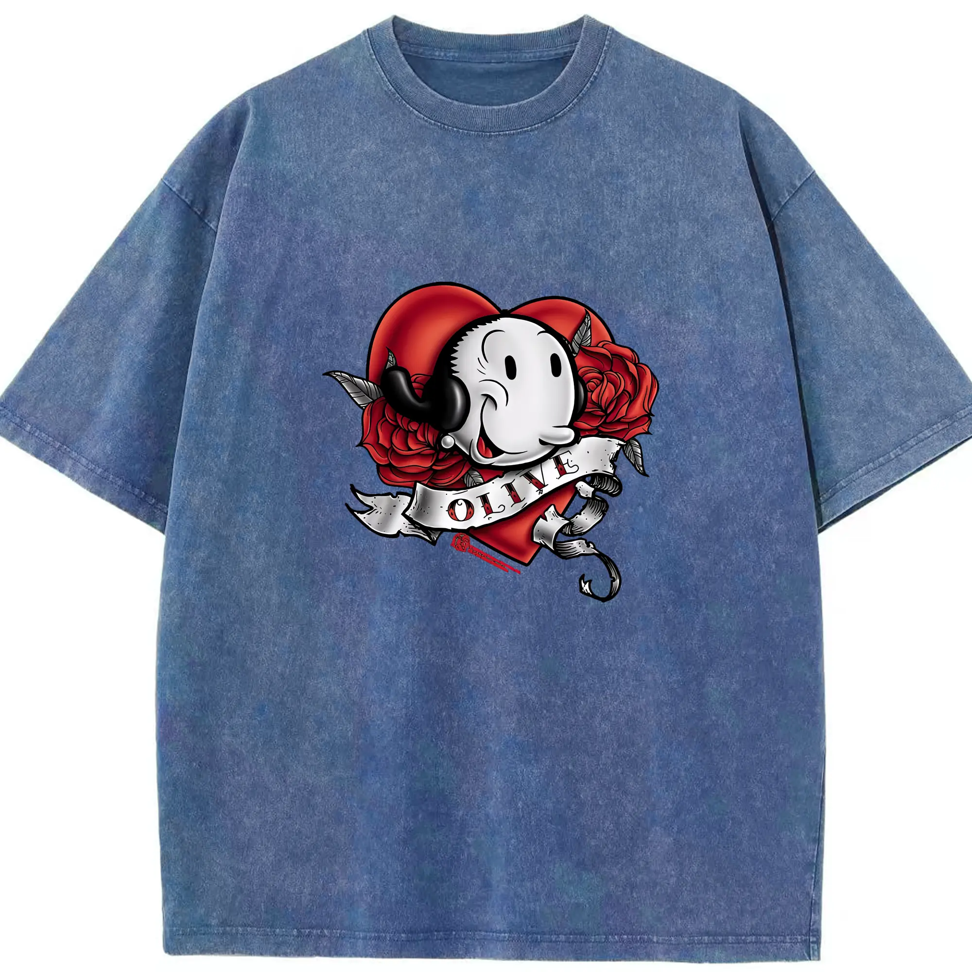ポパイ グッズ オリーブ・オイル - 綿100% 半袖Tシャツ ・ フロントプリント ・ 快適 通気性 ・ 日常使い 散歩 スポーツ用