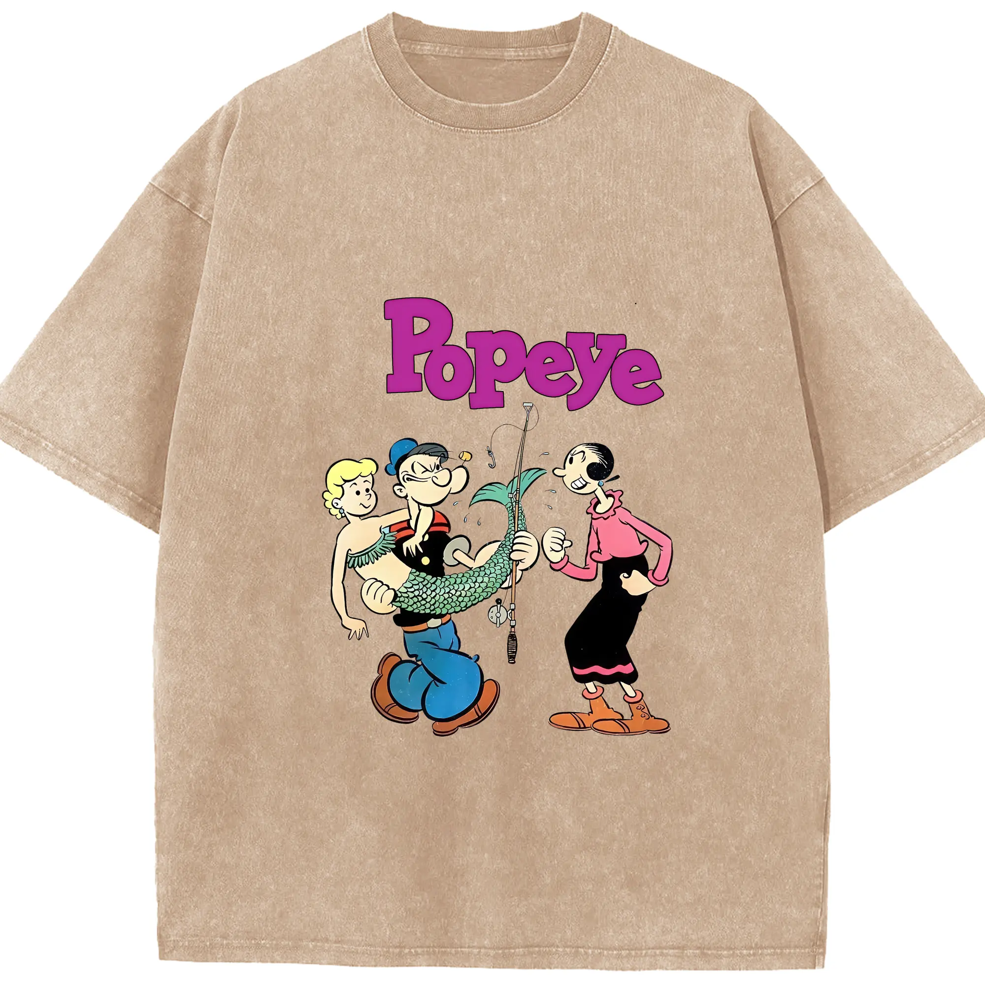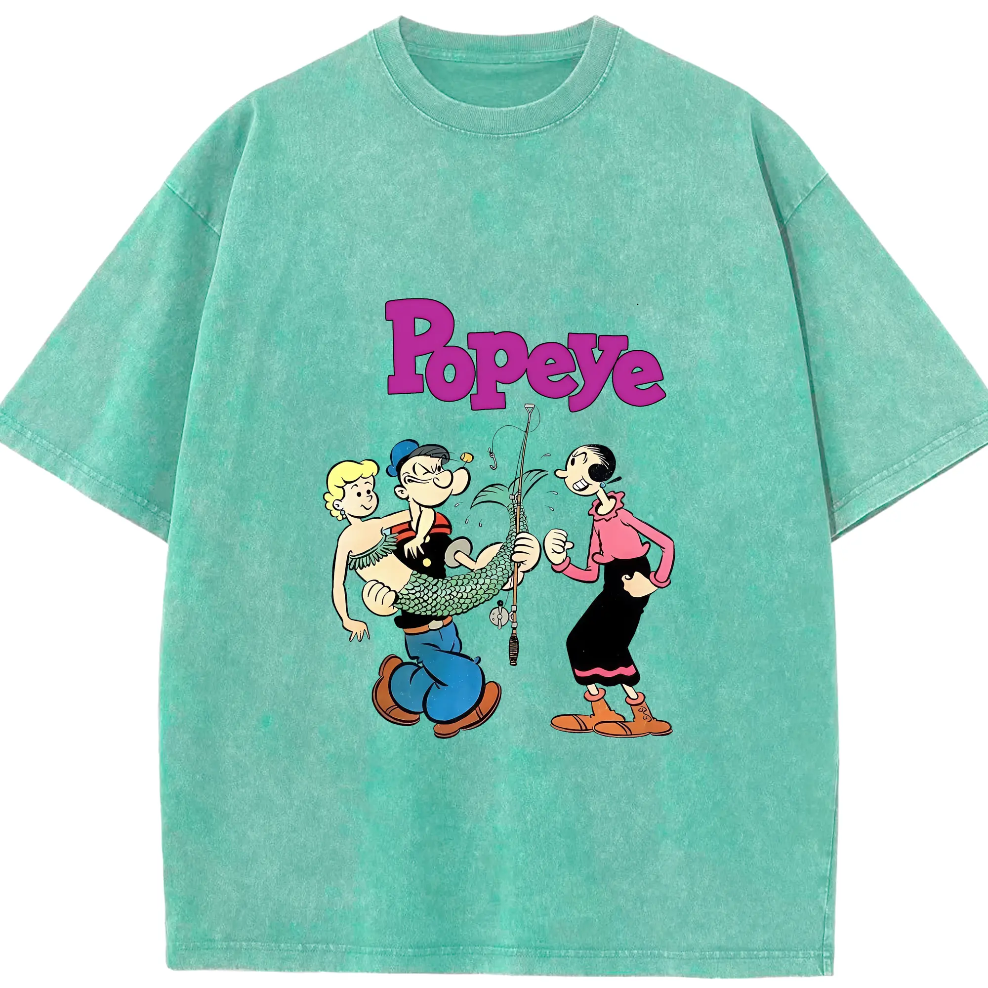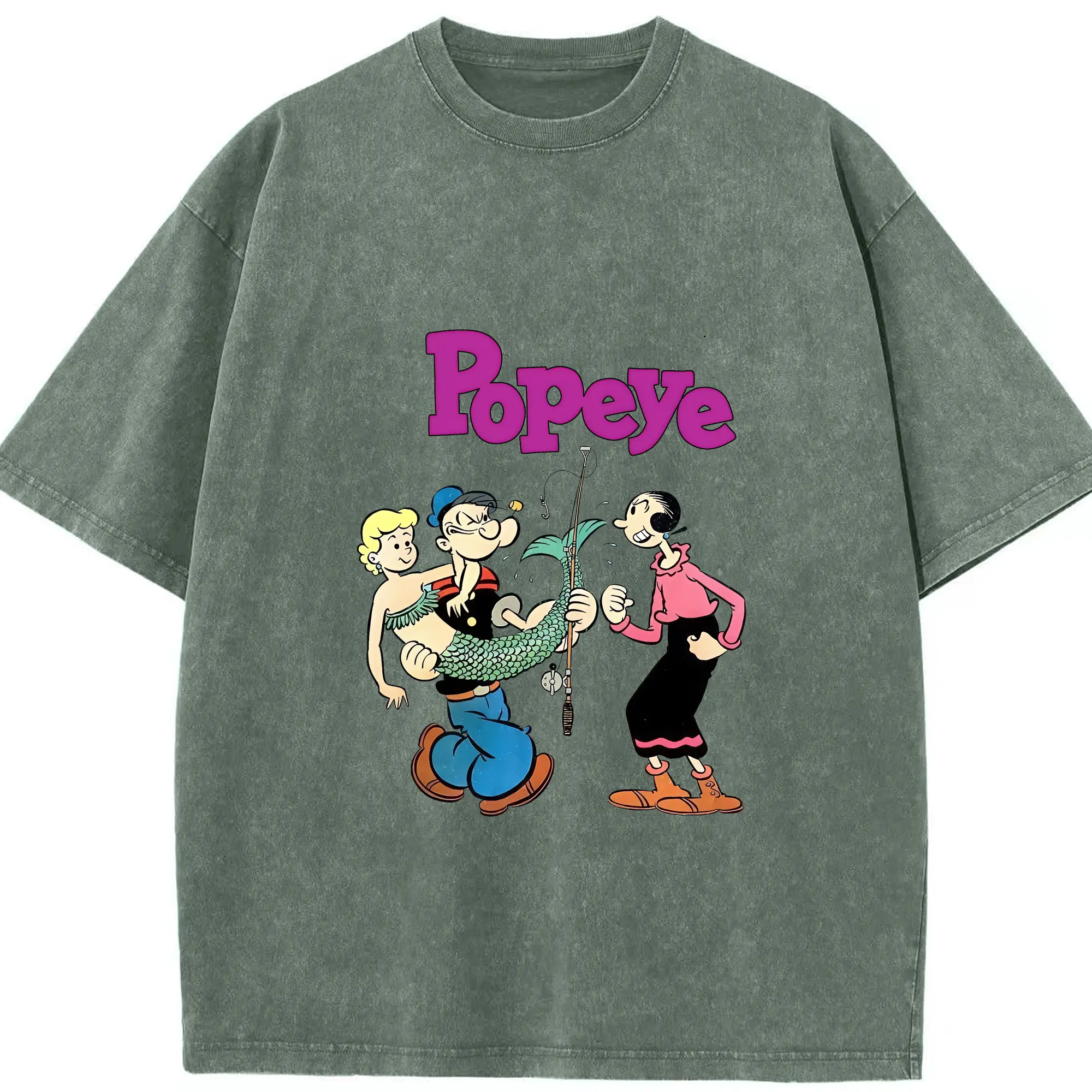 ポパイ グッズ オリーブ・オイル - 綿100% ヴィンテージ風 半袖Tシャツ ・ 背面プリント ・ 柔らか肌触り ・ 通気性 快適 ・ スポーツ カジュアル 外出用