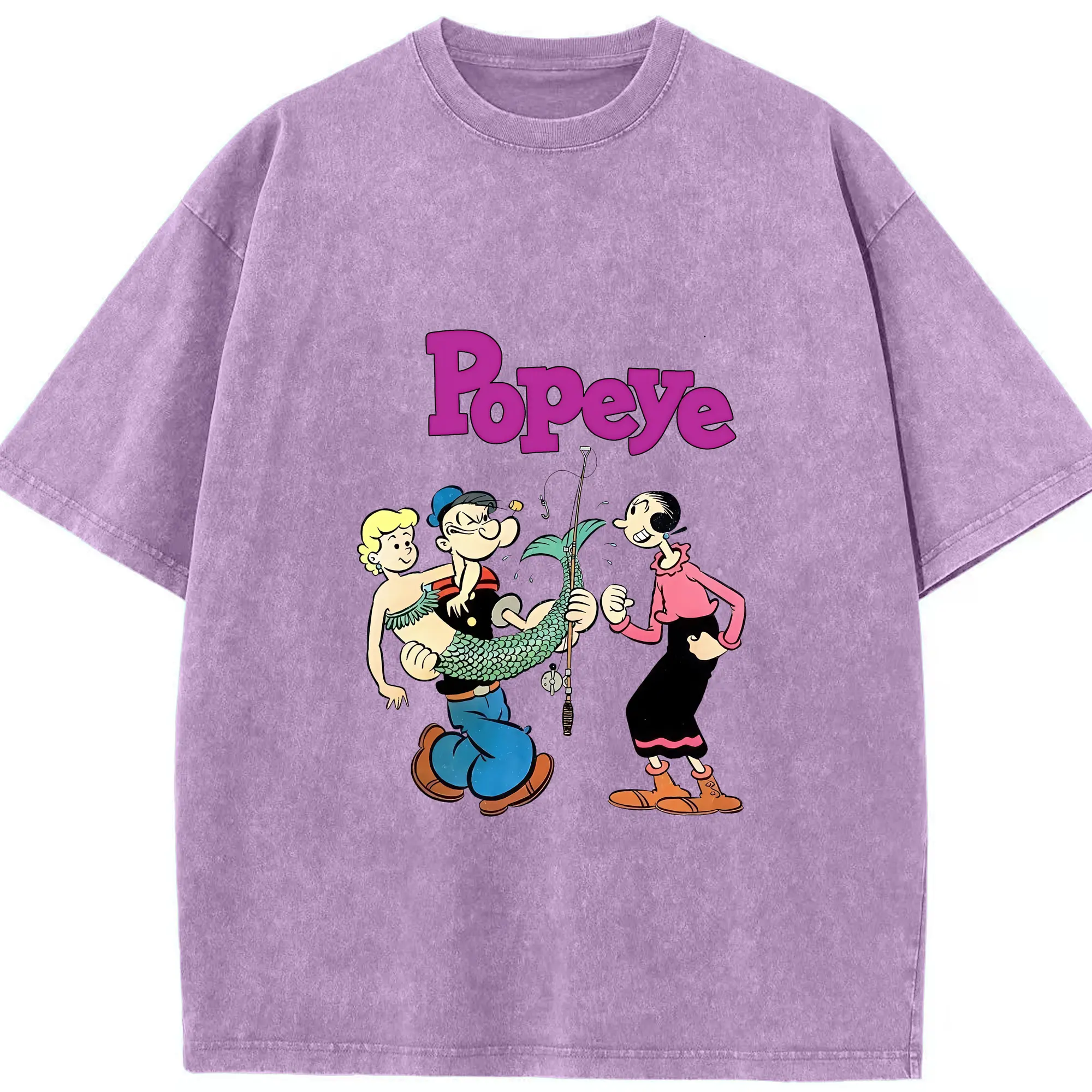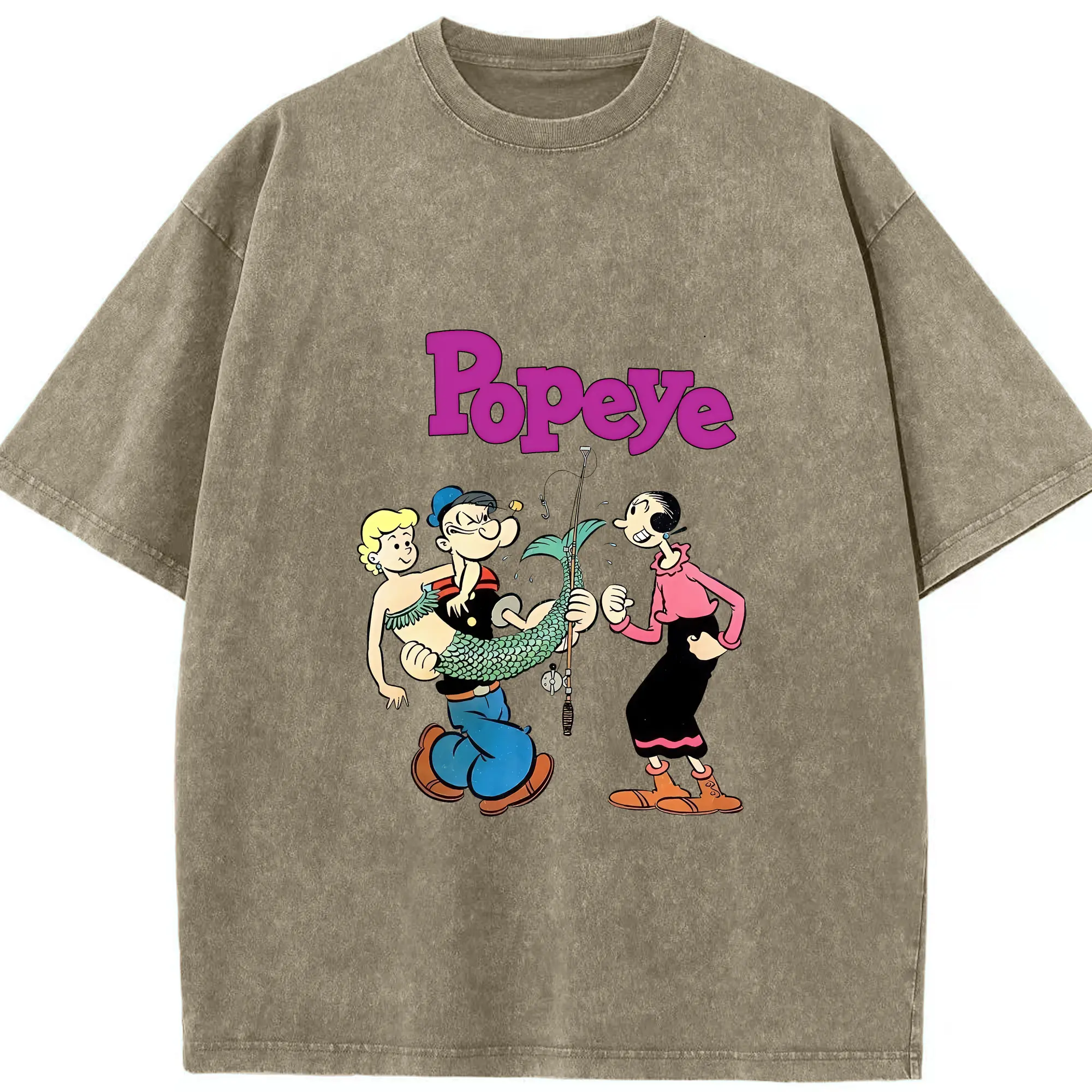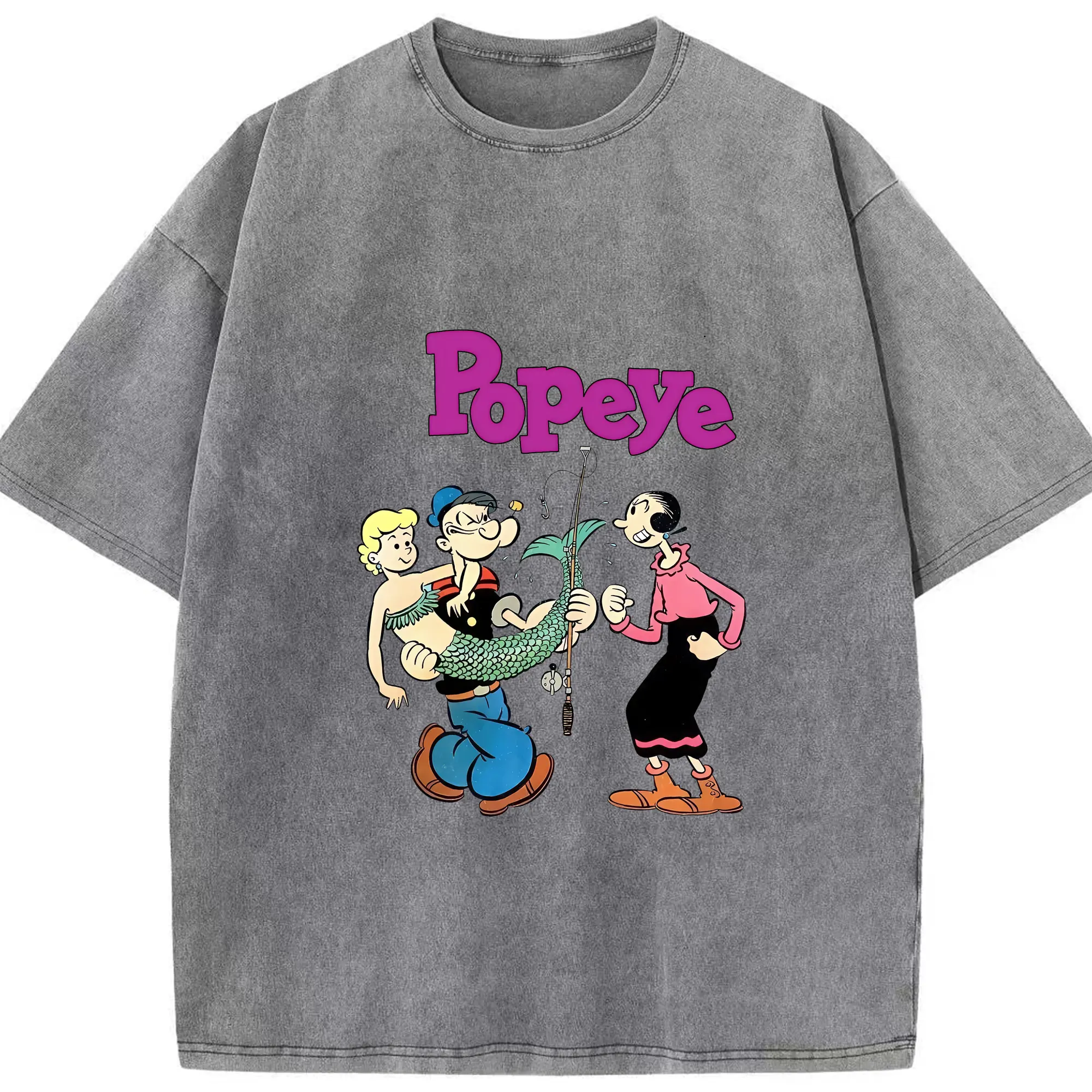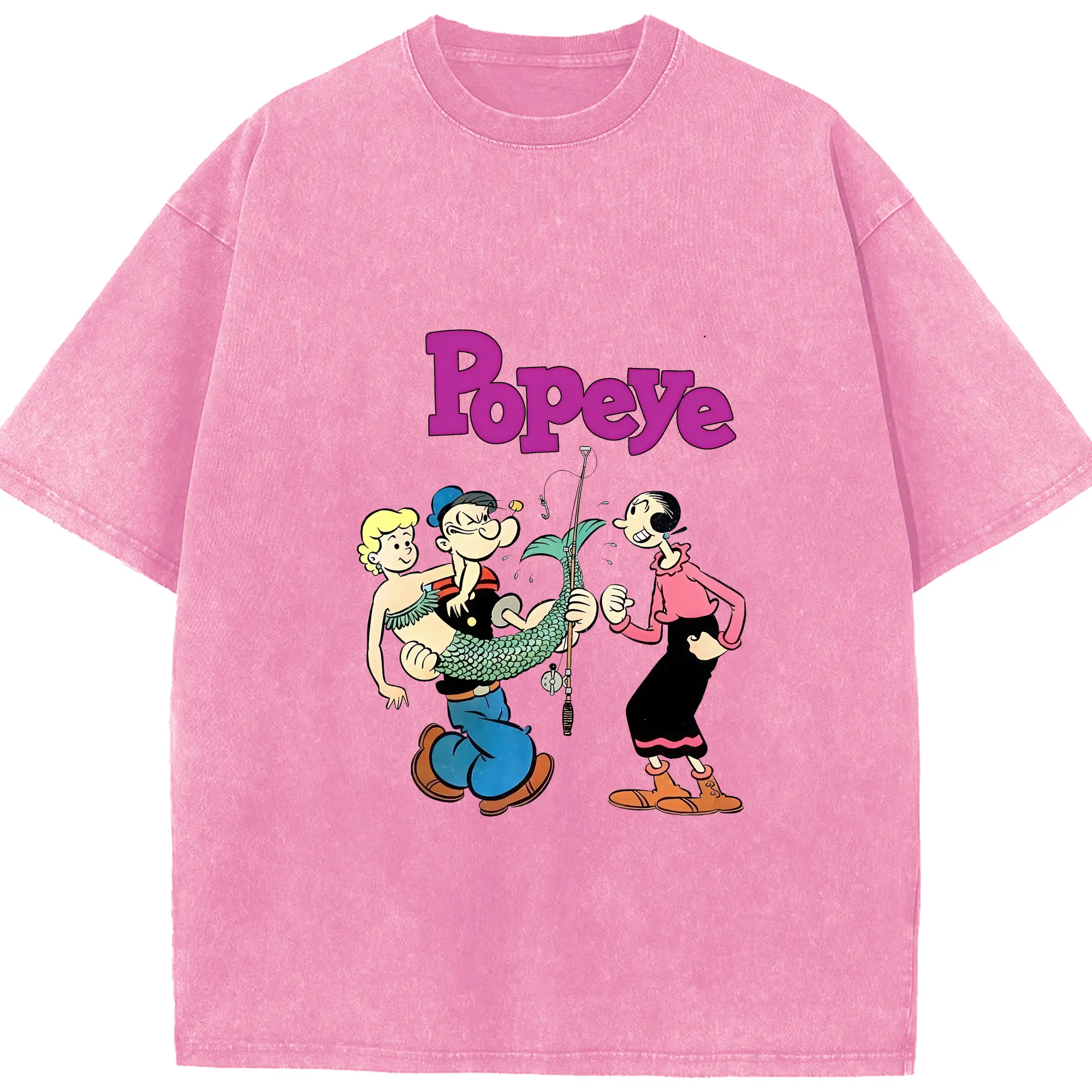 ポパイ グッズ オリーブ・オイル - 綿100% ヴィンテージ風 半袖Tシャツ ・ 背面プリント ・ 柔らか肌触り ・ 通気性 快適 ・ スポーツ カジュアル 外出用