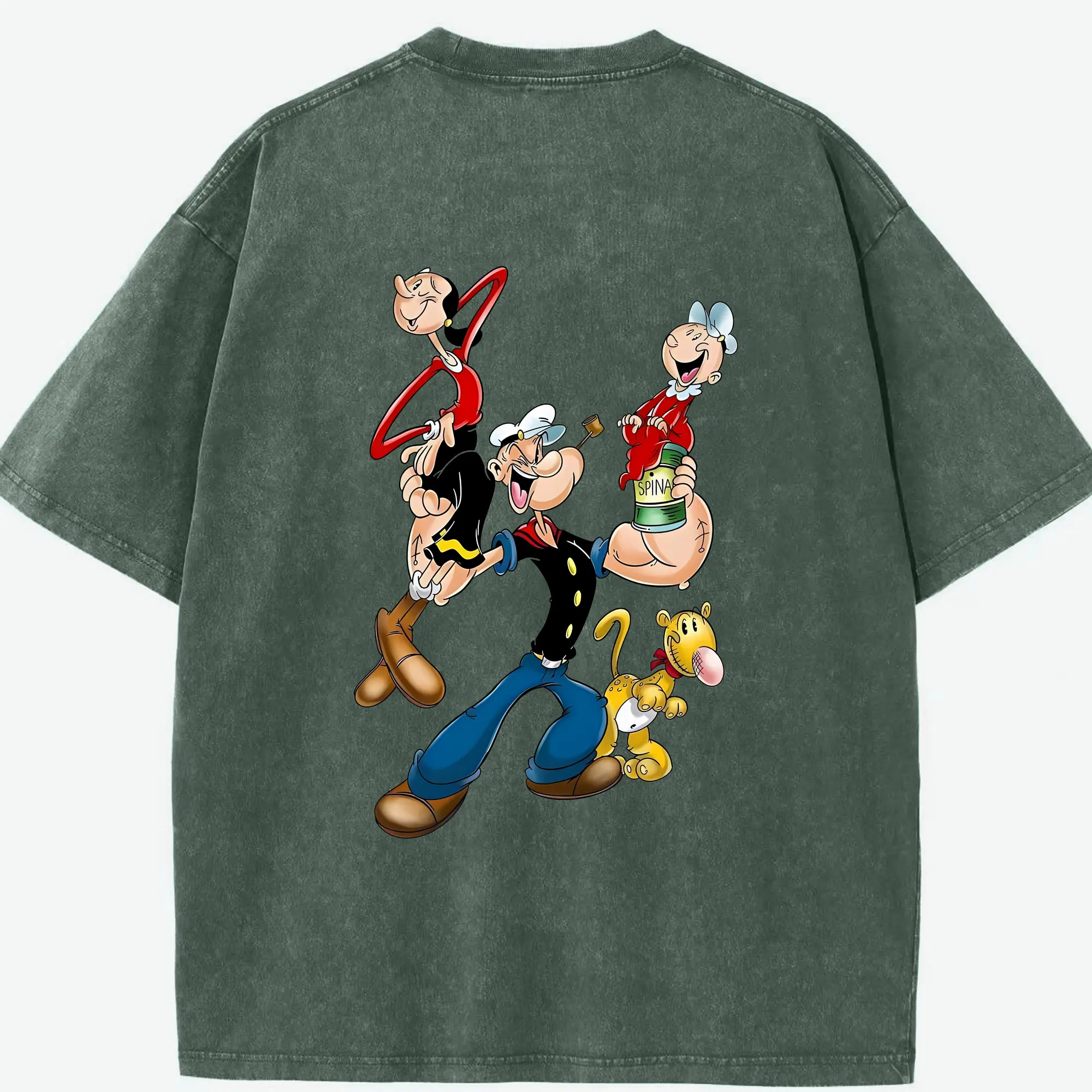 ポパイ グッズ オリーブ・オイル - 綿100% ヴィンテージ風 半袖Tシャツ ・ フロントプリント ・ 柔らか肌触り ・ 通気性 快適 ・ スポーツ カジュアル 外出用