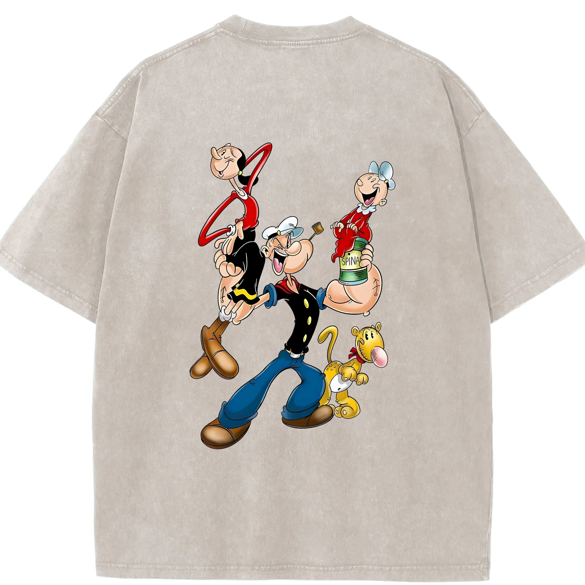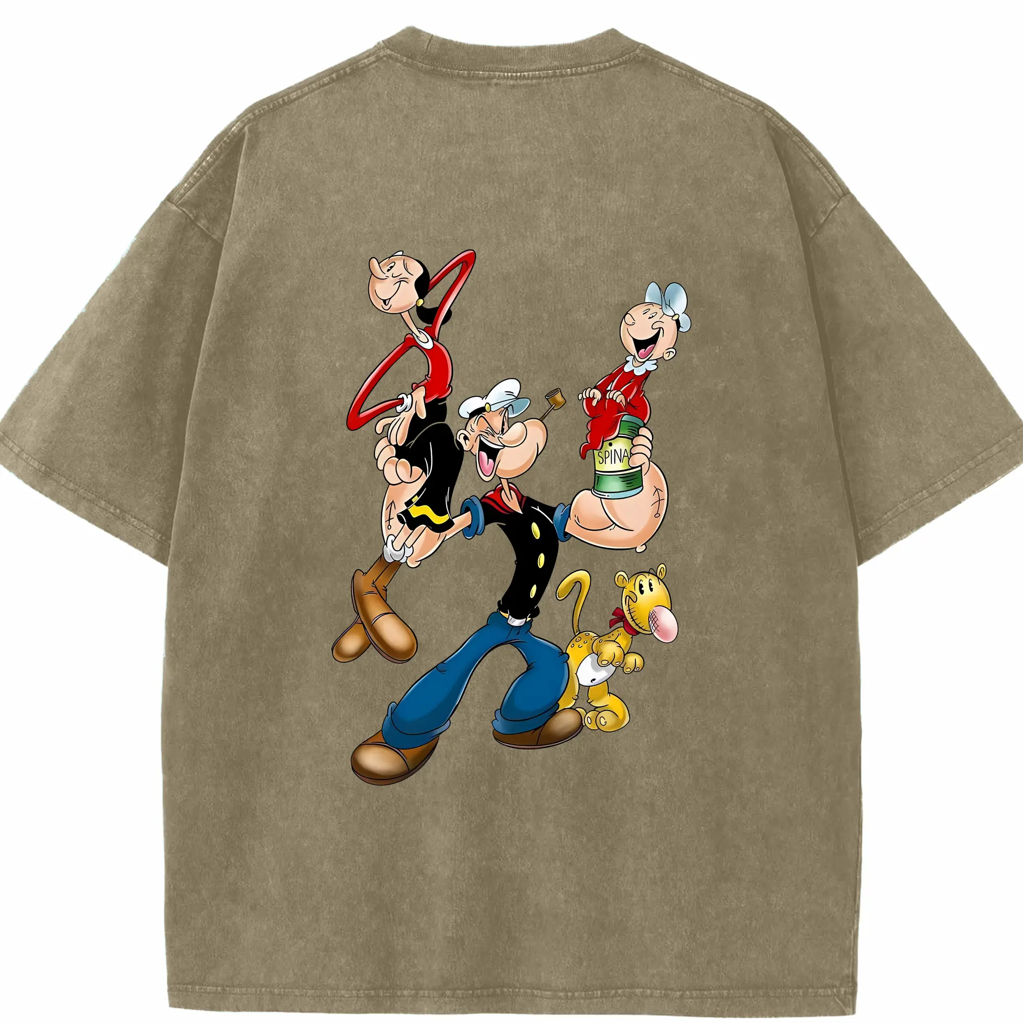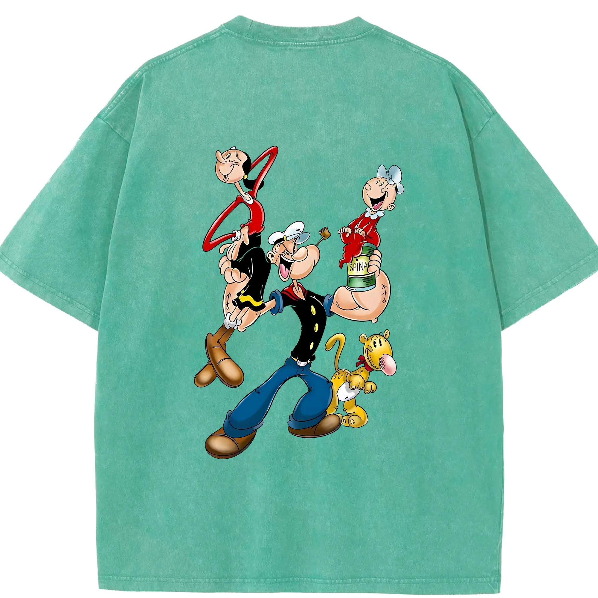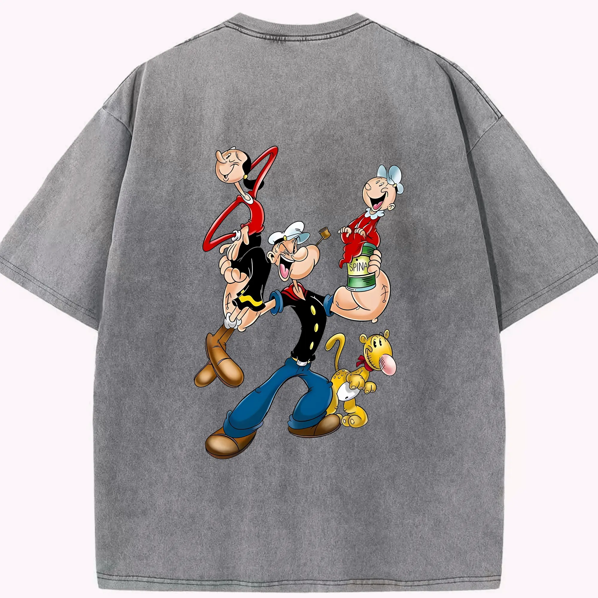 ポパイ グッズ オリーブ・オイル - 綿100% 半袖Tシャツ ・ バックプリント ・ 快適 通気性 ・ 日常使い 散歩 スポーツ用