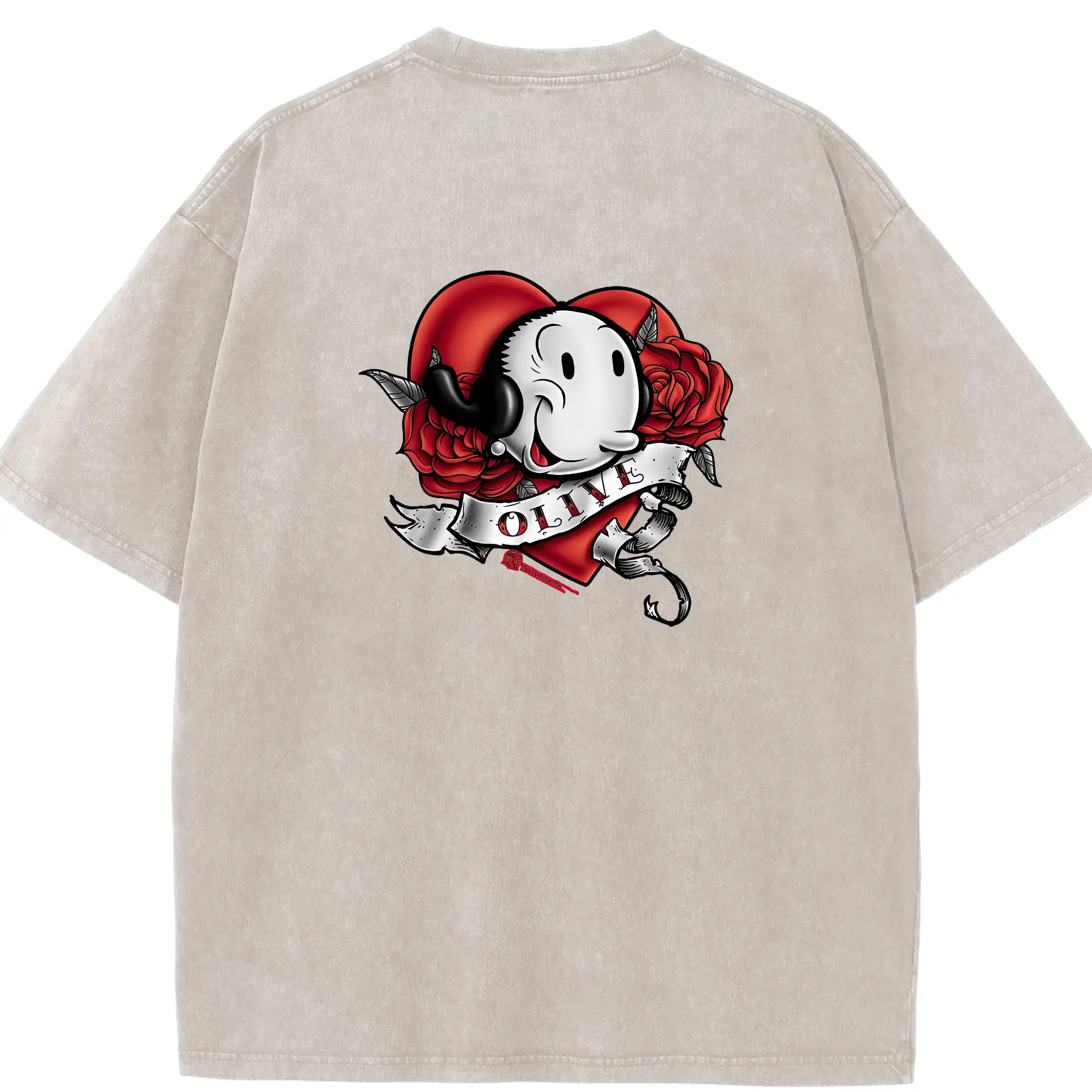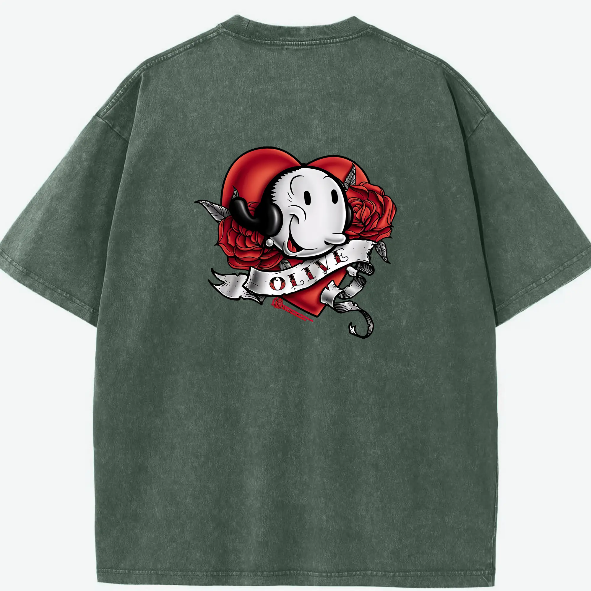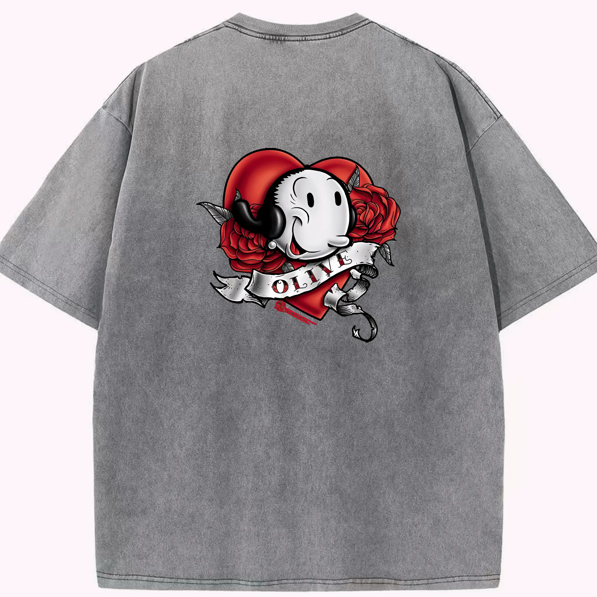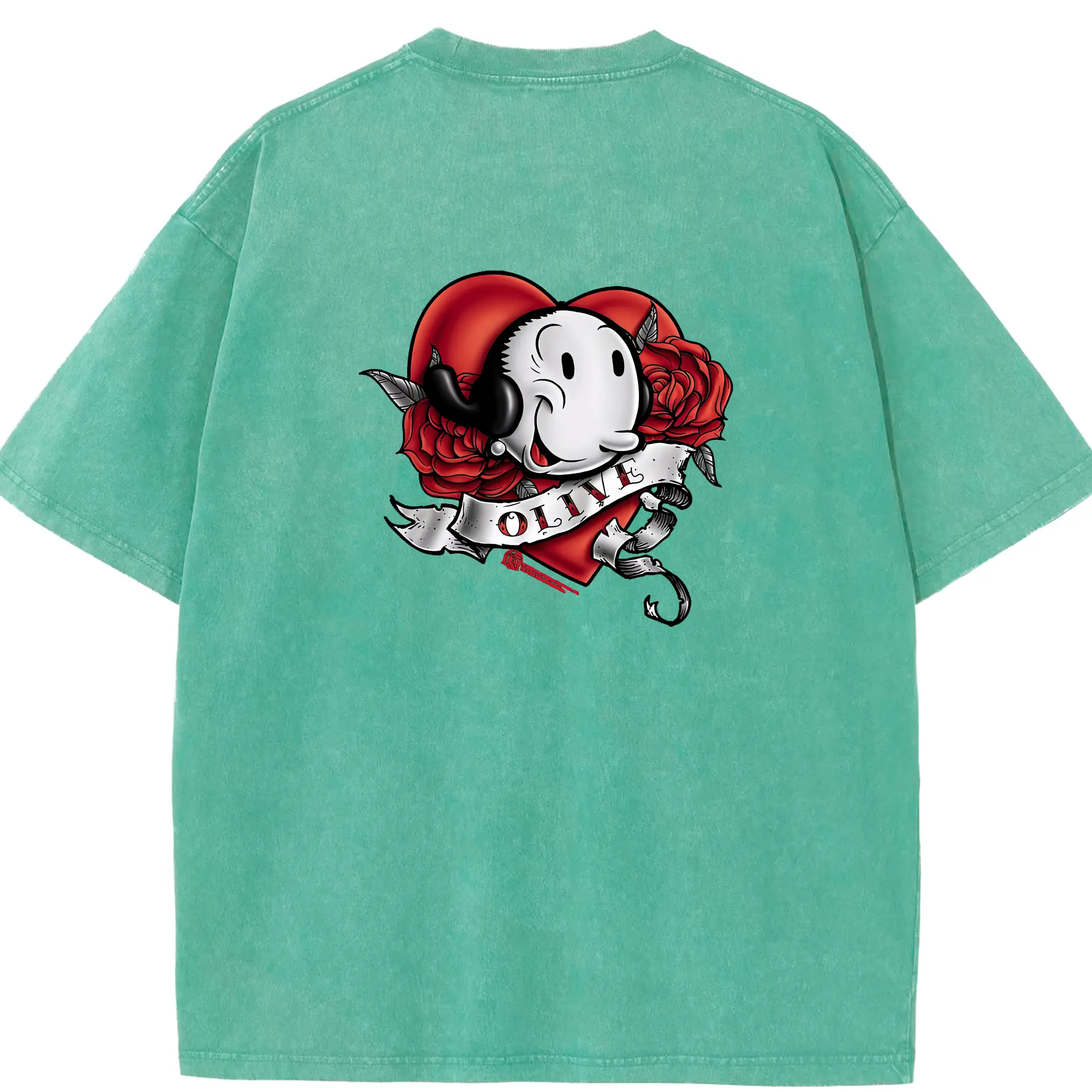 ポパイ グッズ オリーブ・オイル - 綿100% ヴィンテージ風 半袖Tシャツ ・ フロントプリント ・ 柔らか肌触り ・ 通気性 快適 ・ スポーツ カジュアル 外出用
