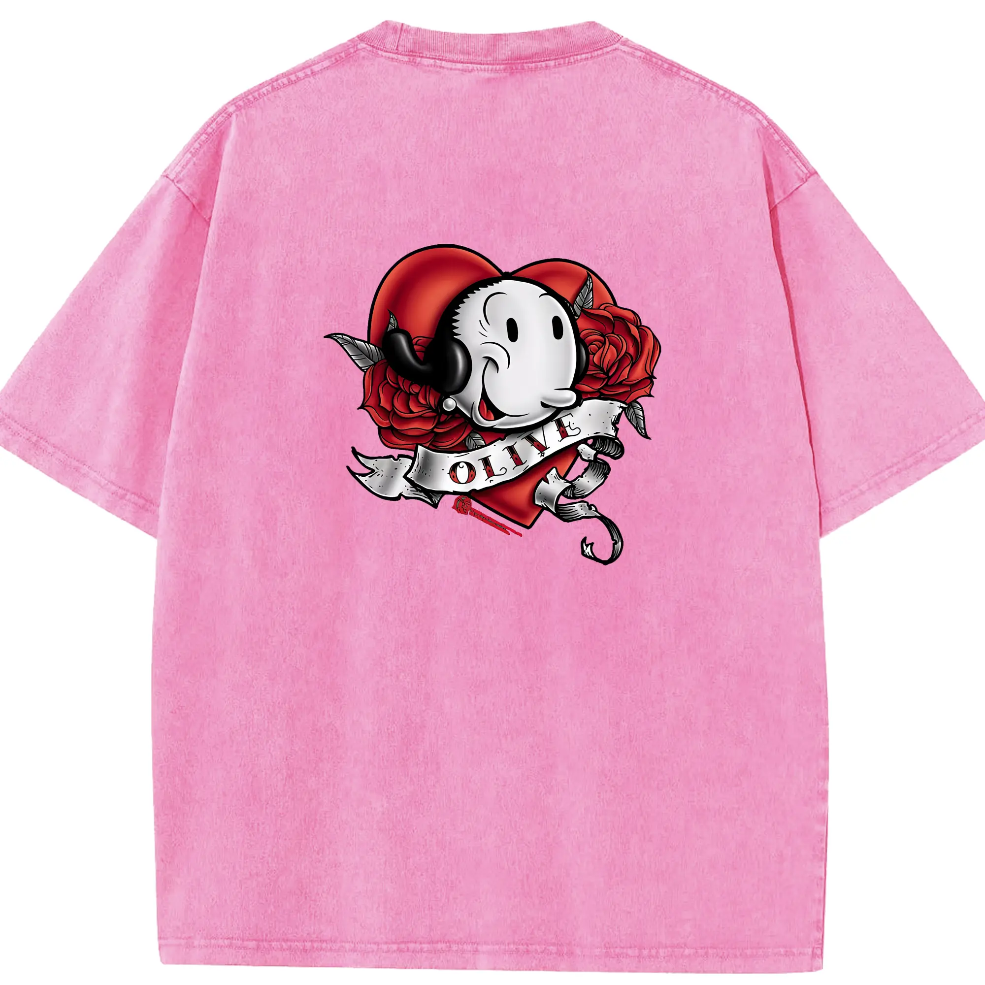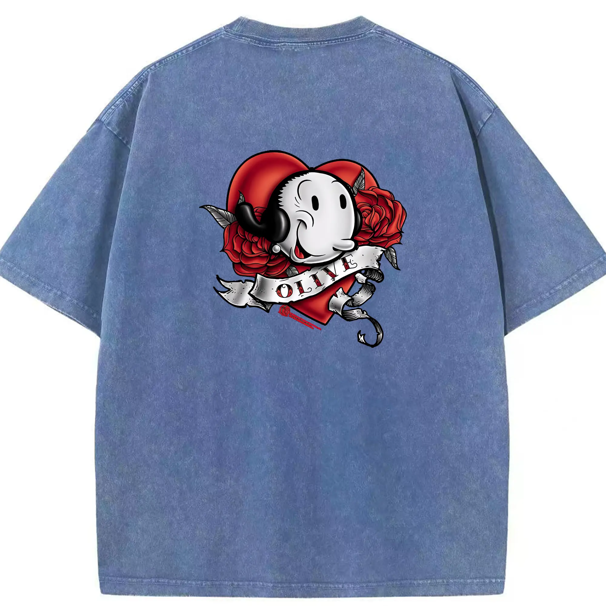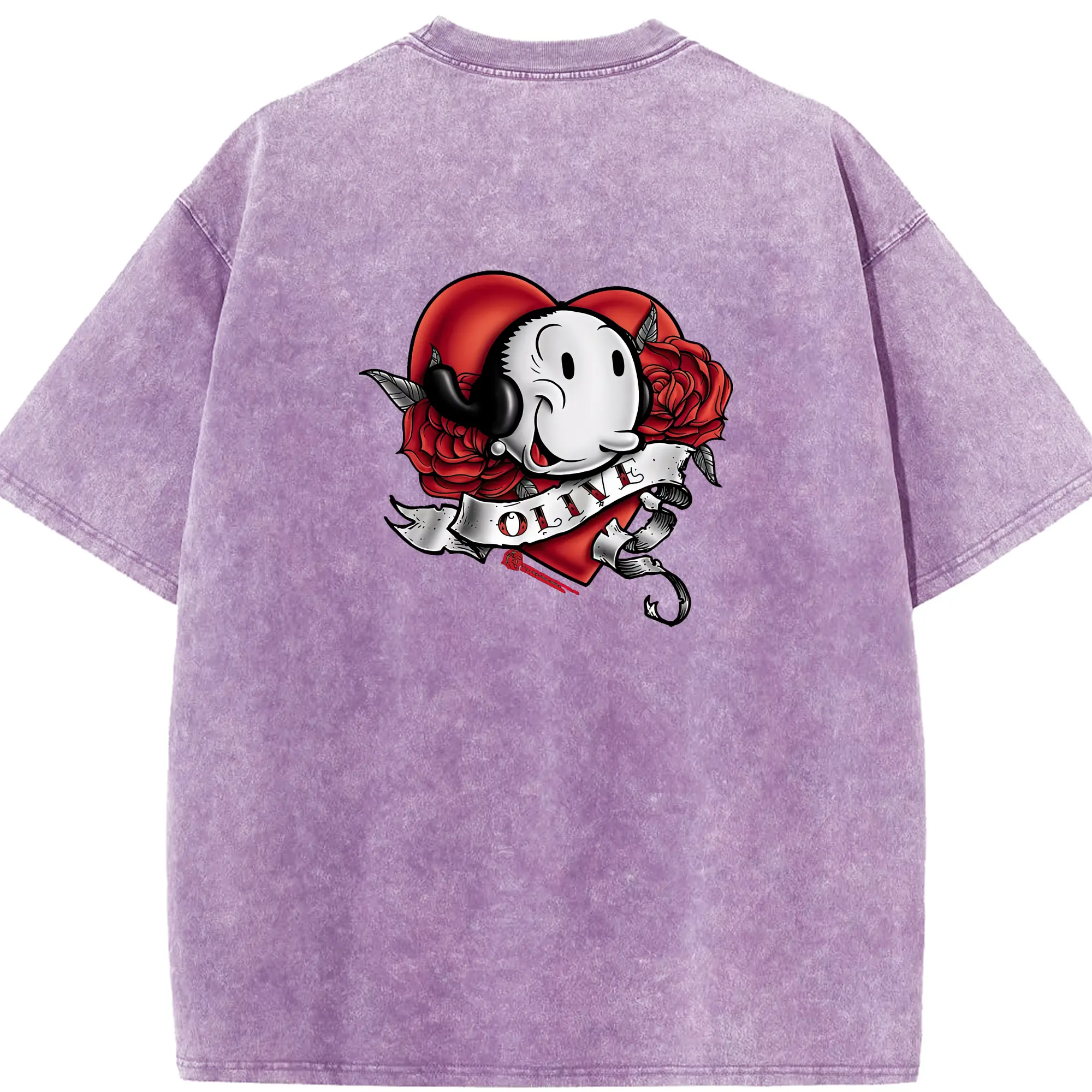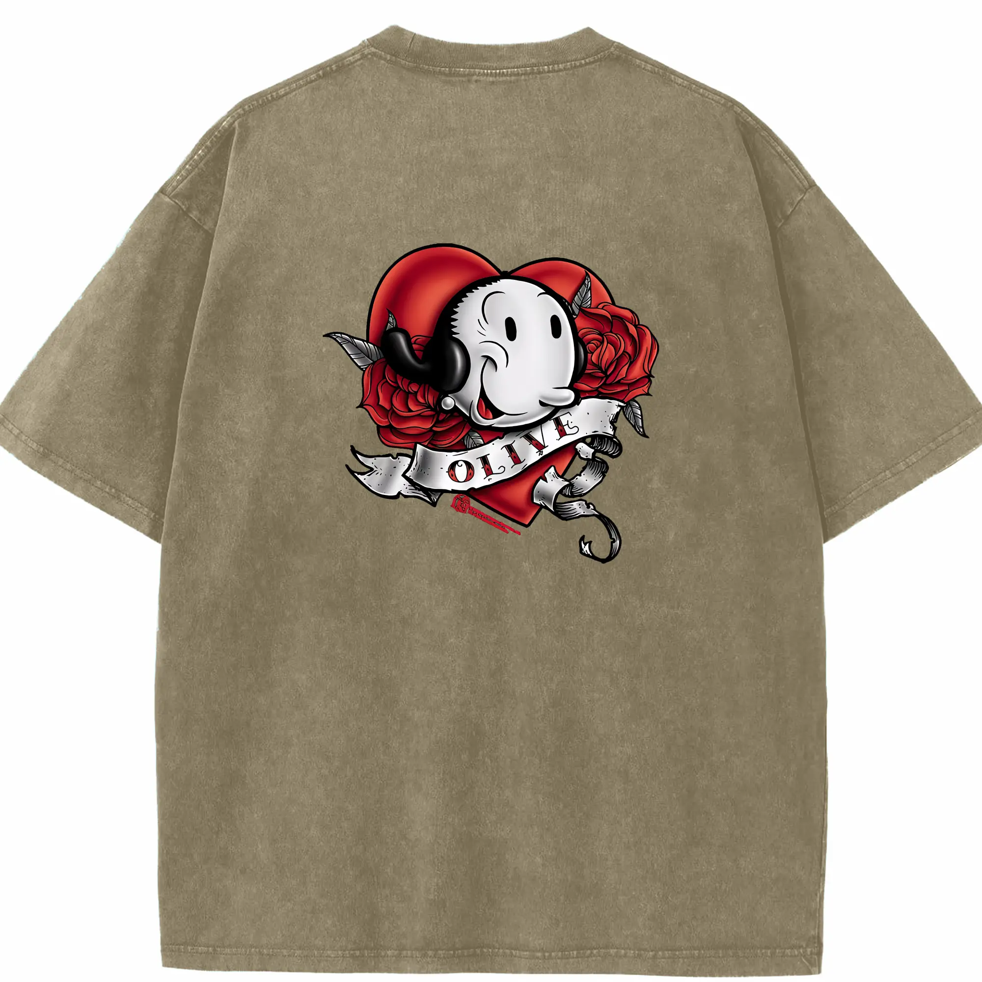 ポパイ グッズ オリーブ・オイル - 綿100% ヴィンテージ風 半袖Tシャツ ・ フロントプリント ・ 柔らか肌触り ・ 通気性 快適 ・ スポーツ カジュアル 外出用
