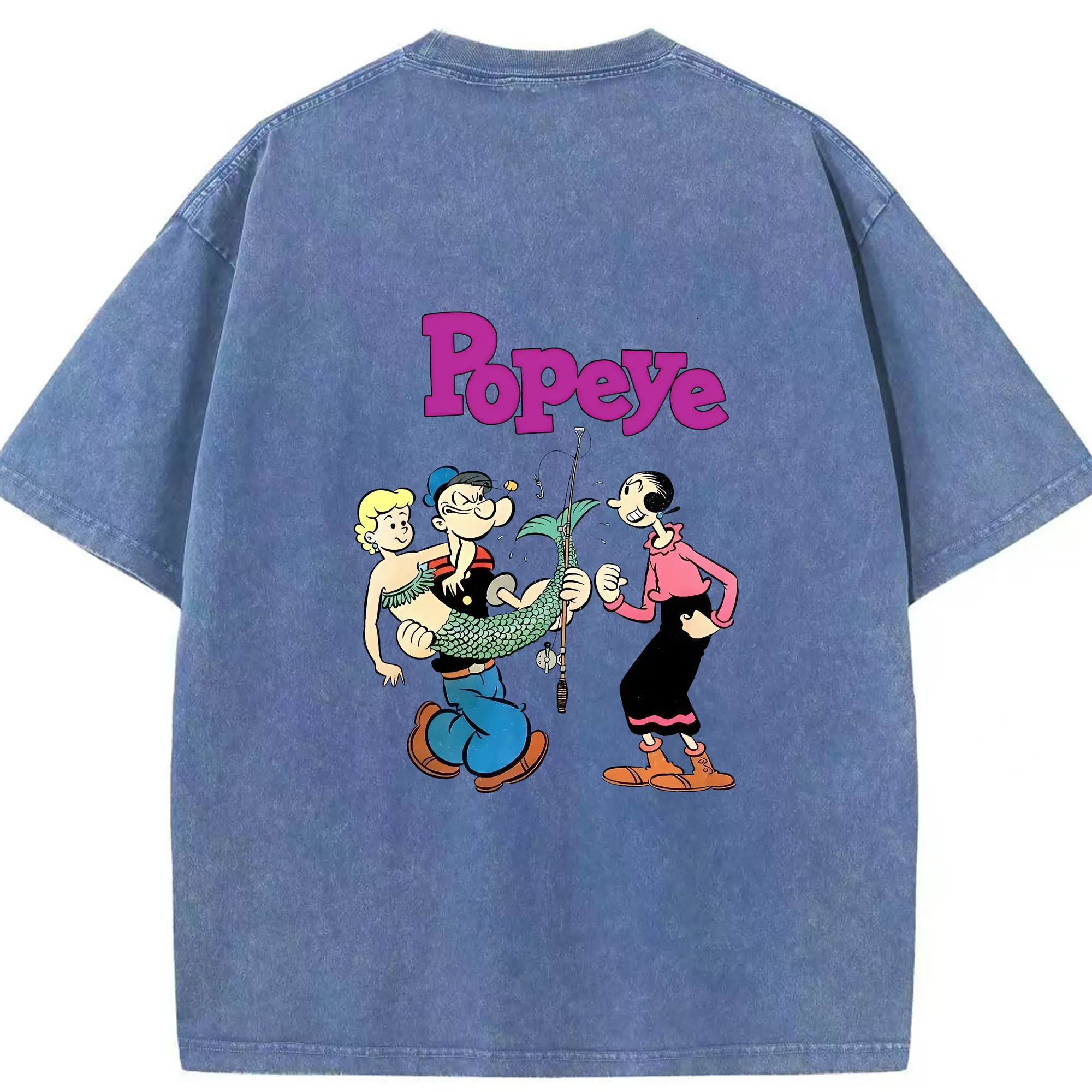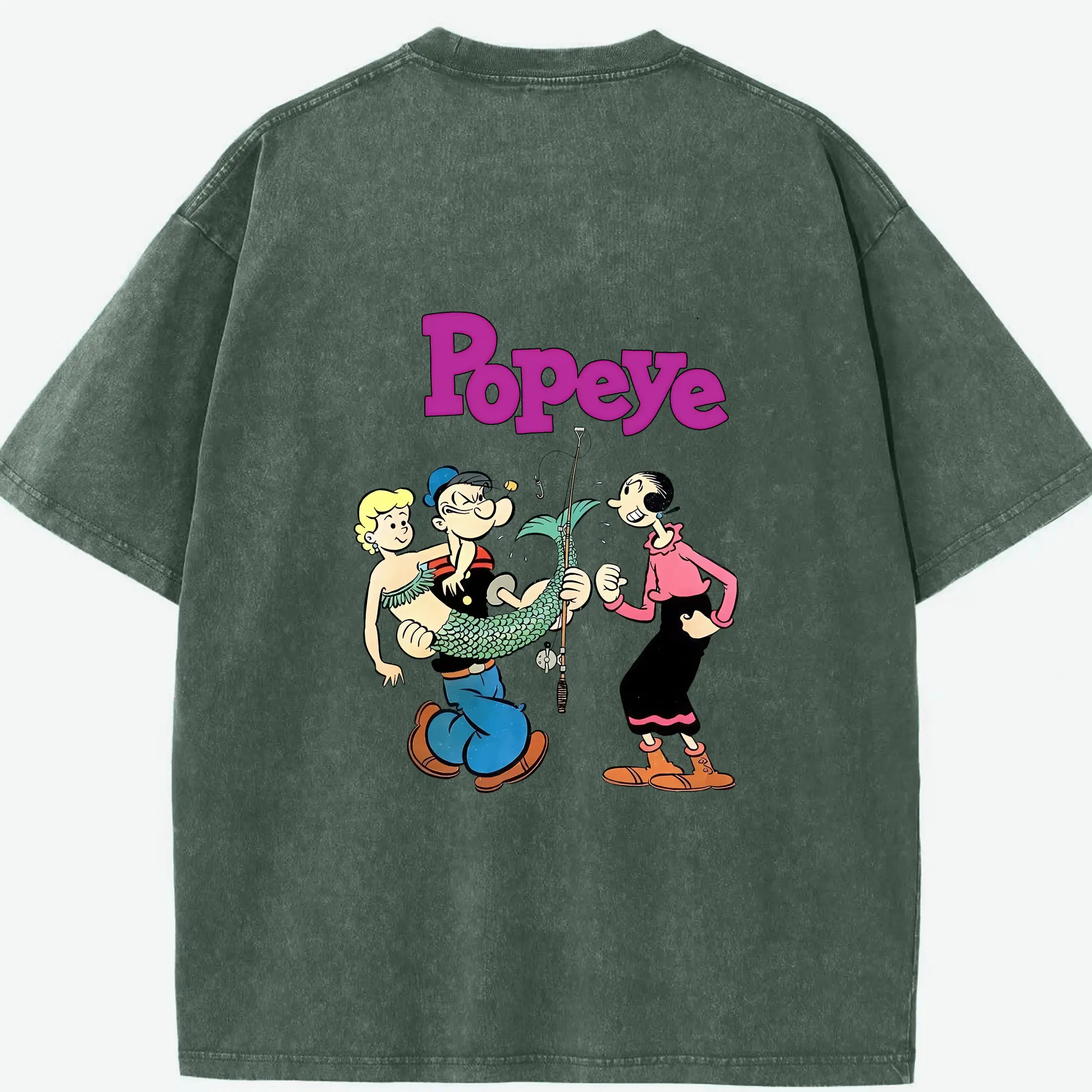 ポパイ グッズ オリーブ・オイル - 綿100% ヴィンテージ風 半袖Tシャツ ・ フロントプリント ・ 柔らか肌触り ・ 通気性 快適 ・ スポーツ カジュアル 外出用