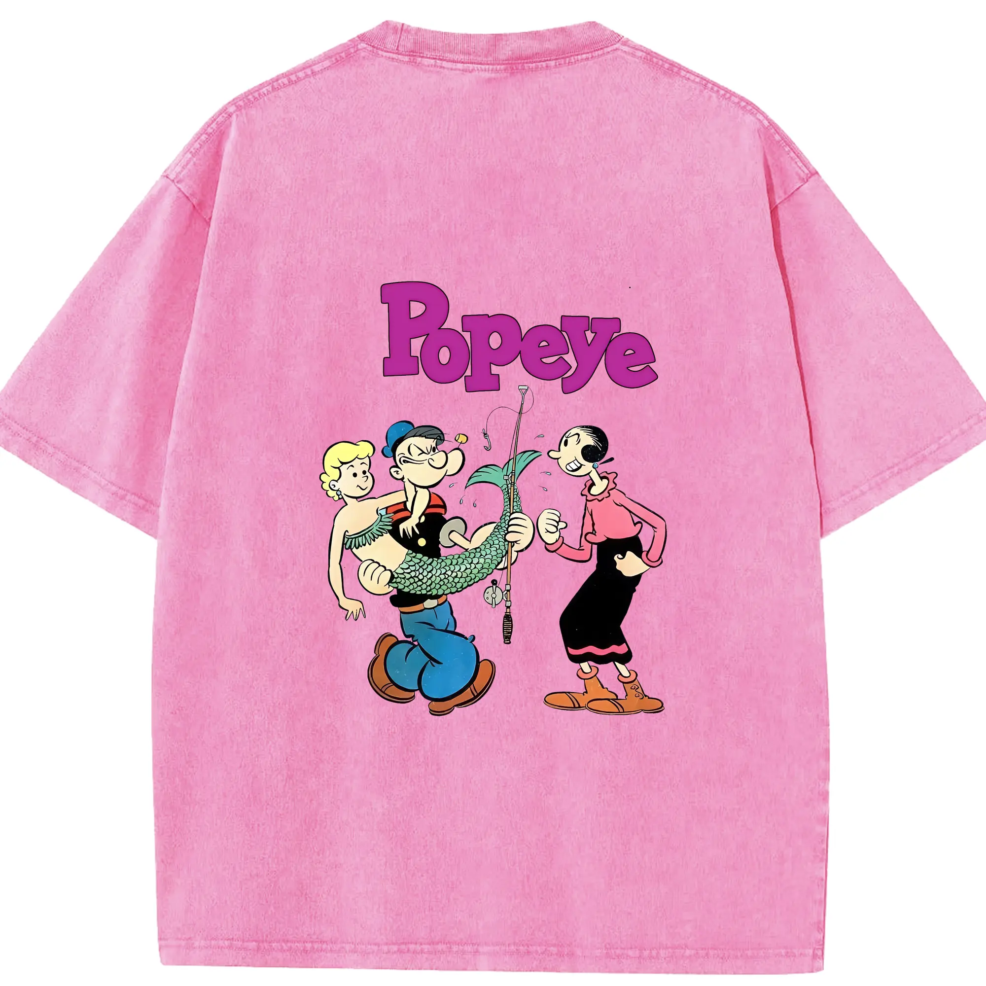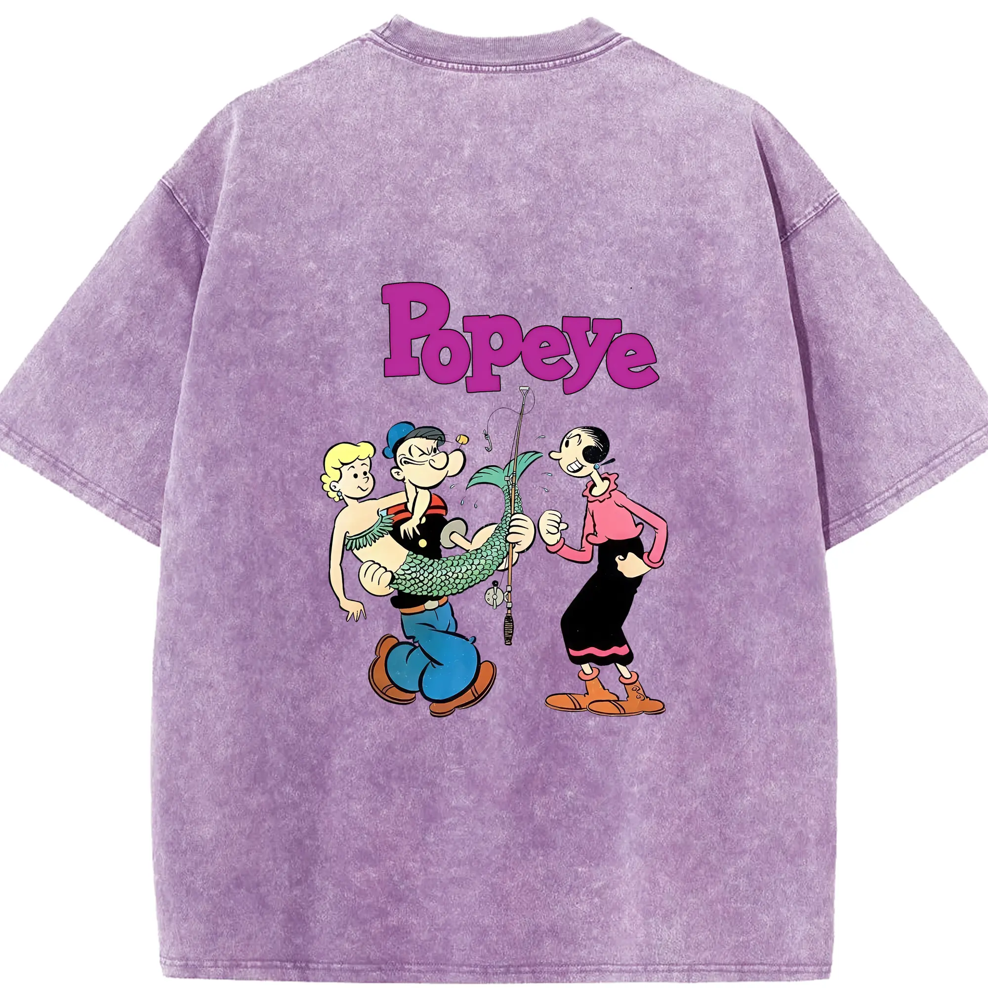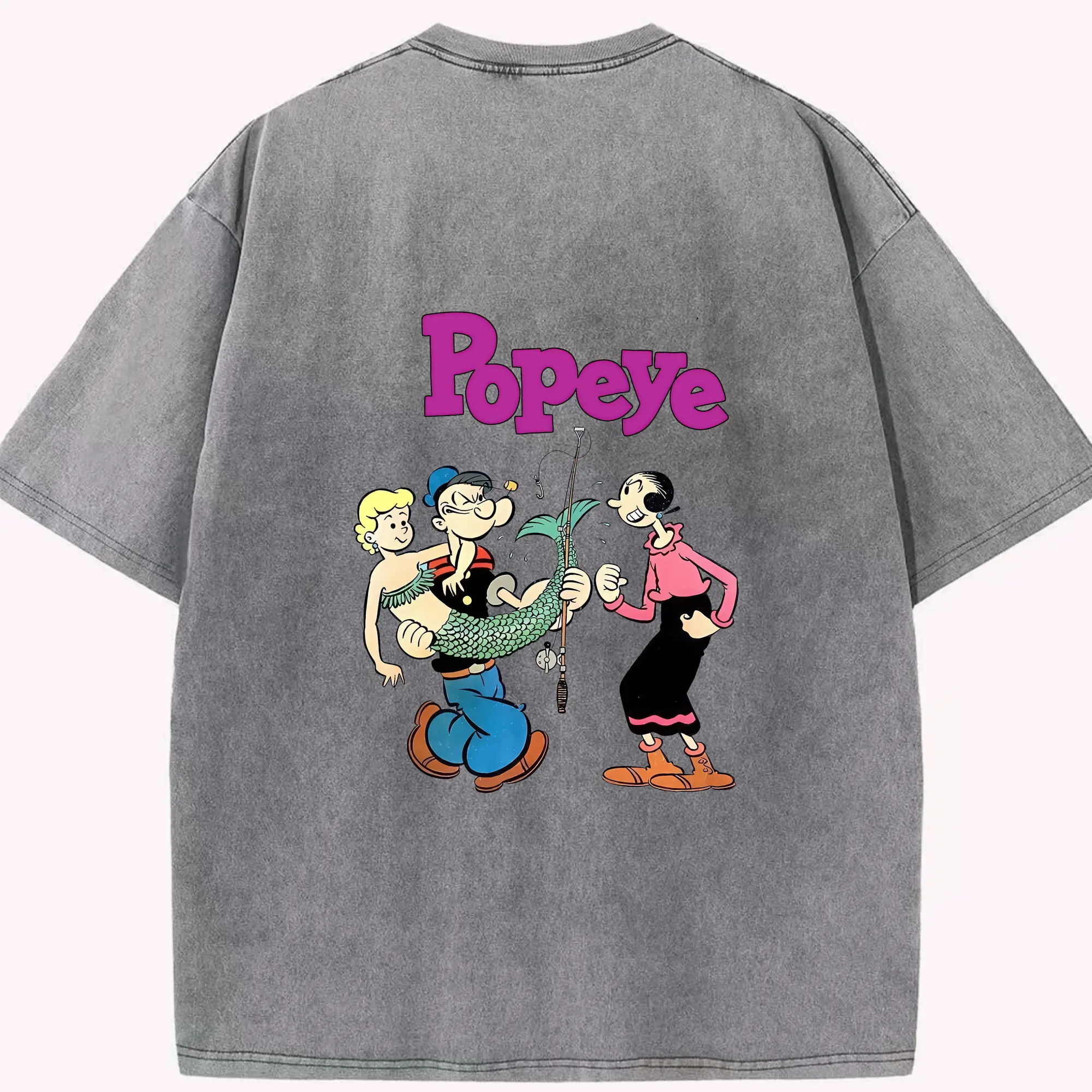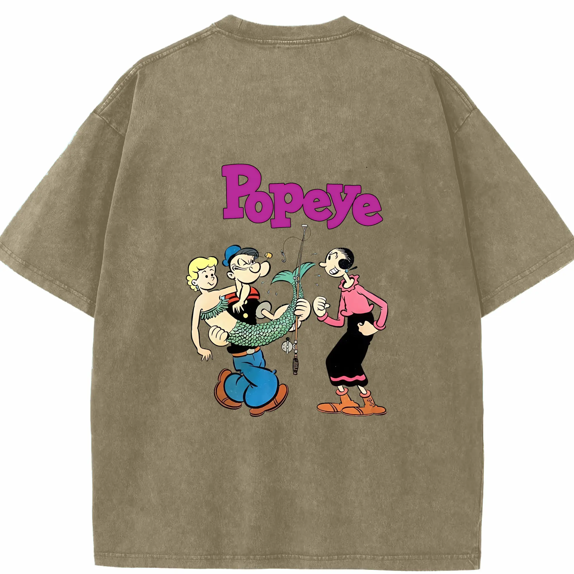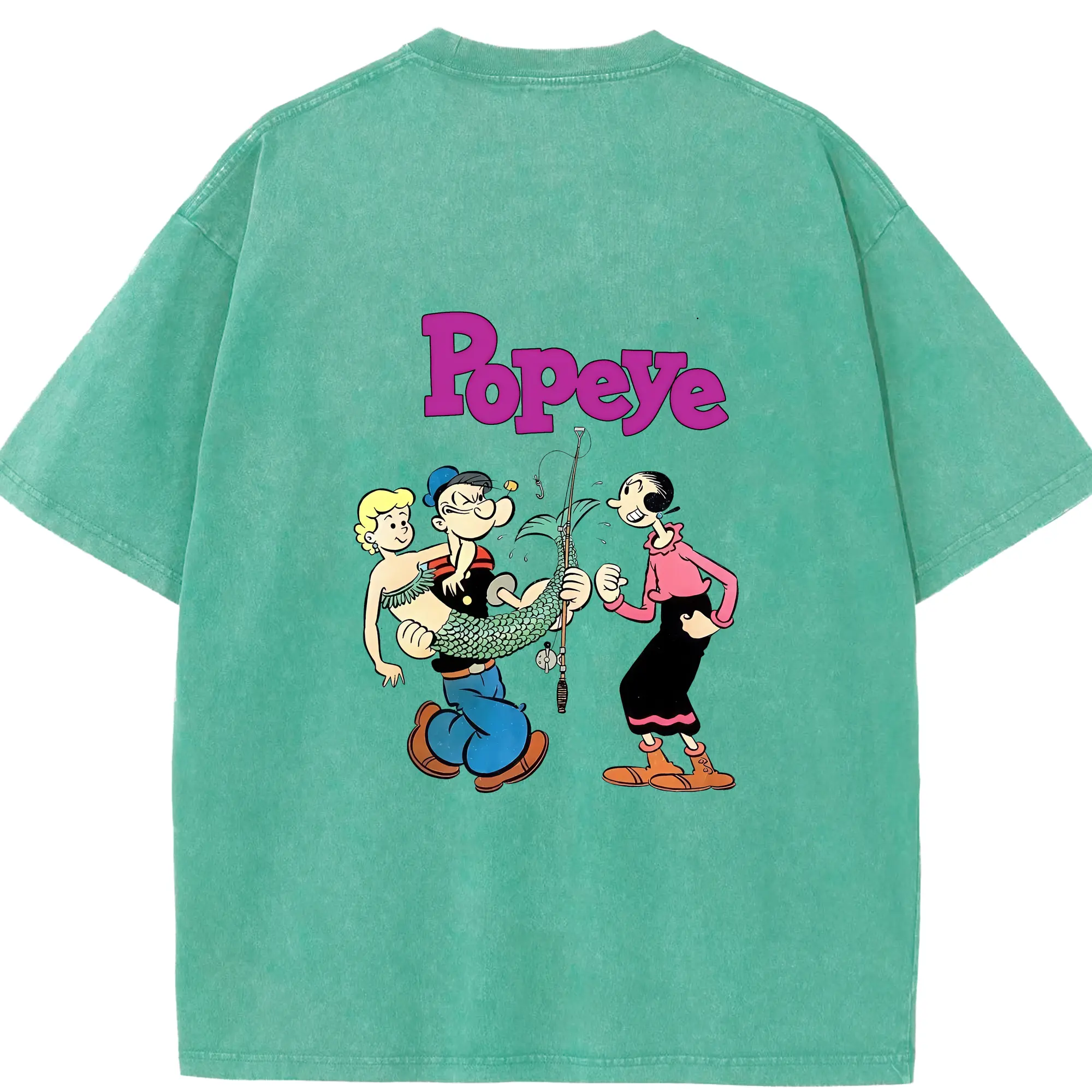 ポパイ グッズ オリーブ・オイル - 綿100% 半袖Tシャツ ・ バックプリント ・ 快適 通気性 ・ 日常使い 散歩 スポーツ用