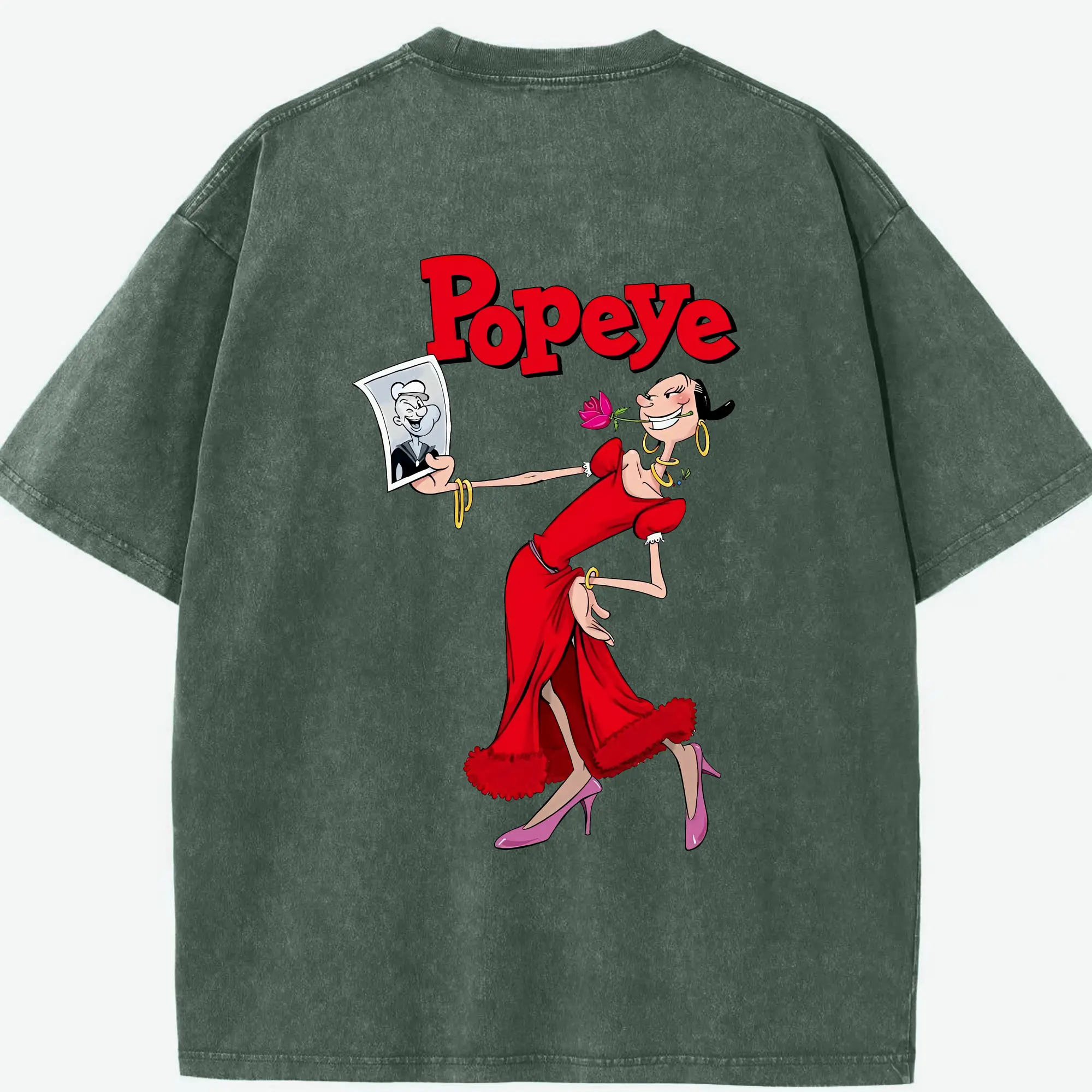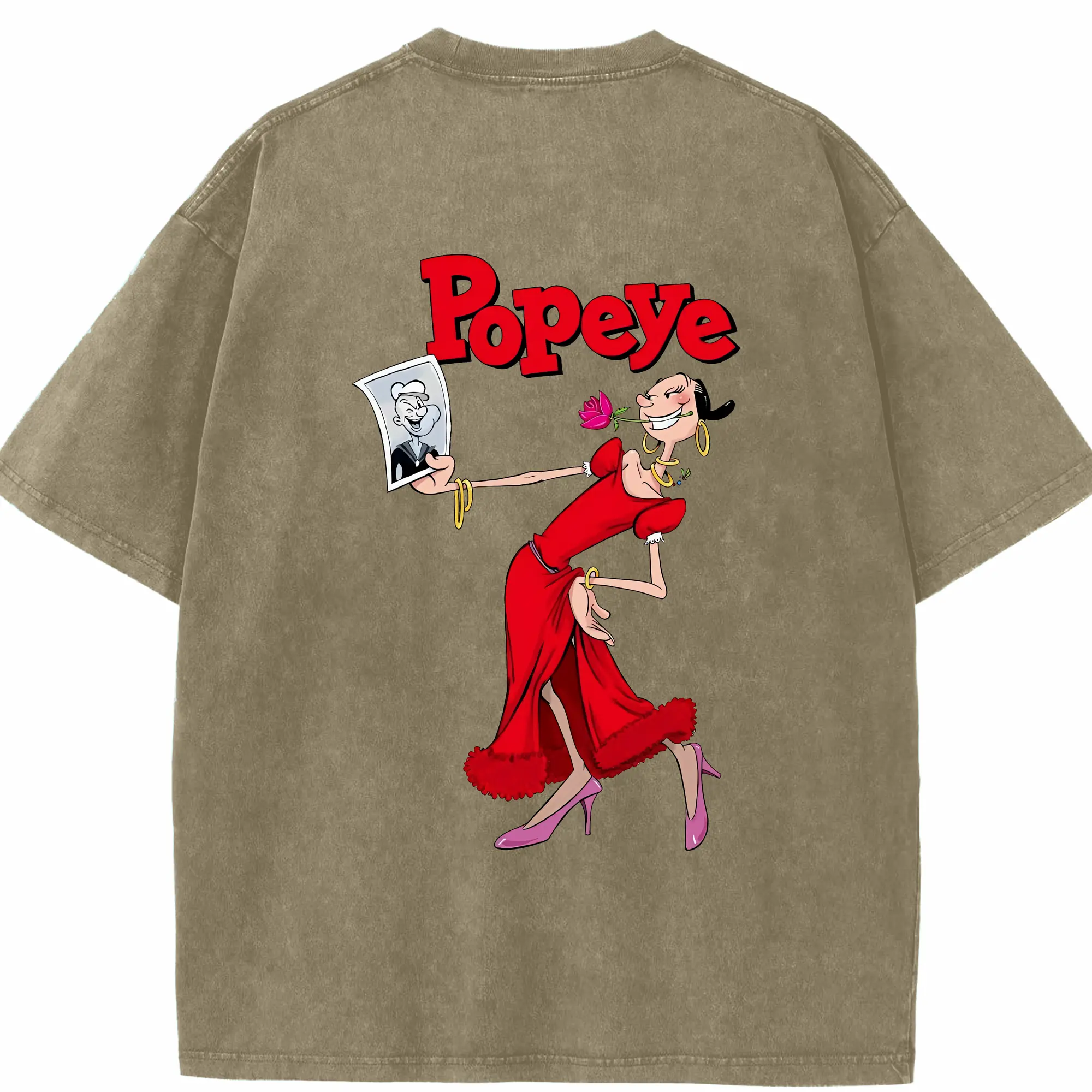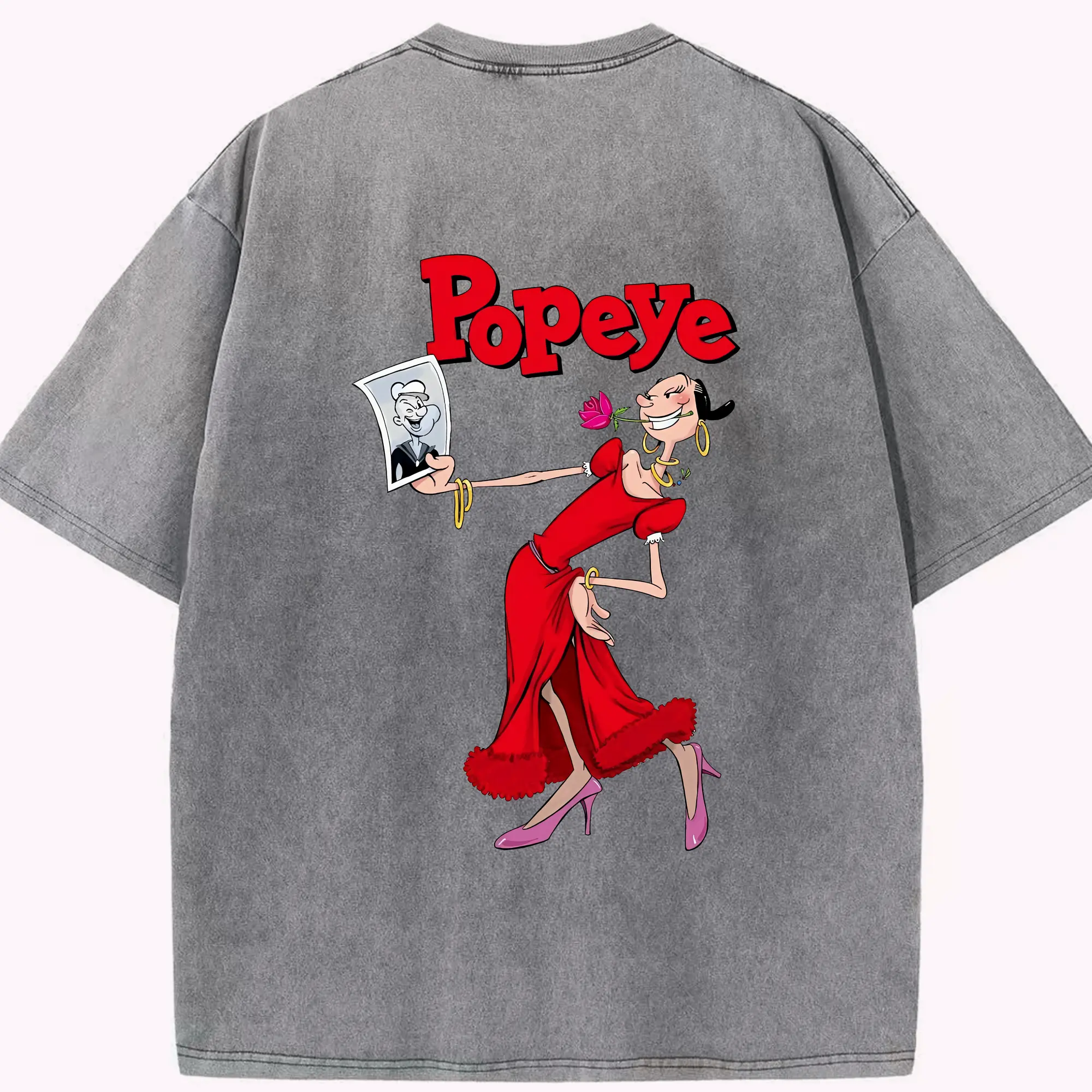ポパイ グッズ オリーブ・オイル - 綿100% ヴィンテージ風 半袖Tシャツ ・ フロントプリント ・ 柔らか肌触り ・ 通気性 快適 ・ スポーツ カジュアル 外出用