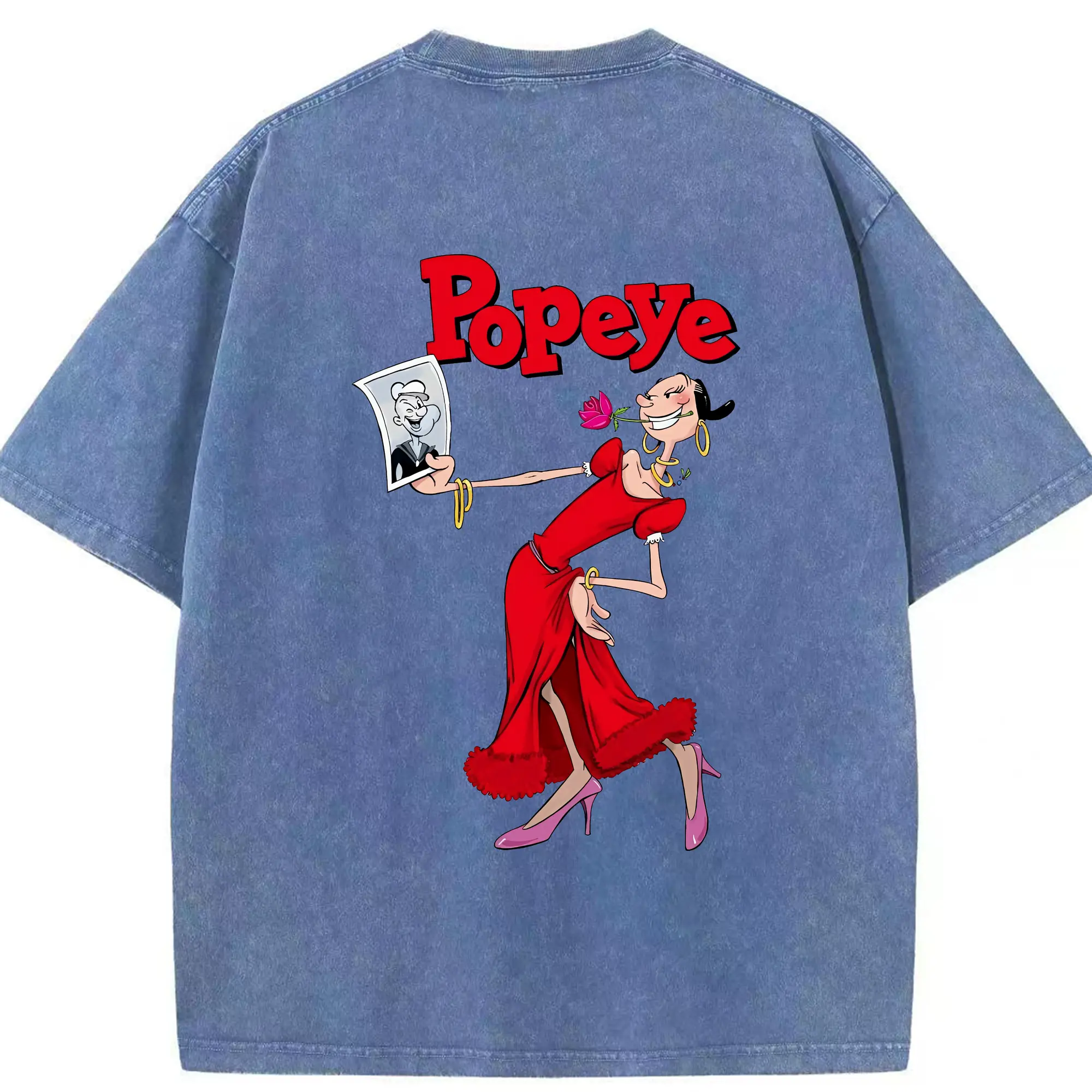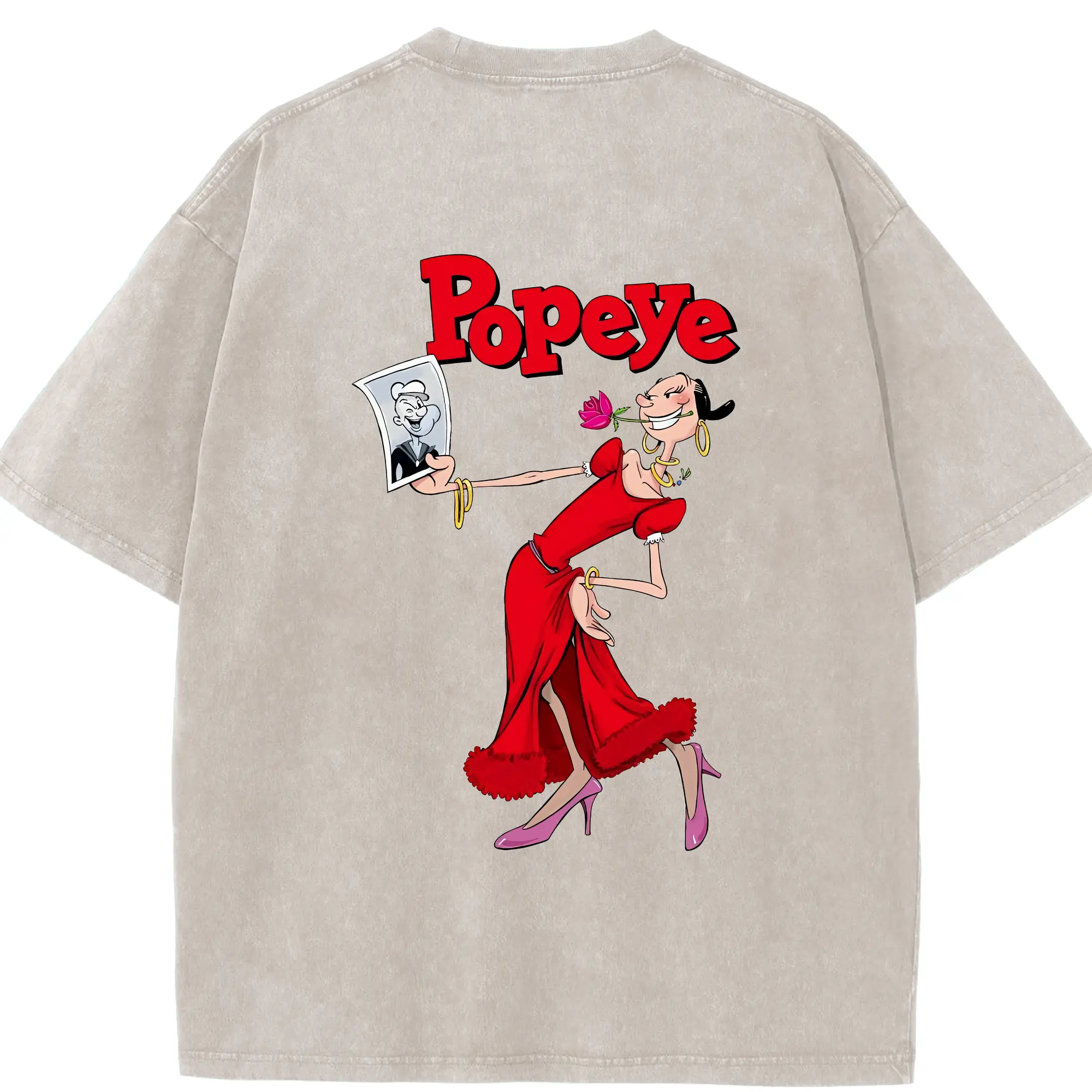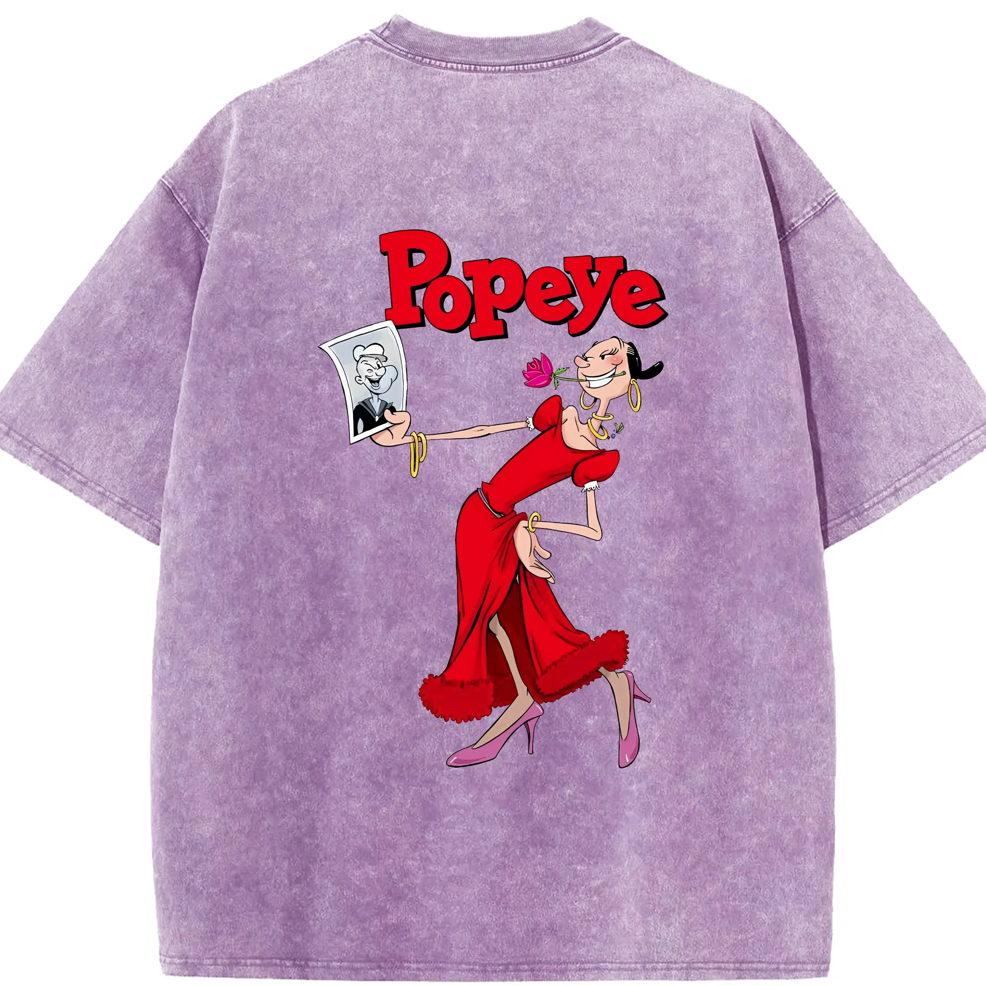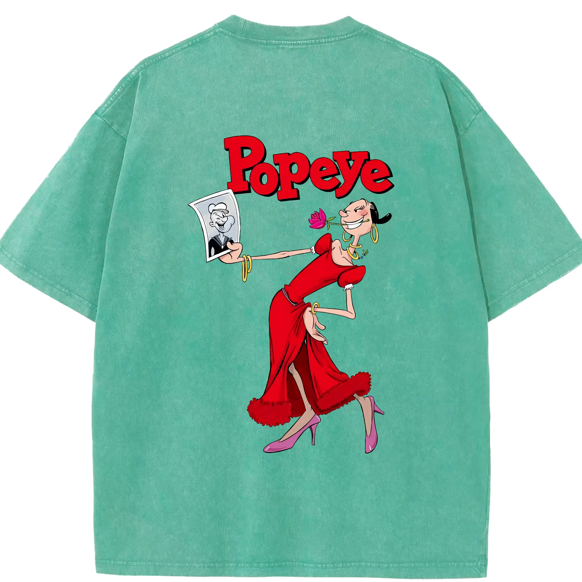 ポパイ グッズ オリーブ・オイル - 綿100% 半袖Tシャツ ・ バックプリント ・ 快適 通気性 ・ 日常使い 散歩 スポーツ用