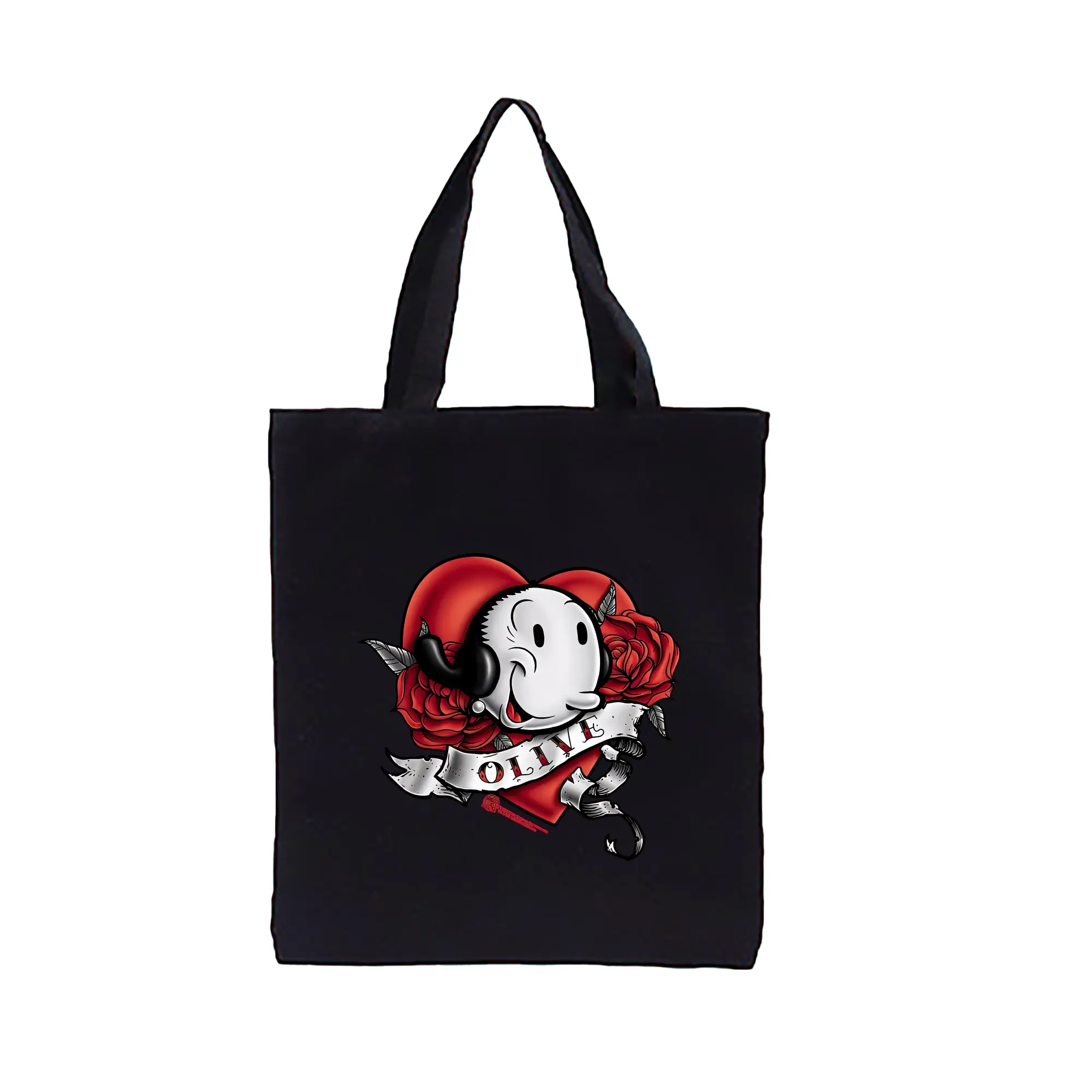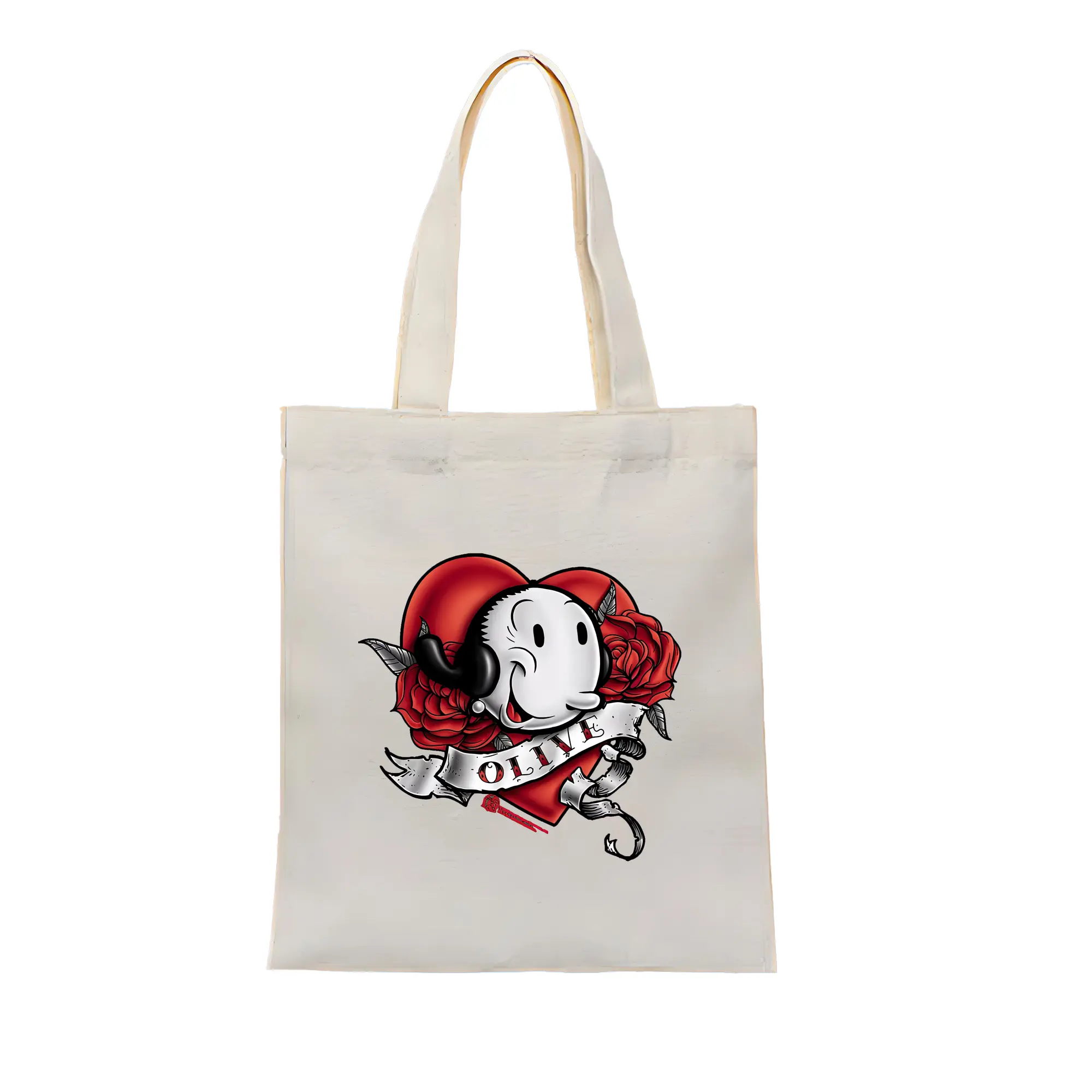 ポパイ グッズ オリーブ・オイル - 縦型キャンバス手提げバッグ(トートバッグ) ・ キャンバス素材 ・ ショッピング用 ・ 軽量 丈夫 お手入れ簡単