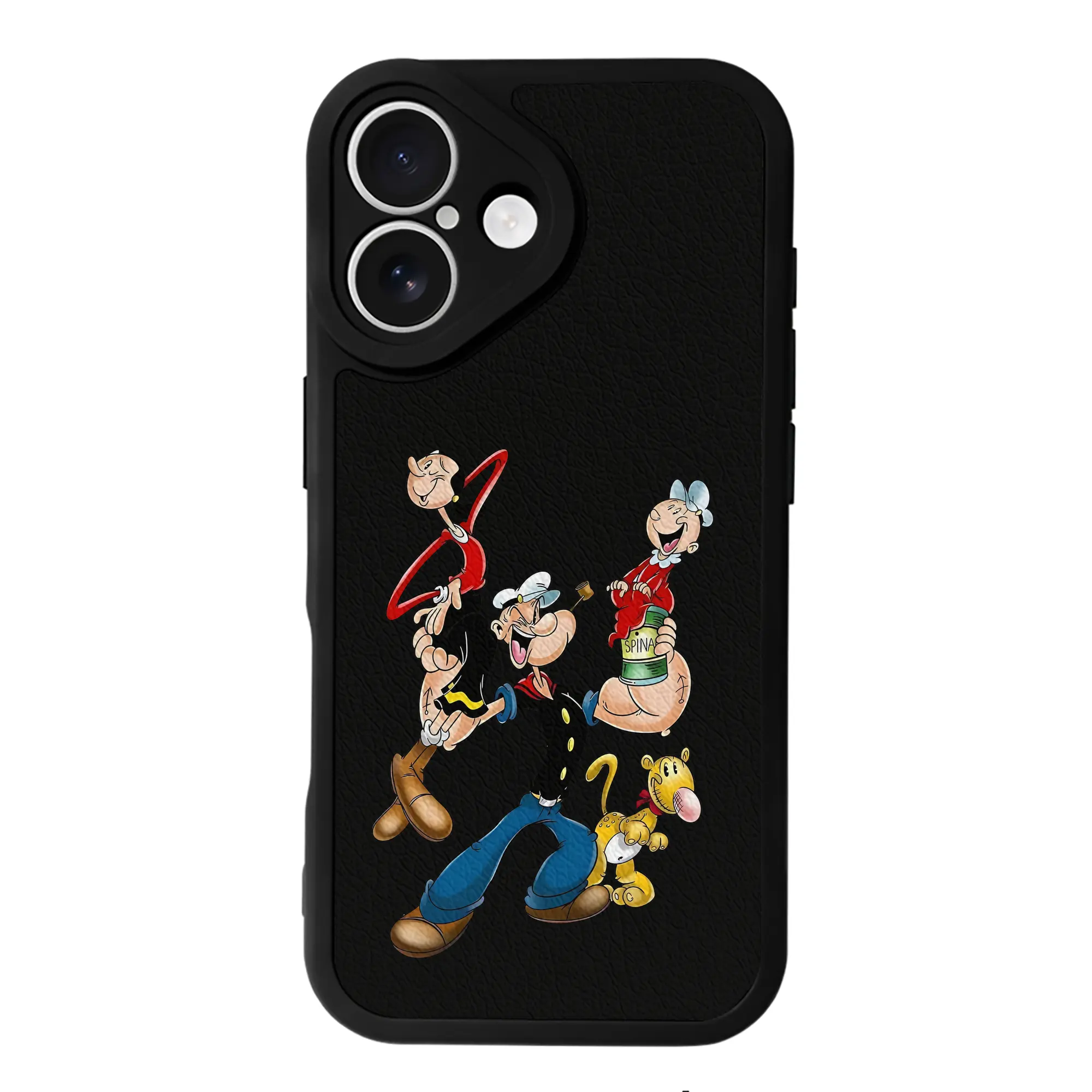 ポパイ グッズ オリーブ・オイル - IPhone 16シリーズ対応 ・ シリコンスマホケース ・ レザー調 ・ 高精度フィット ・ 耐衝撃 ・ ワイヤレス充電対応 ・ 精密カット