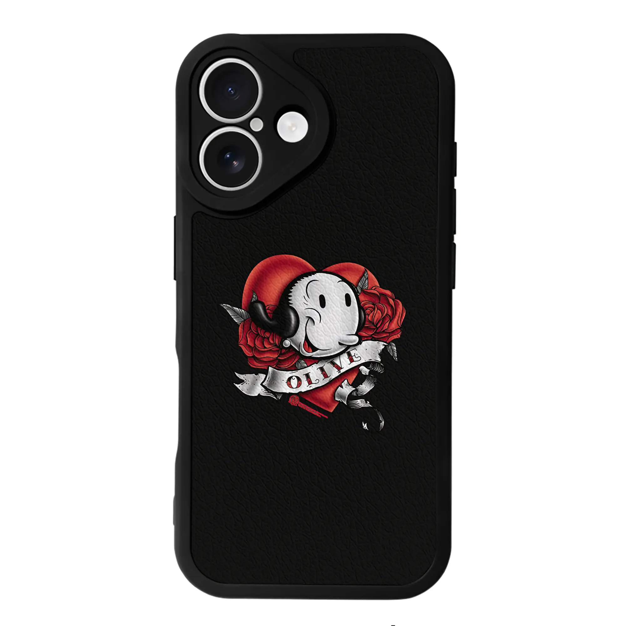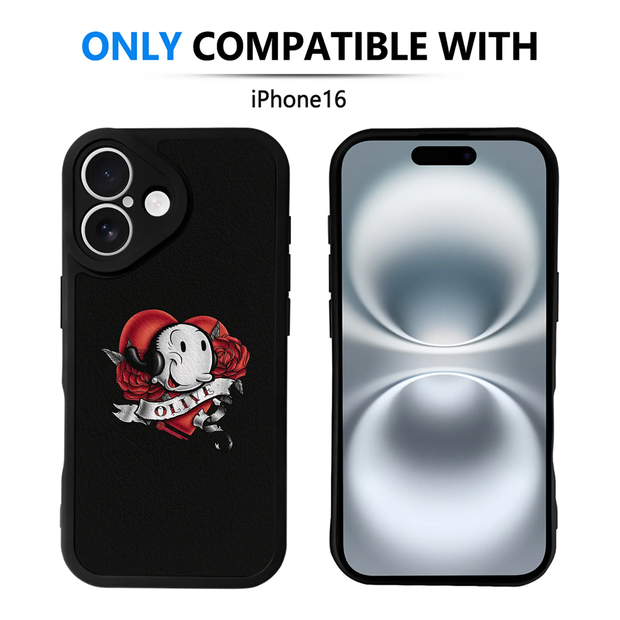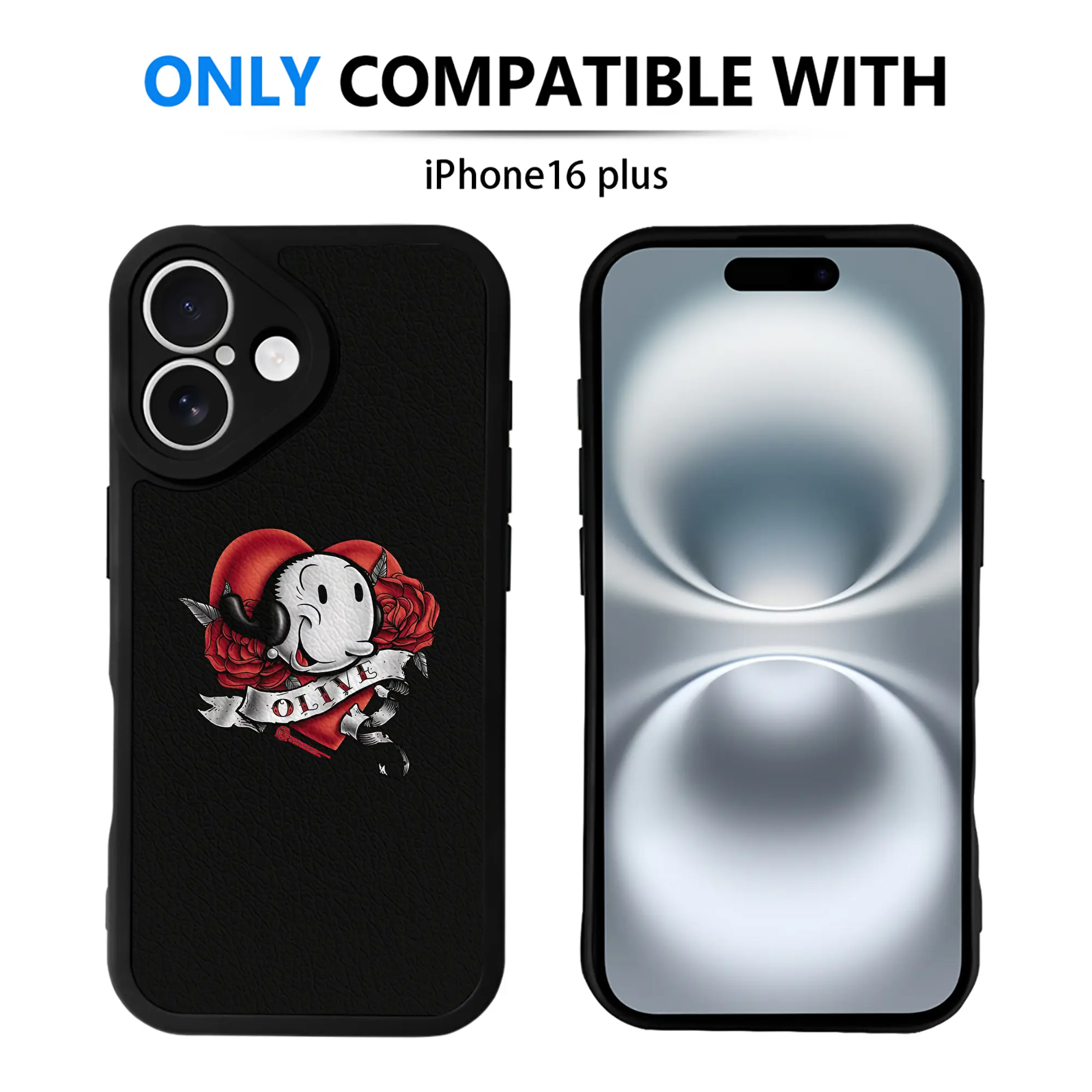 ポパイ グッズ オリーブ・オイル - IPhone 16シリーズ対応 ・ シリコンスマホケース ・ レザー調 ・ 高精度フィット ・ 耐衝撃 ・ ワイヤレス充電対応 ・ 精密カット