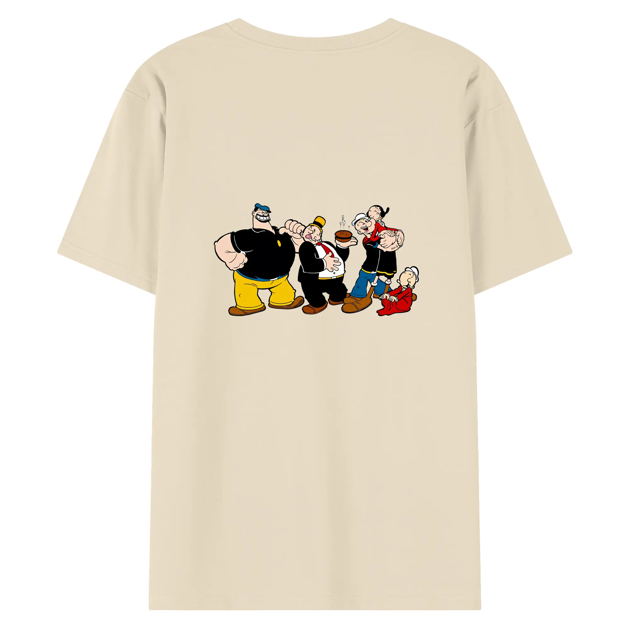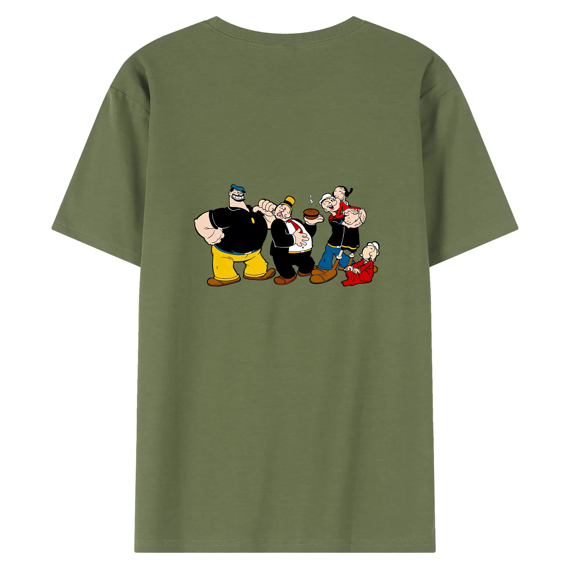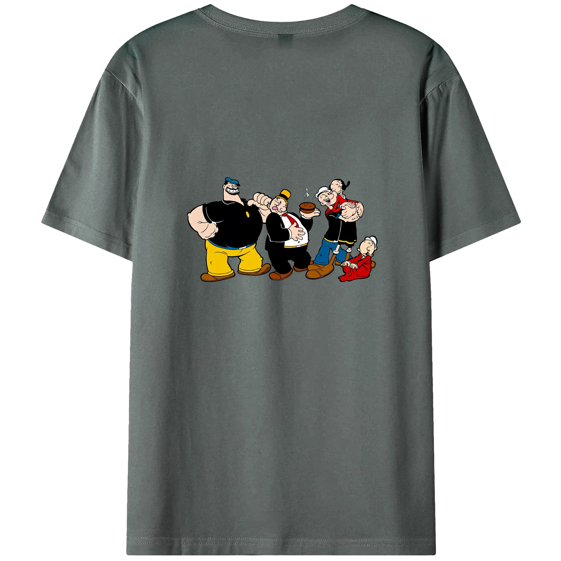 ポパイ グッズ ブルート - 綿100% ヴィンテージ風 半袖Tシャツ ・ 背面プリント ・ 柔らか肌触り ・ 通気性 快適 ・ スポーツ カジュアル 外出用