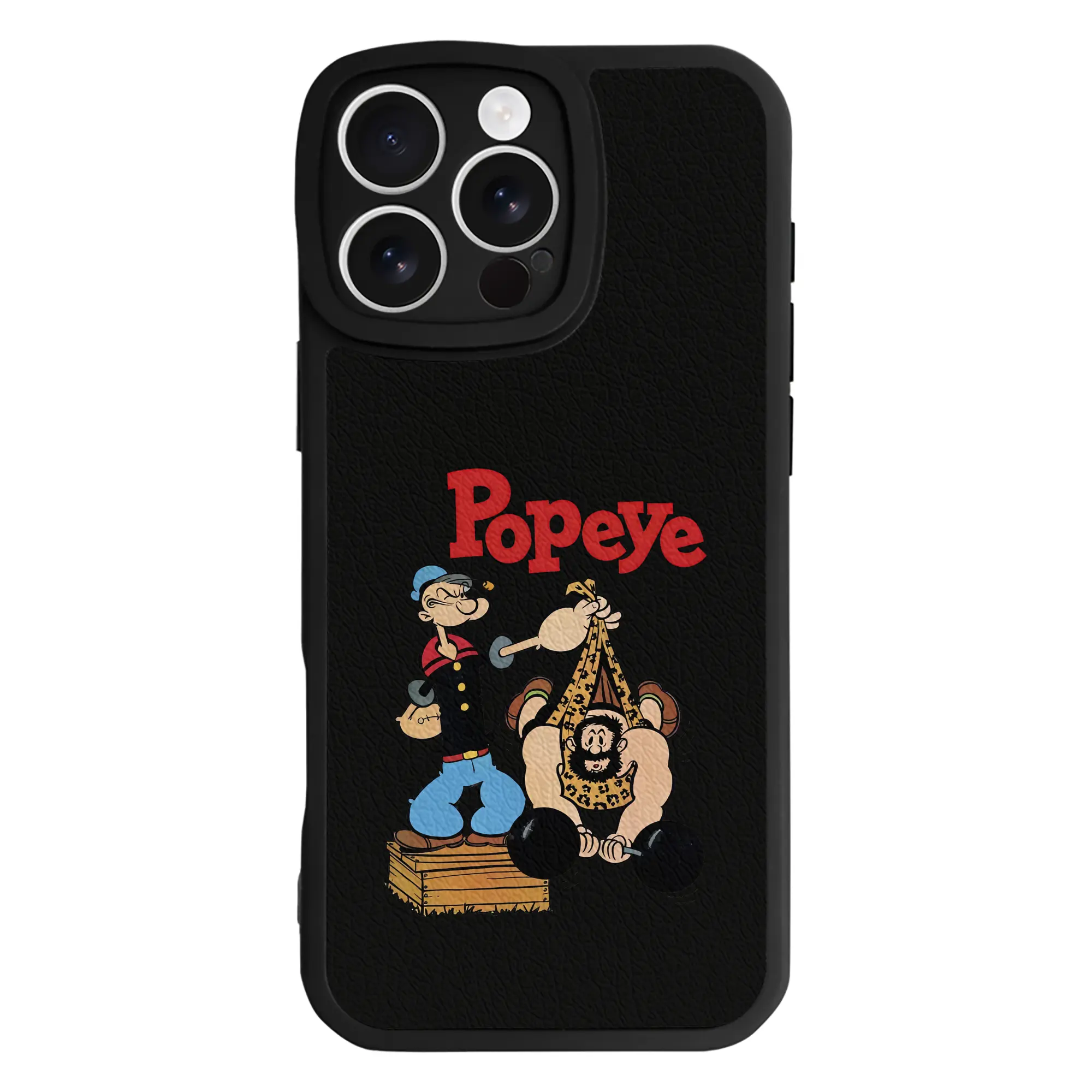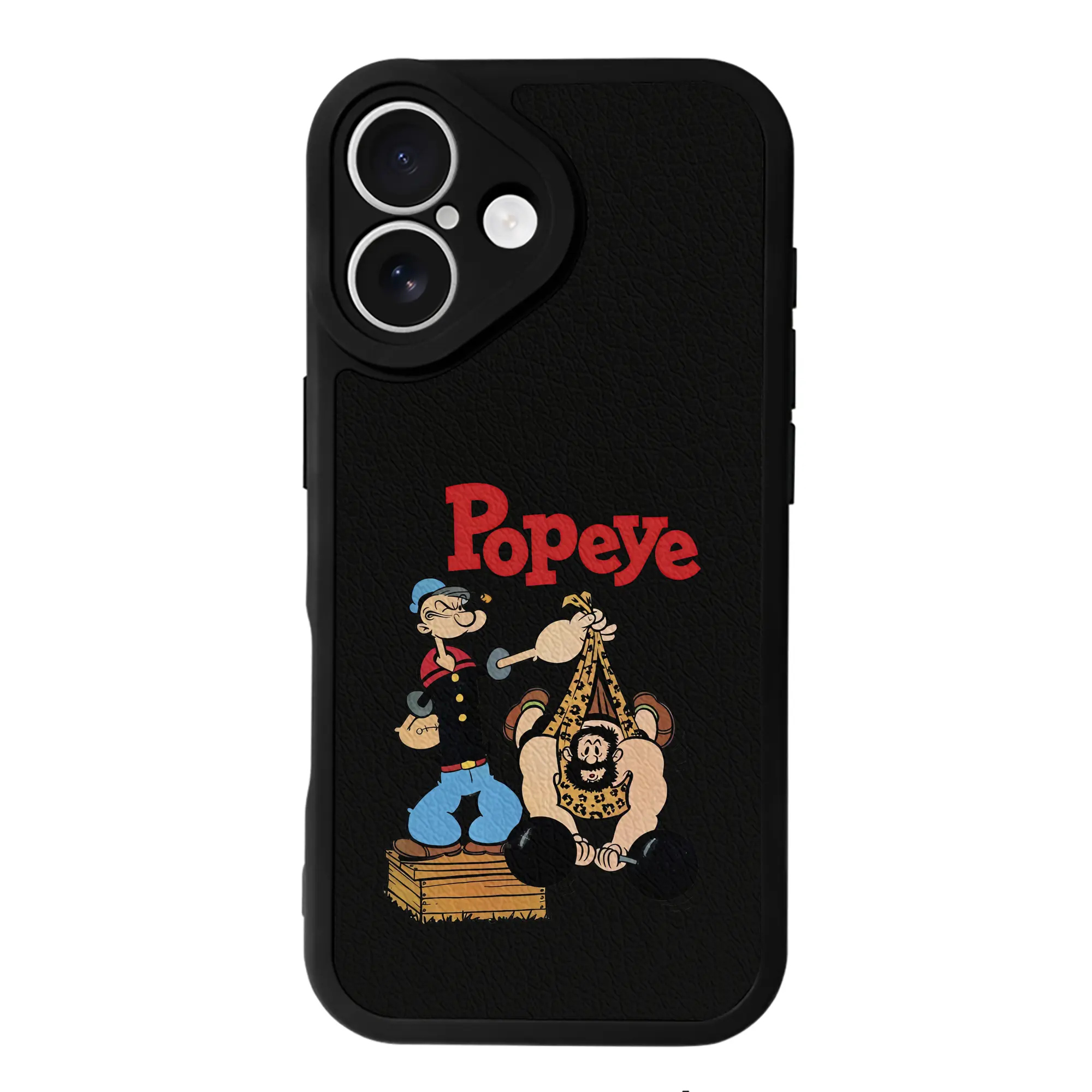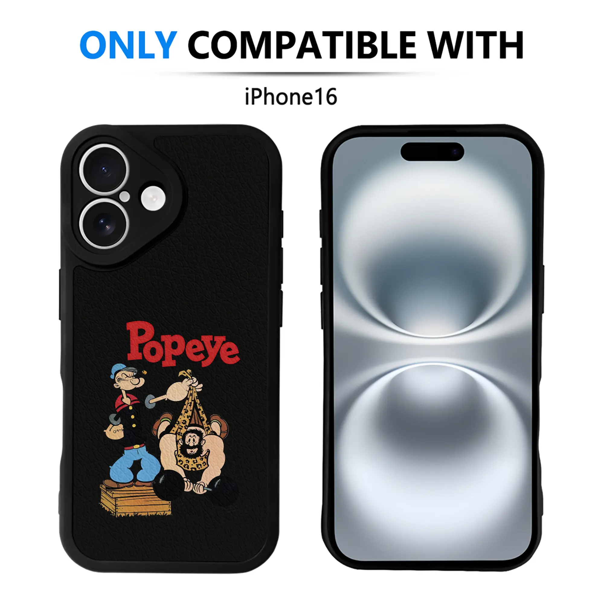 ポパイ グッズ ブルート - IPhone 16シリーズ対応 ・ シリコンスマホケース ・ レザー調 ・ 高精度フィット ・ 耐衝撃 ・ ワイヤレス充電対応 ・ 精密カット