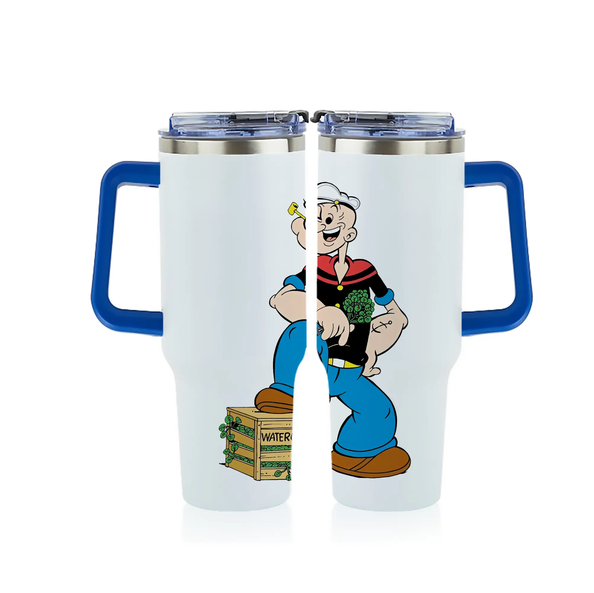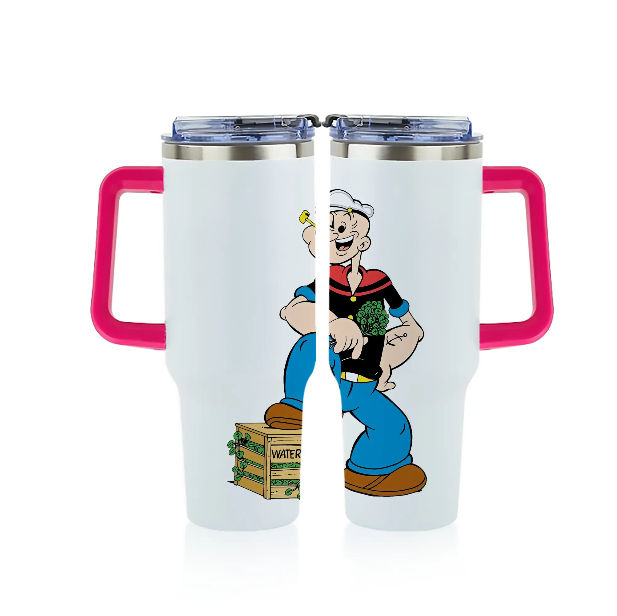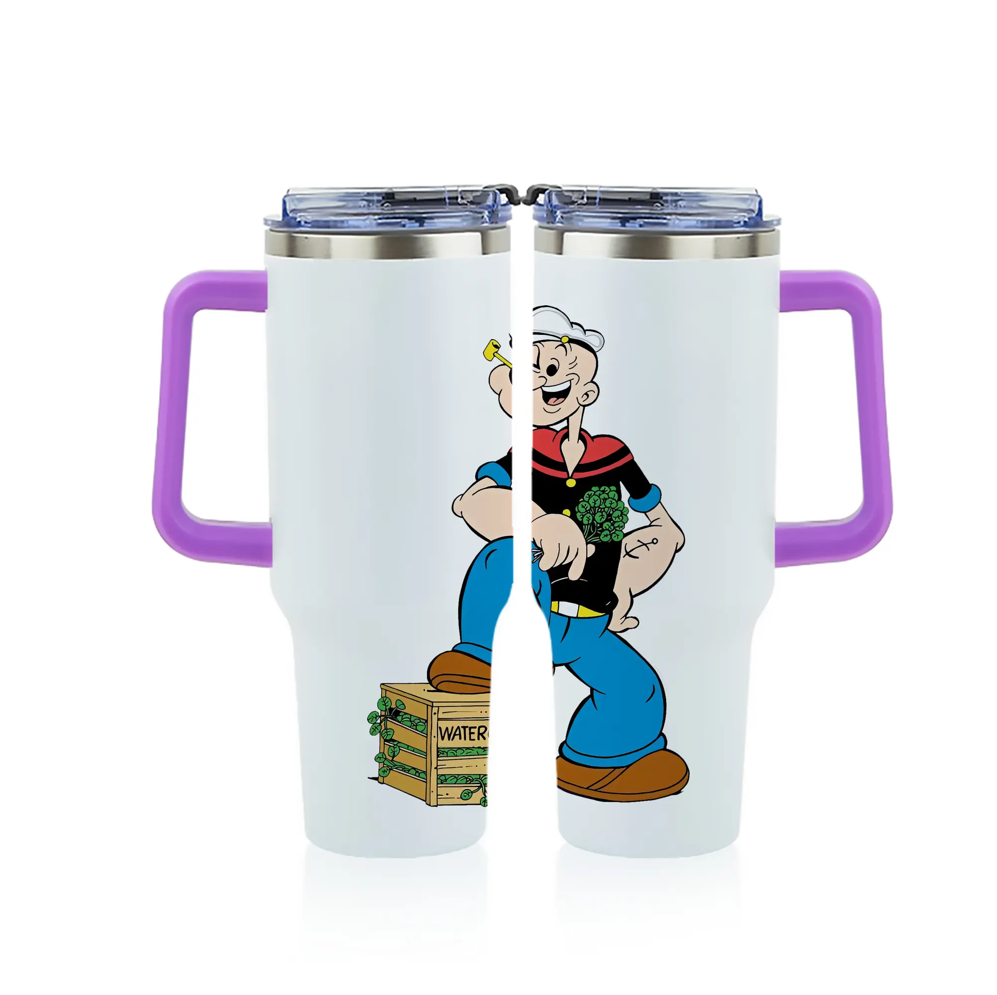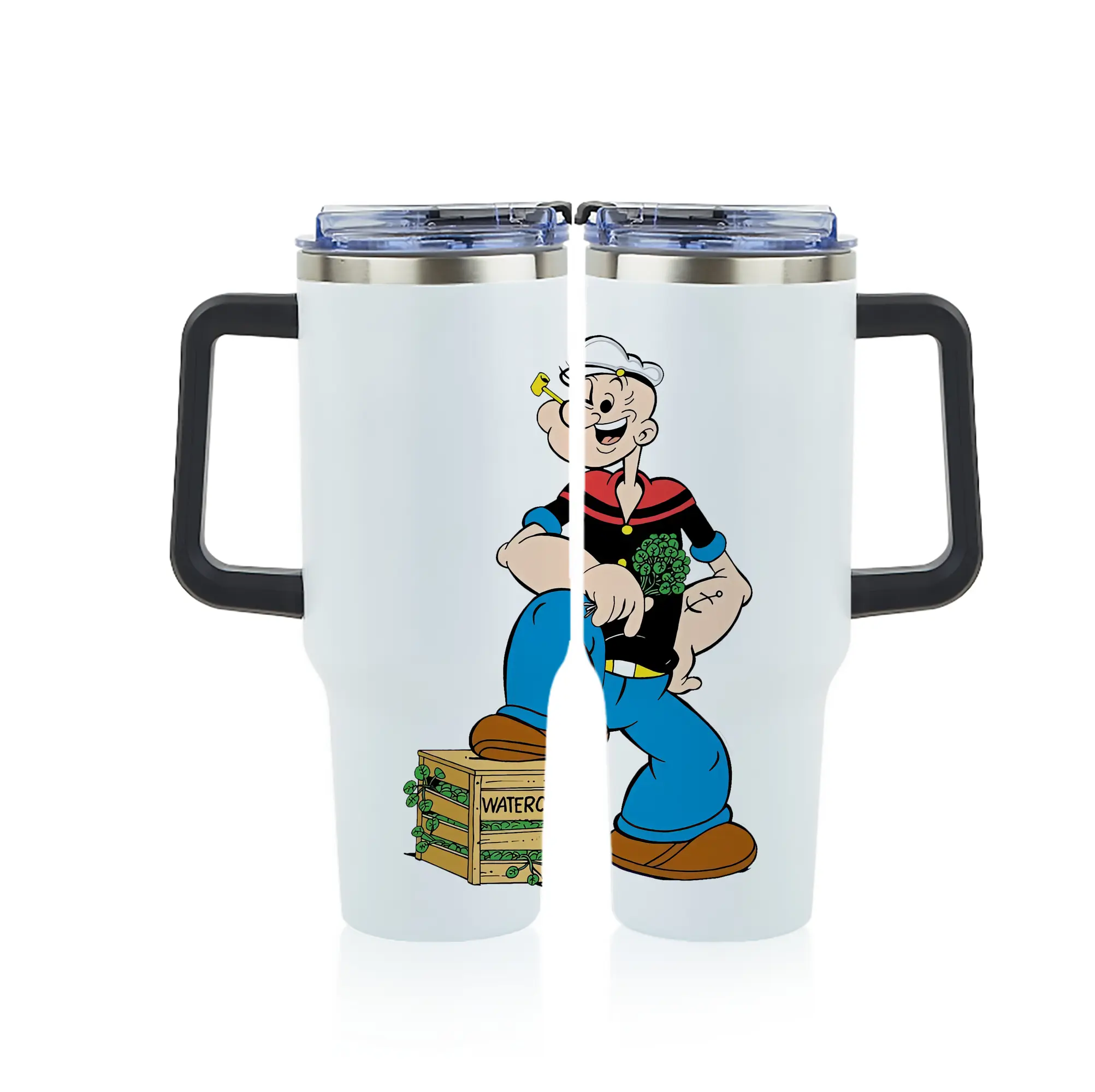 ポパイ グッズ ポパイ - 1200mL フルプリント車用タンブラー ・ 304ステンレス 内側 ・ 201ステンレス 外側 ・ 保温 保冷 ・ 通勤 ドライブ アウトドア用