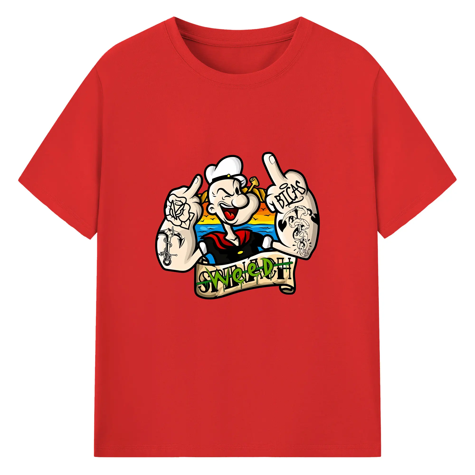 ポパイ グッズ ポパイ - 綿100% 半袖Tシャツ ・ バックプリント ・ 快適 通気性 ・ 日常使い 散歩 スポーツ用
