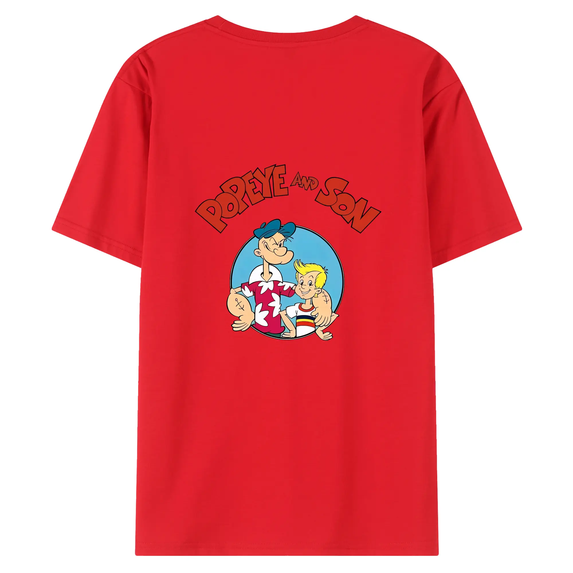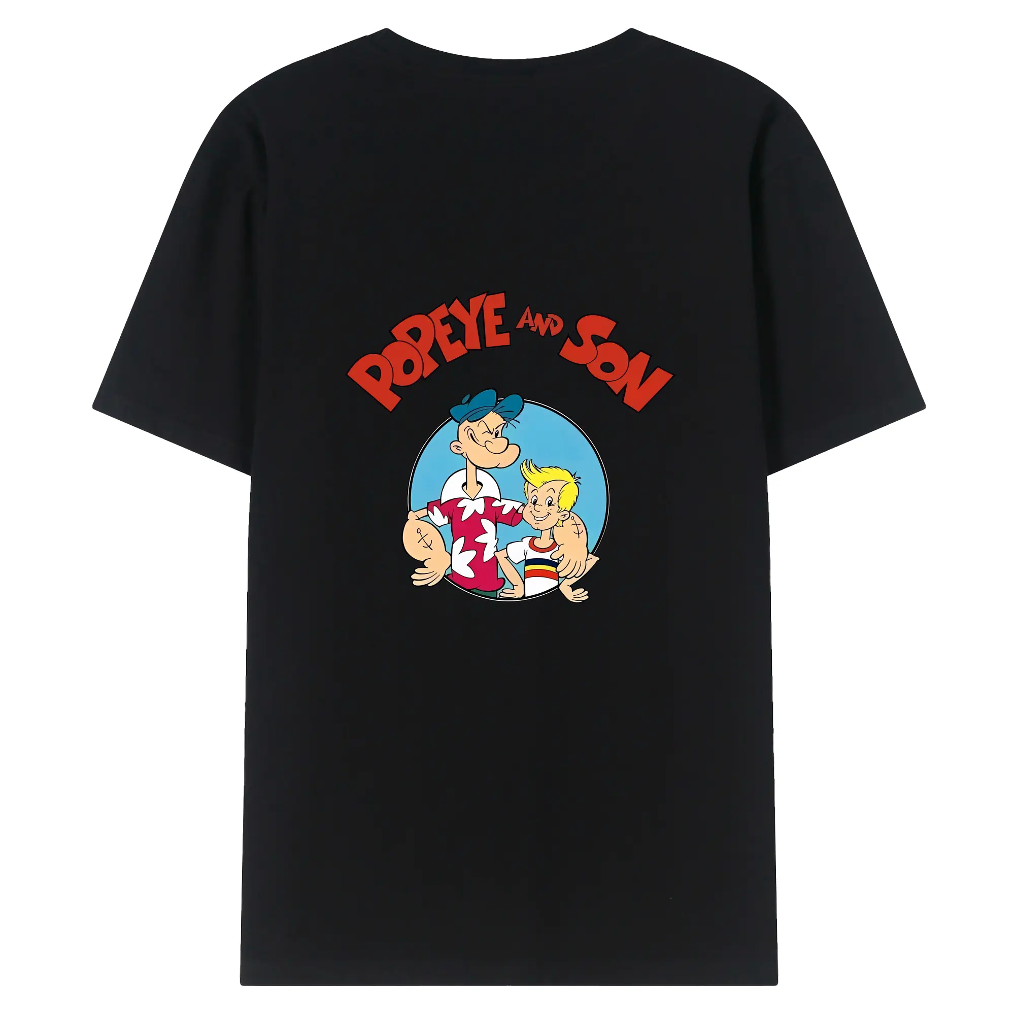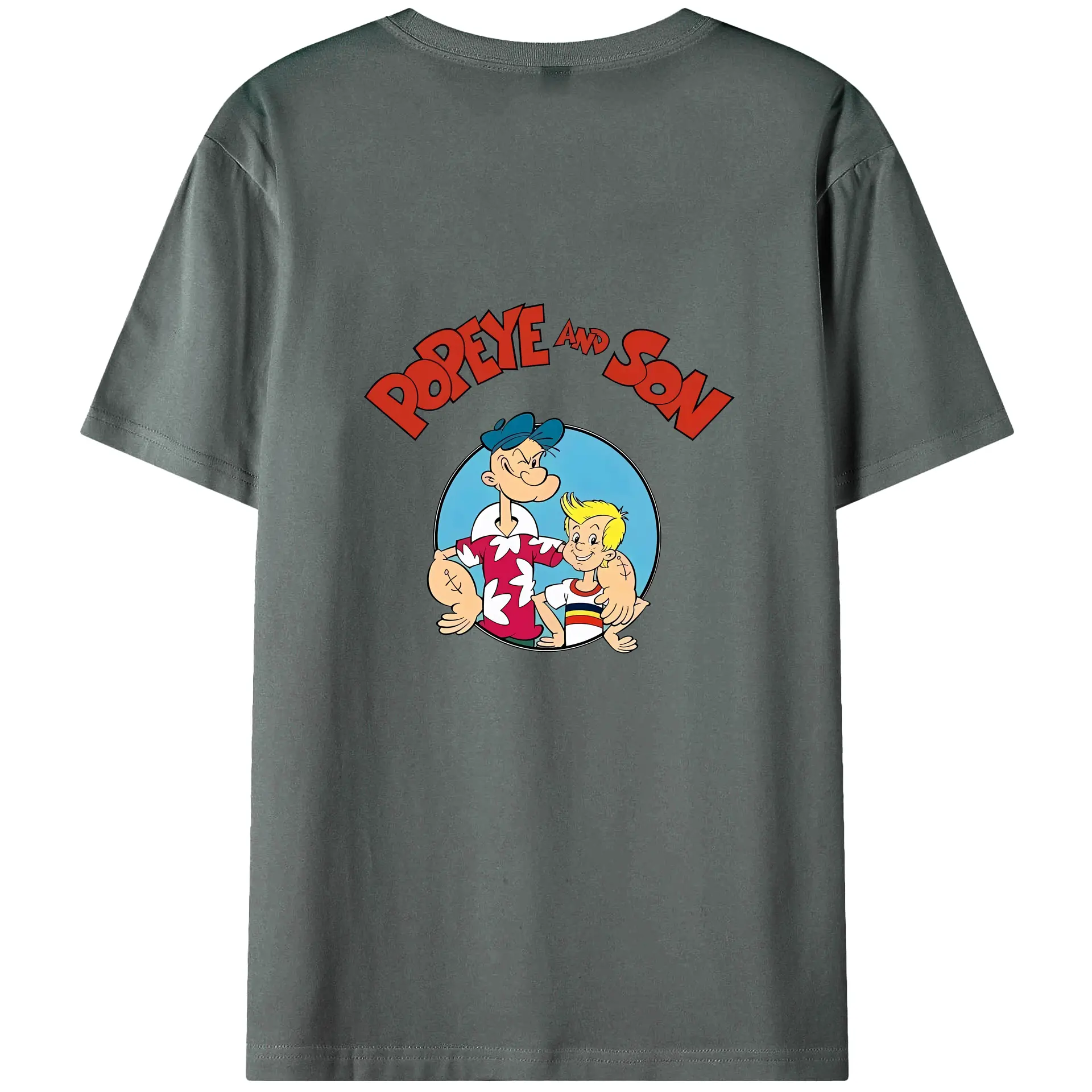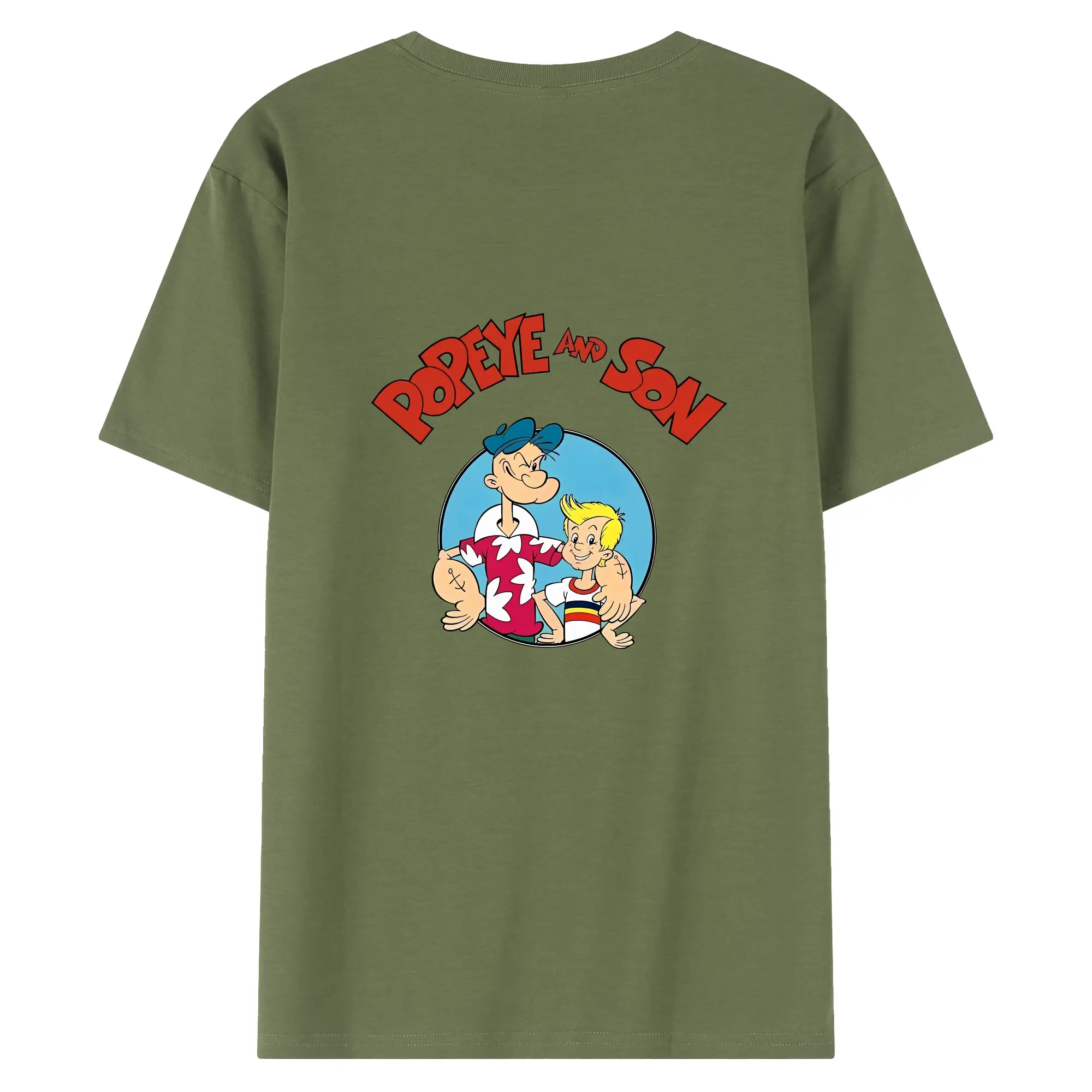 ポパイ グッズ ポパイ - 綿100% ヴィンテージ風 半袖Tシャツ ・ 背面プリント ・ 柔らか肌触り ・ 通気性 快適 ・ スポーツ カジュアル 外出用