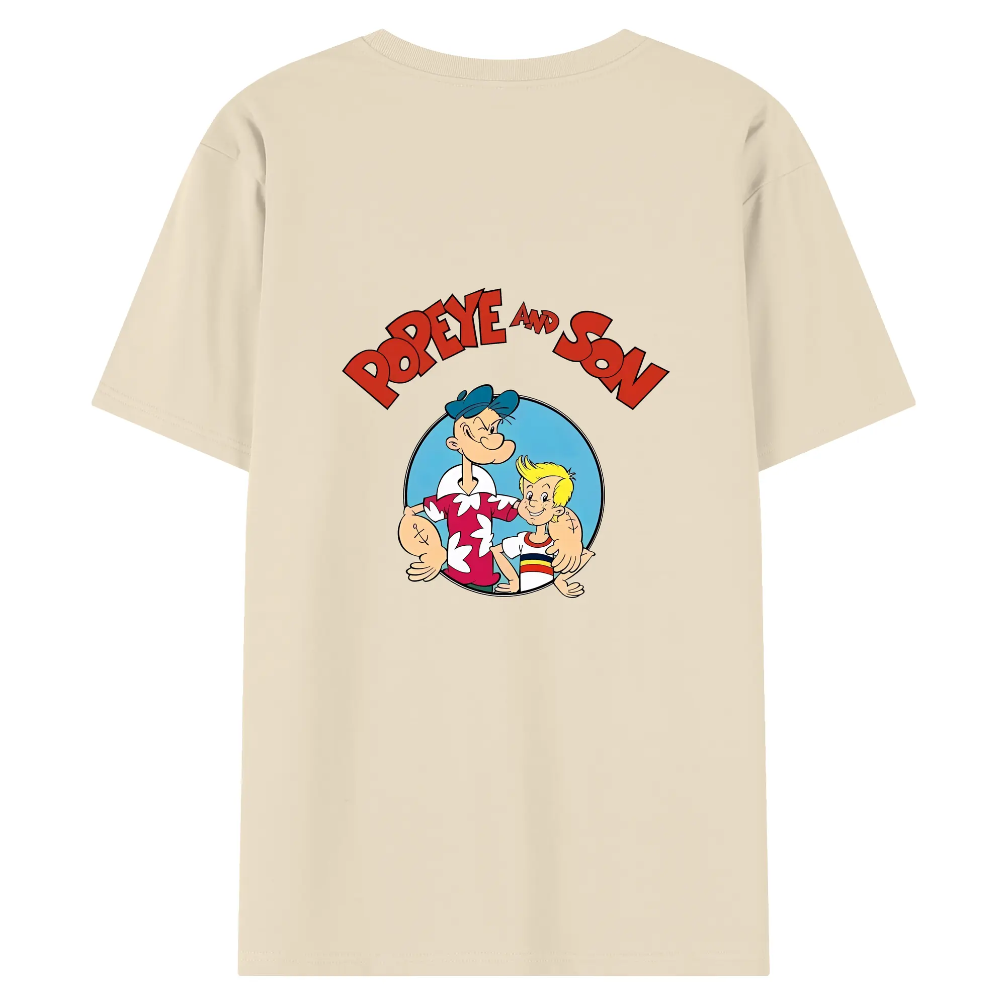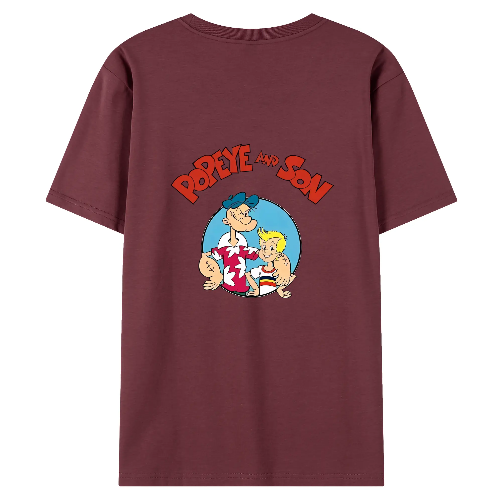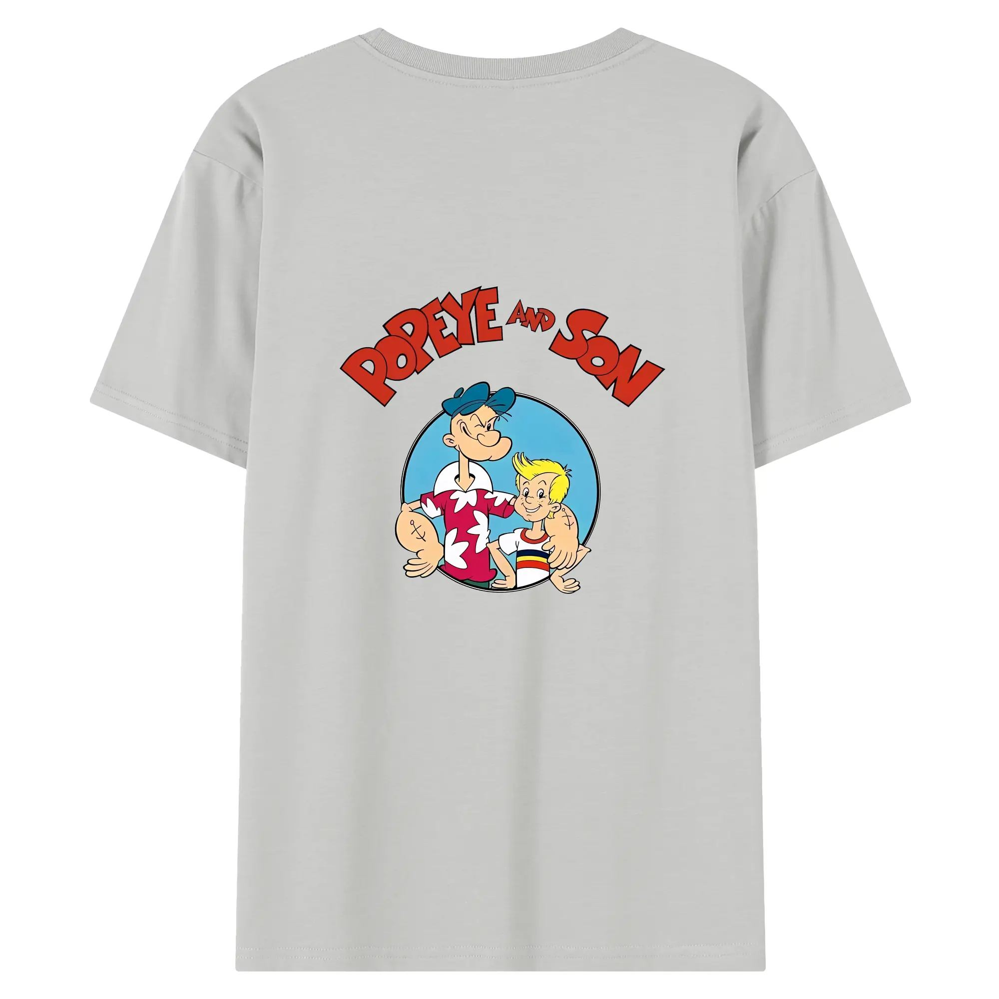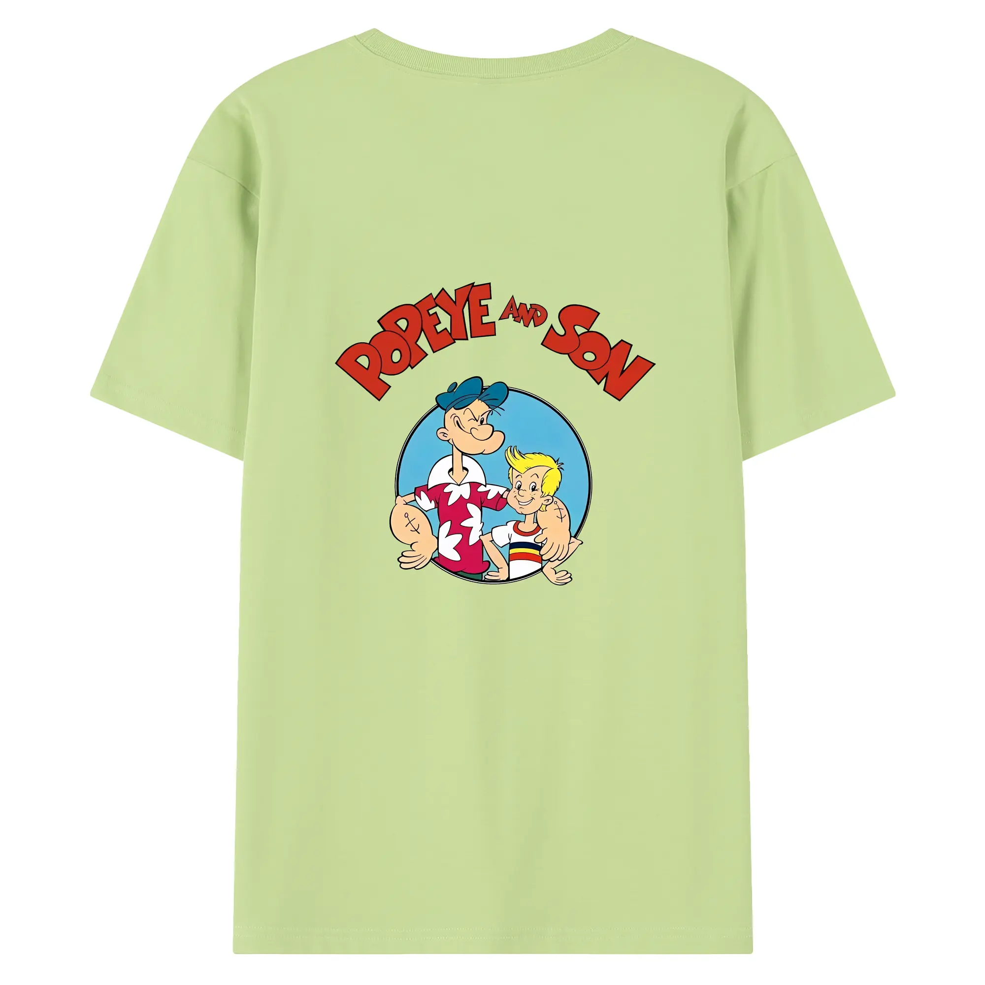 ポパイ グッズ ポパイ - 綿100% ヴィンテージ風 半袖Tシャツ ・ 背面プリント ・ 柔らか肌触り ・ 通気性 快適 ・ スポーツ カジュアル 外出用