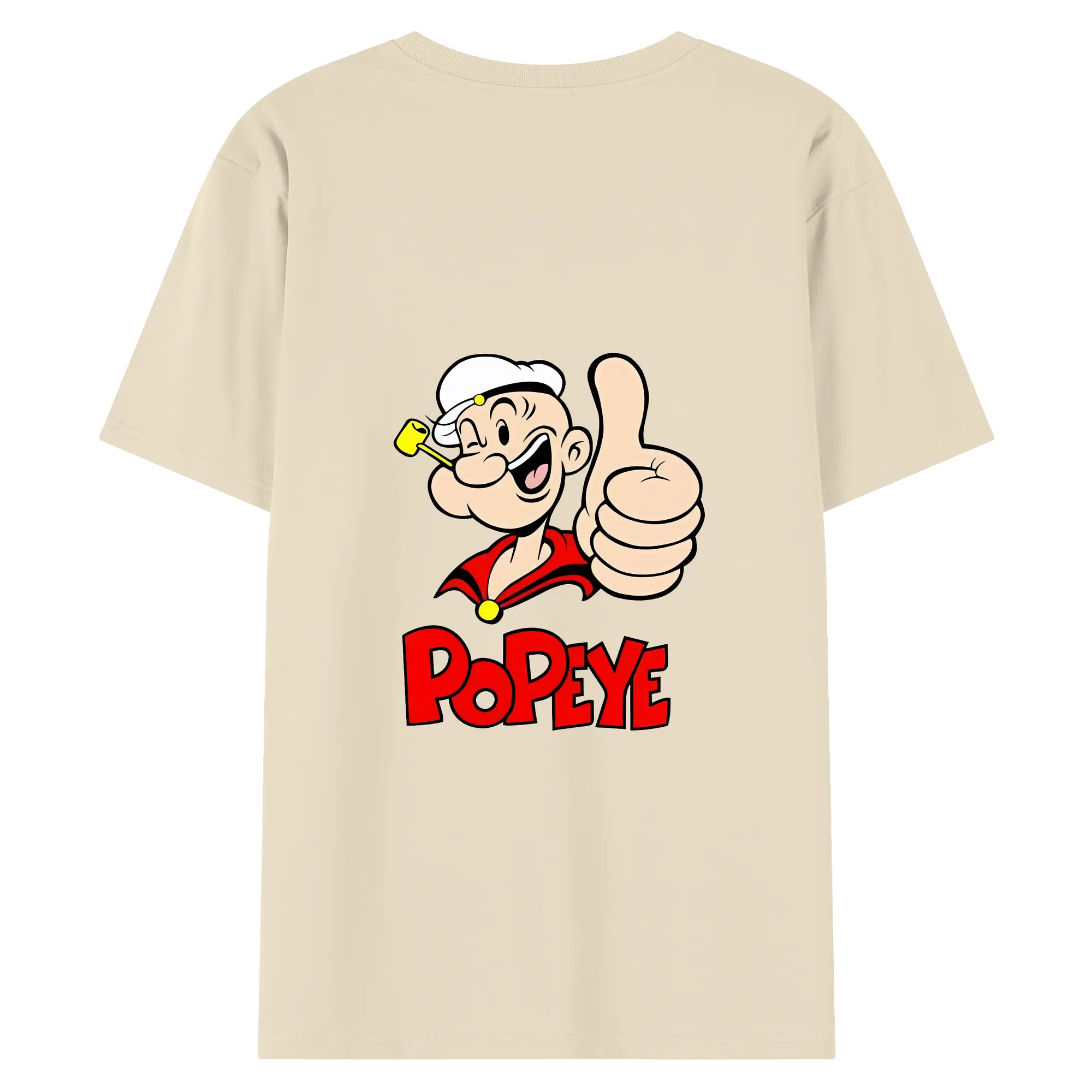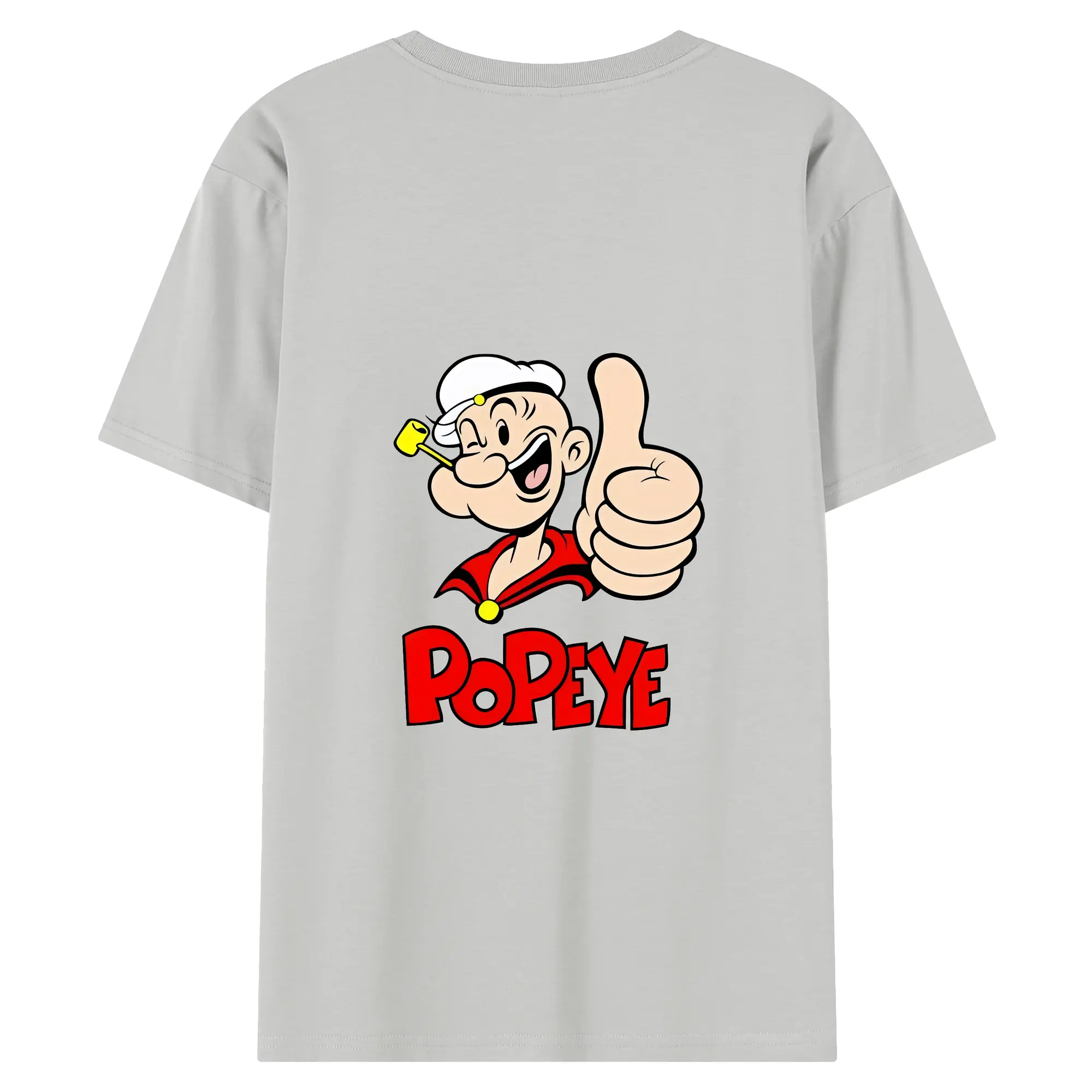 ポパイ グッズ ポパイ - 綿100% ヴィンテージ風 半袖Tシャツ ・ 背面プリント ・ 柔らか肌触り ・ 通気性 快適 ・ スポーツ カジュアル 外出用