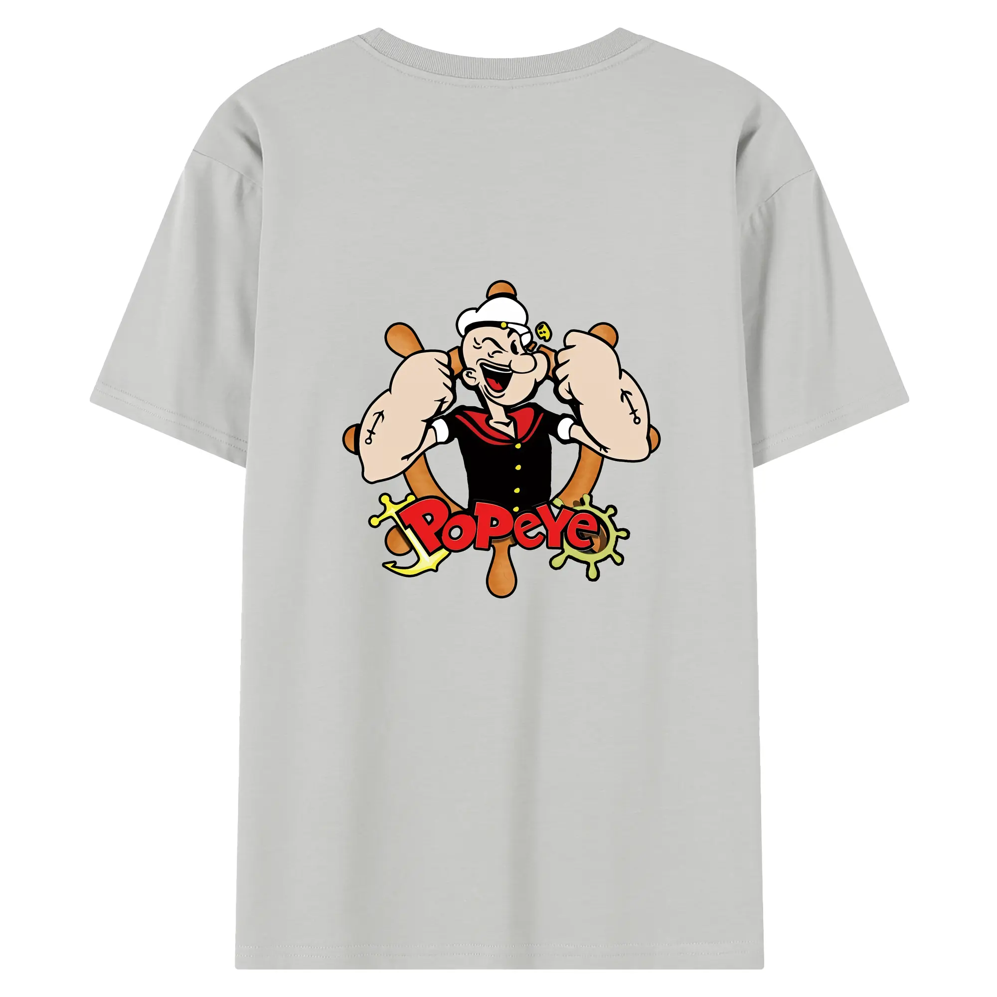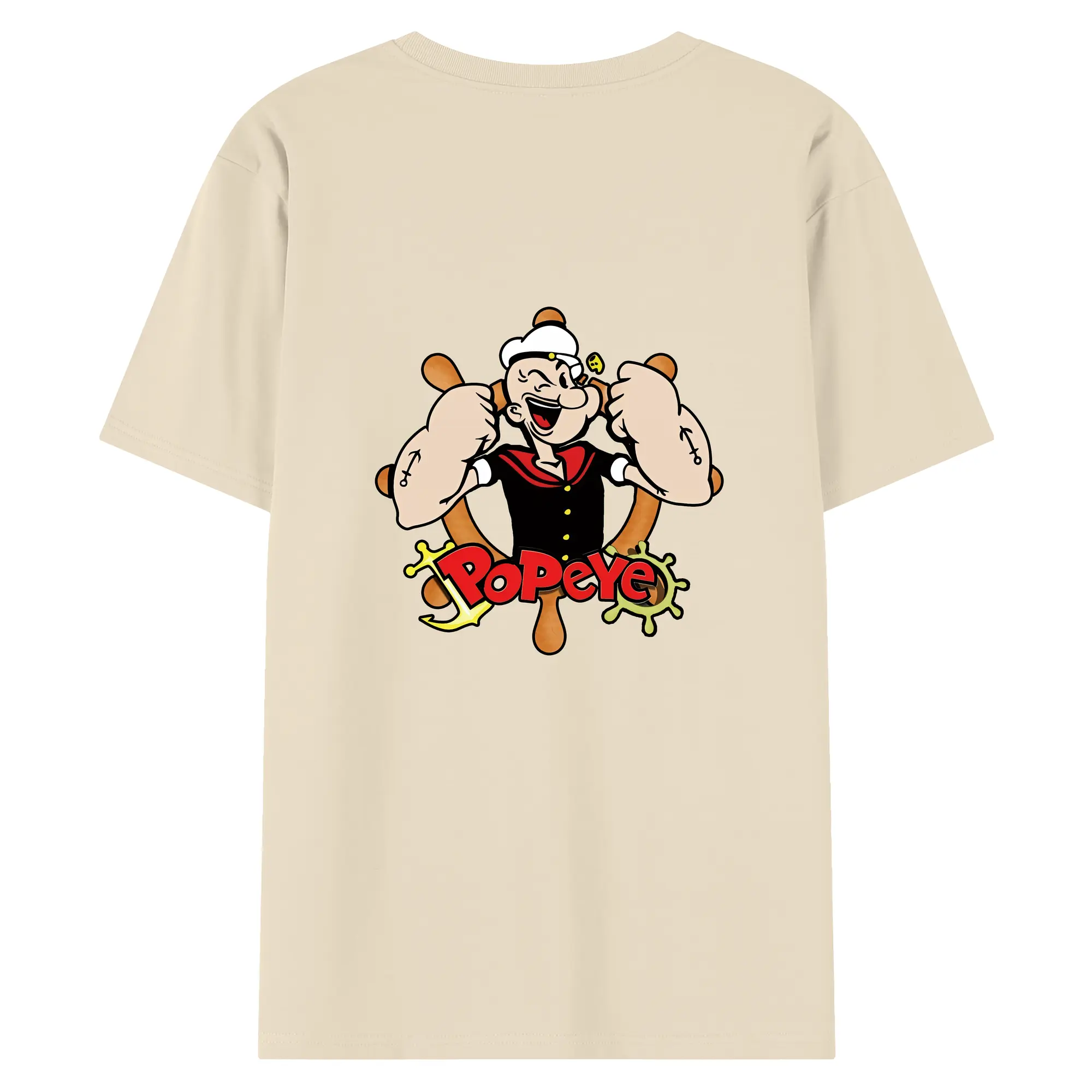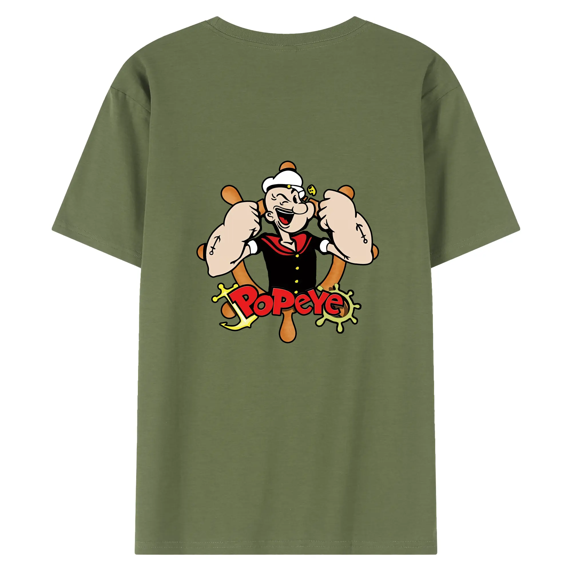 ポパイ グッズ ポパイ - 綿100% ヴィンテージ風 半袖Tシャツ ・ 背面プリント ・ 柔らか肌触り ・ 通気性 快適 ・ スポーツ カジュアル 外出用