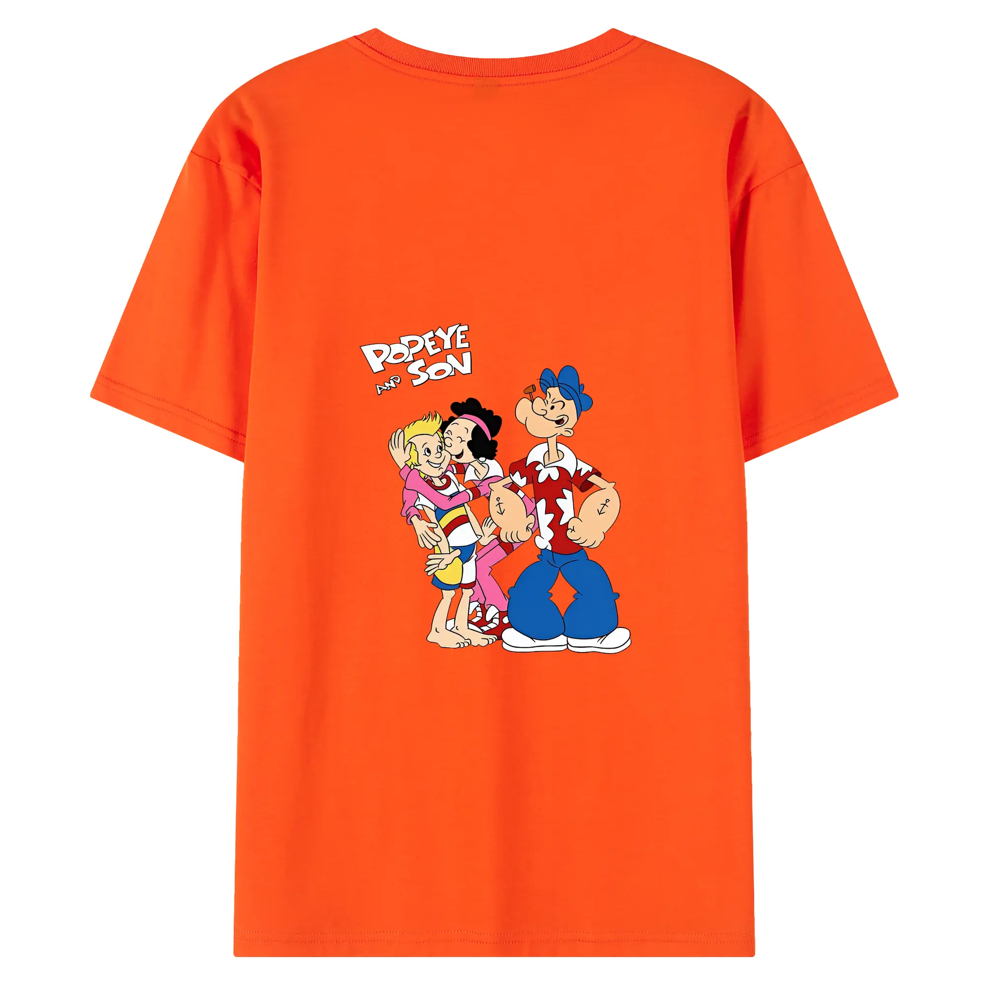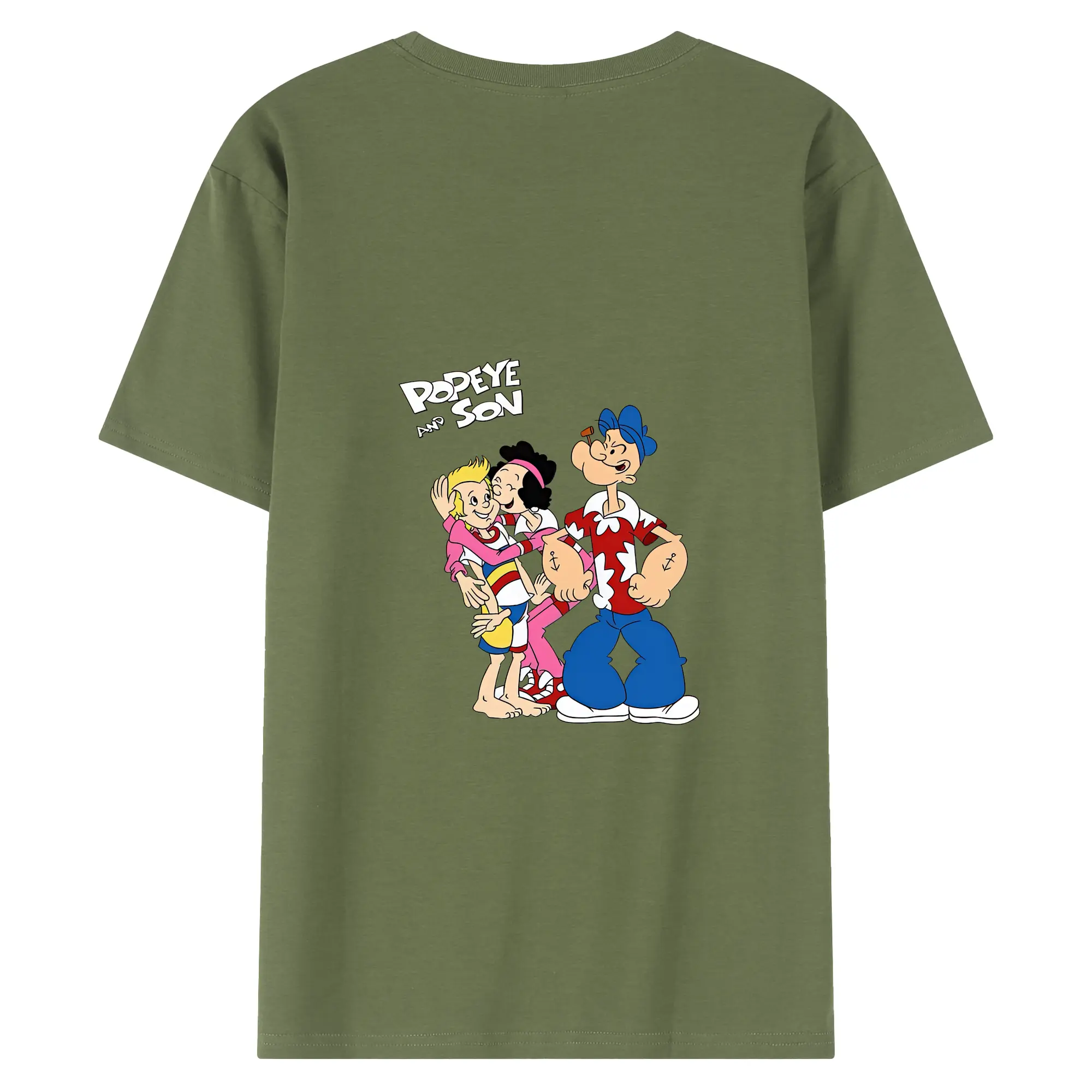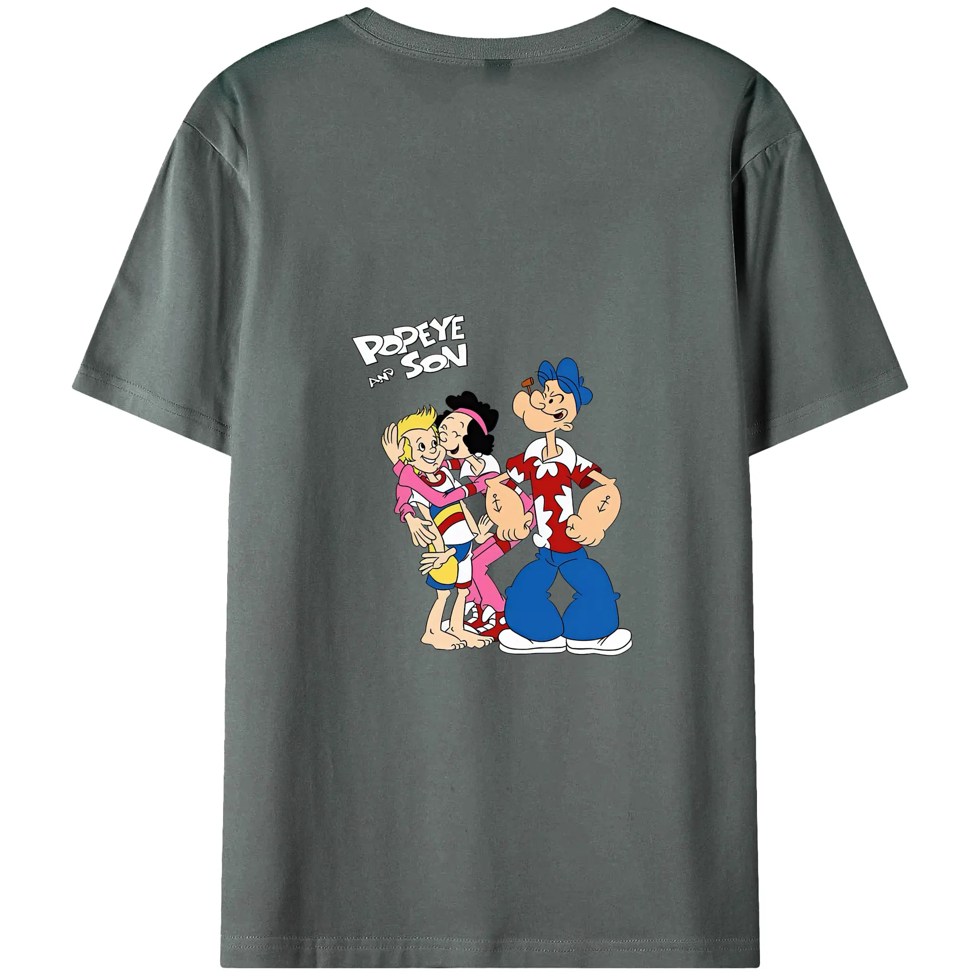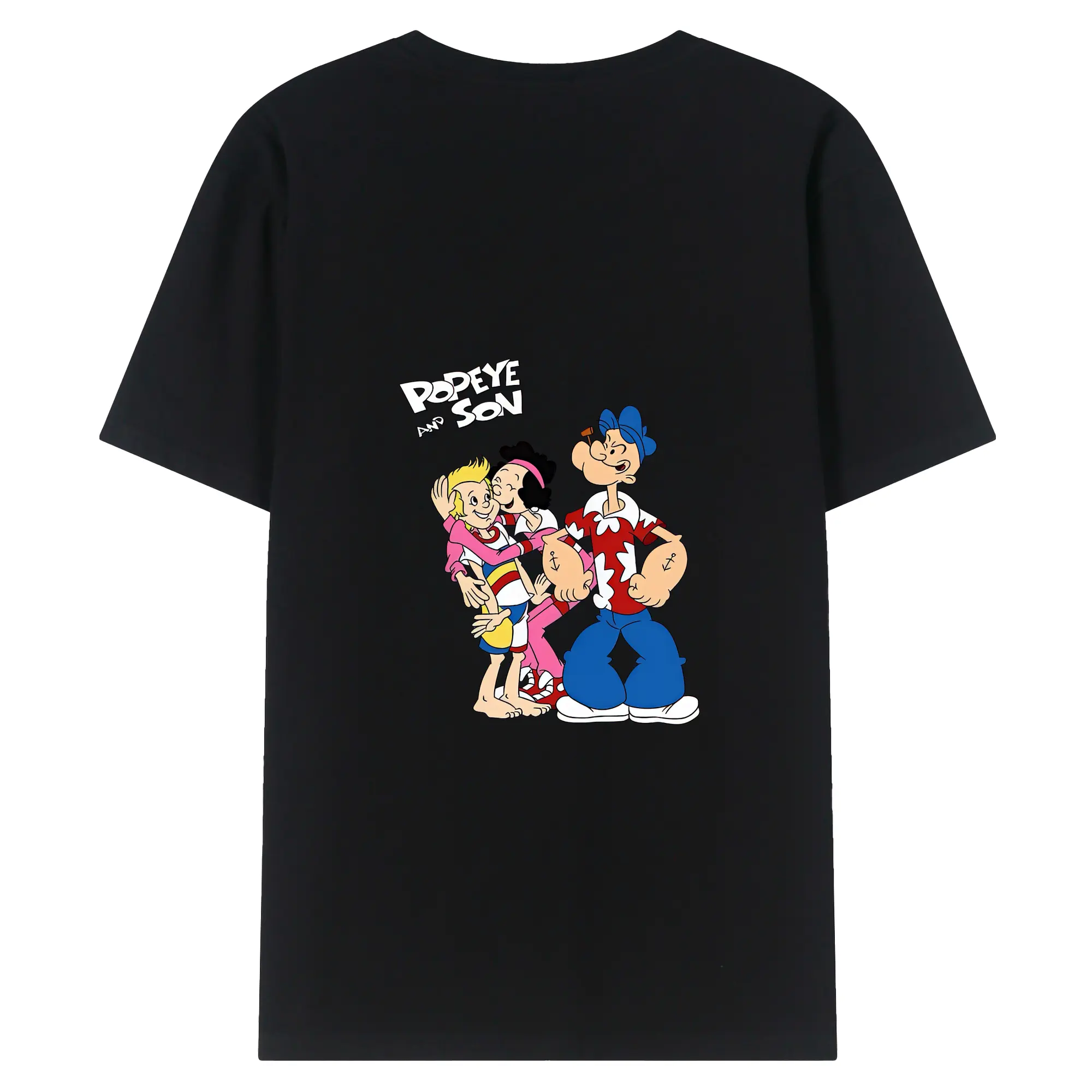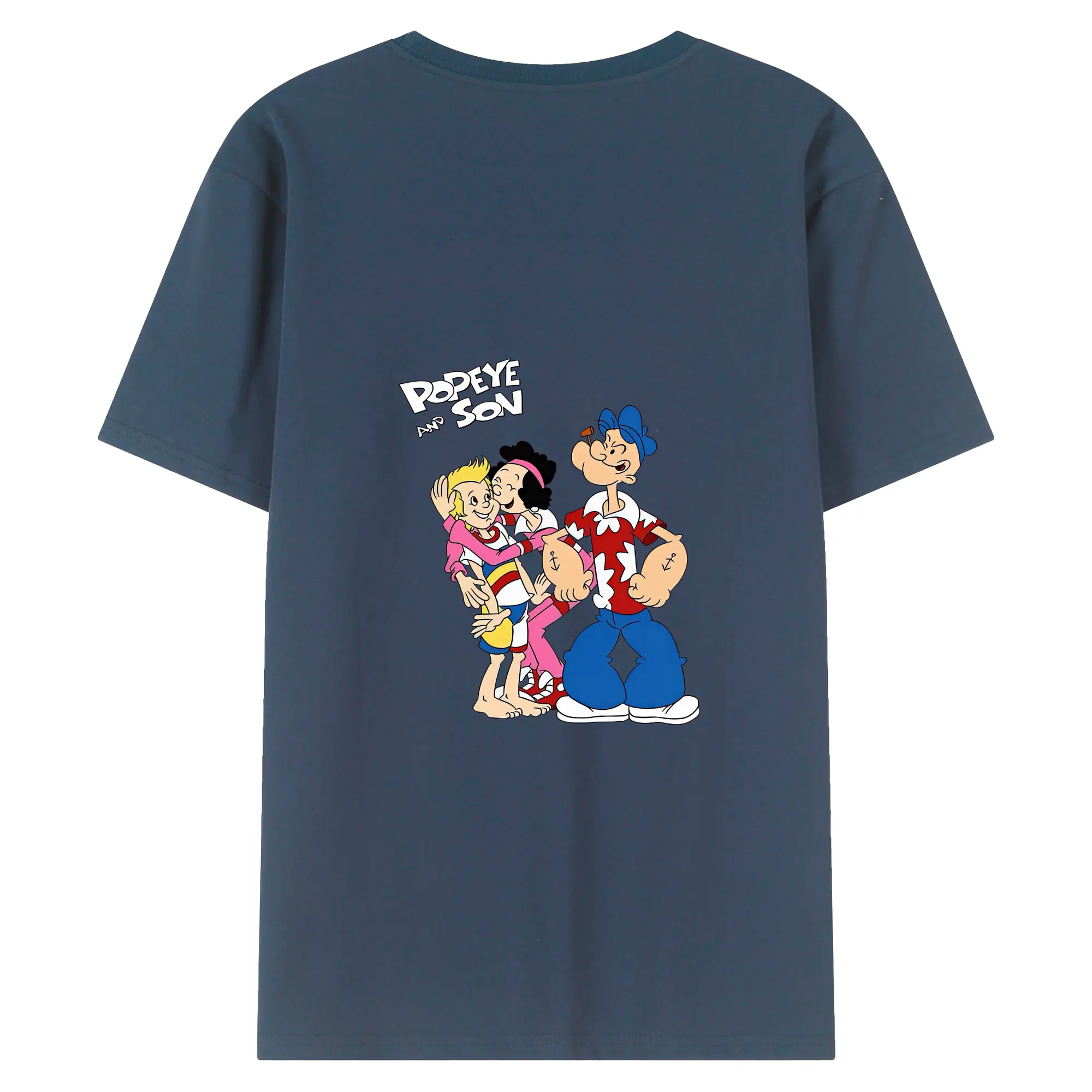ポパイ グッズ ポパイ - 綿100% ヴィンテージ風 半袖Tシャツ ・ 背面プリント ・ 柔らか肌触り ・ 通気性 快適 ・ スポーツ カジュアル 外出用