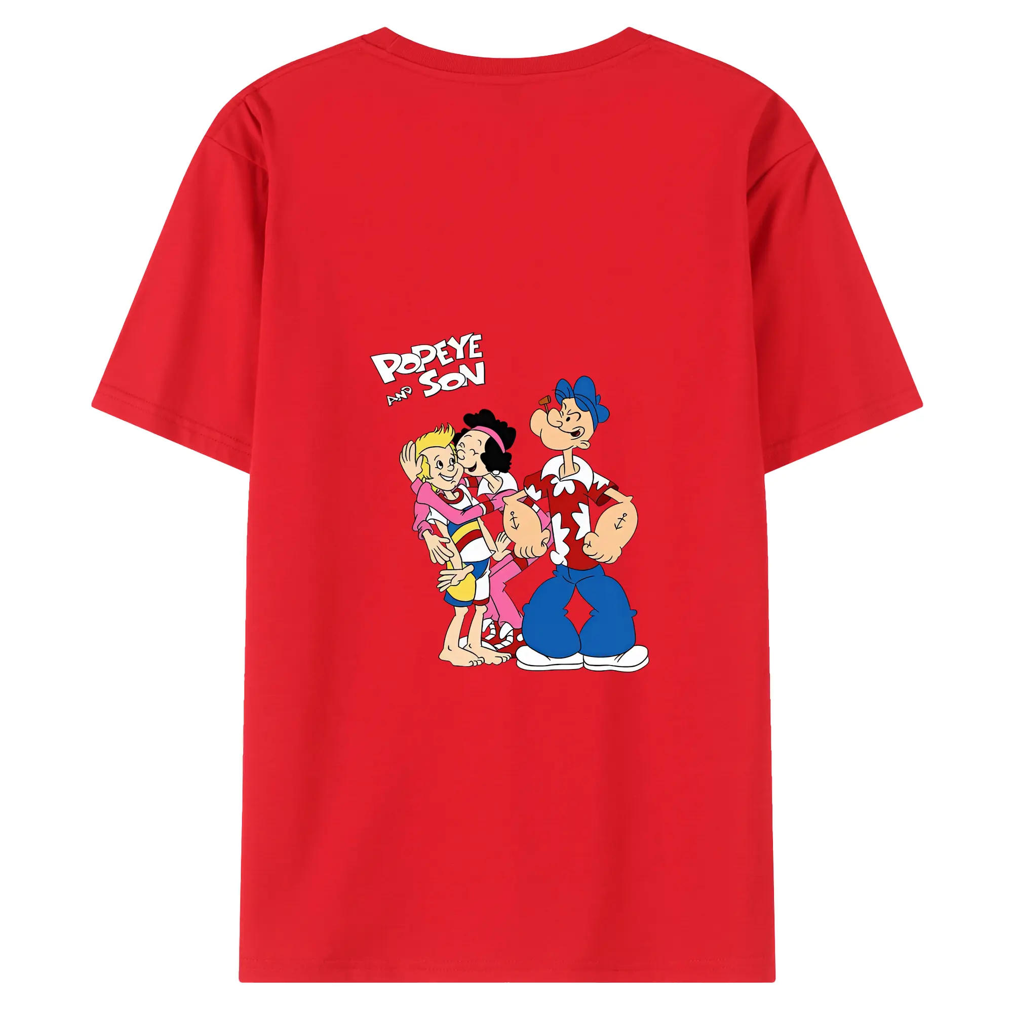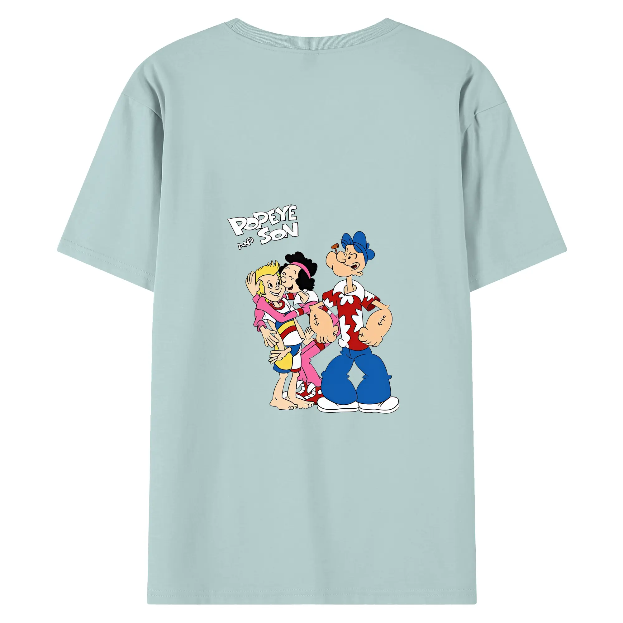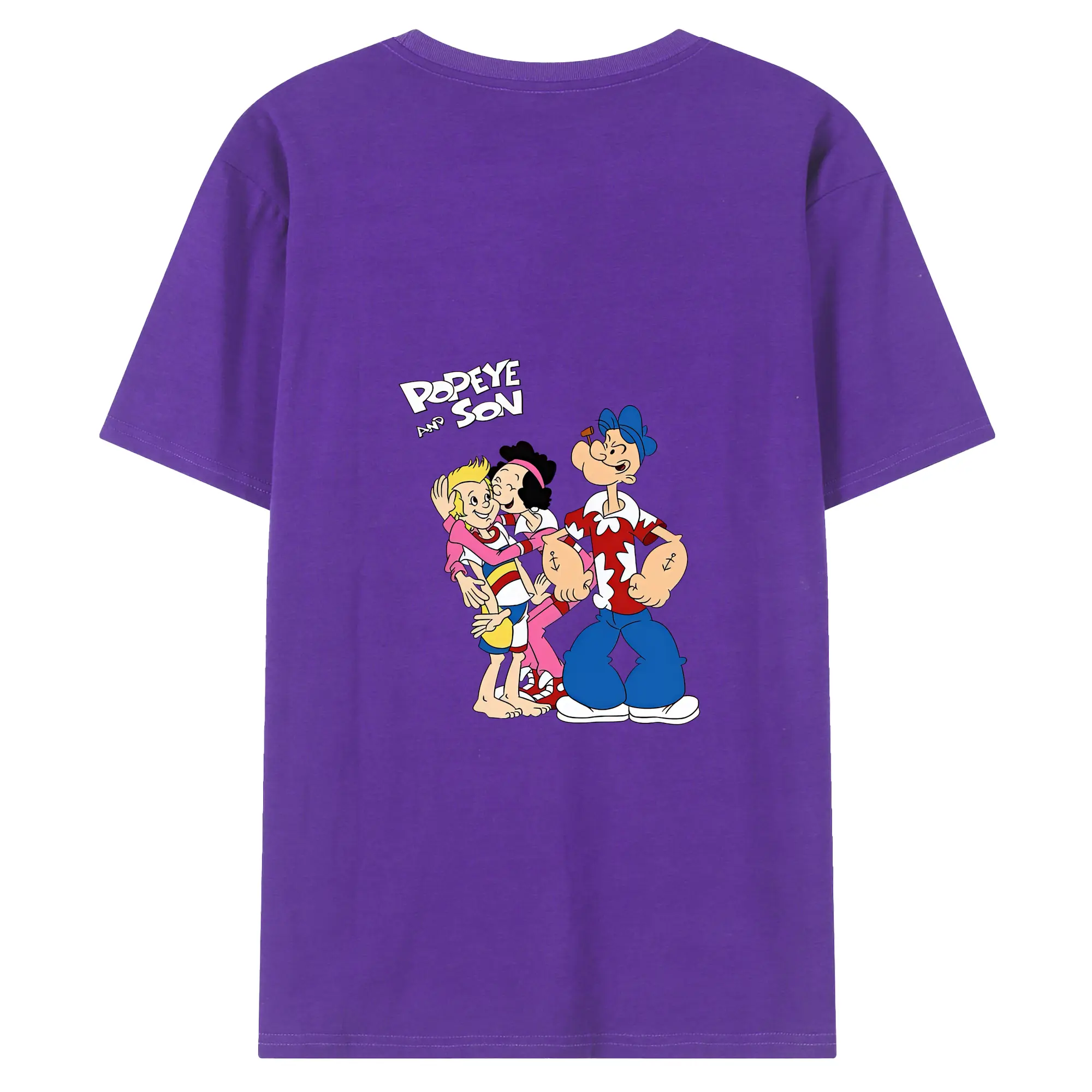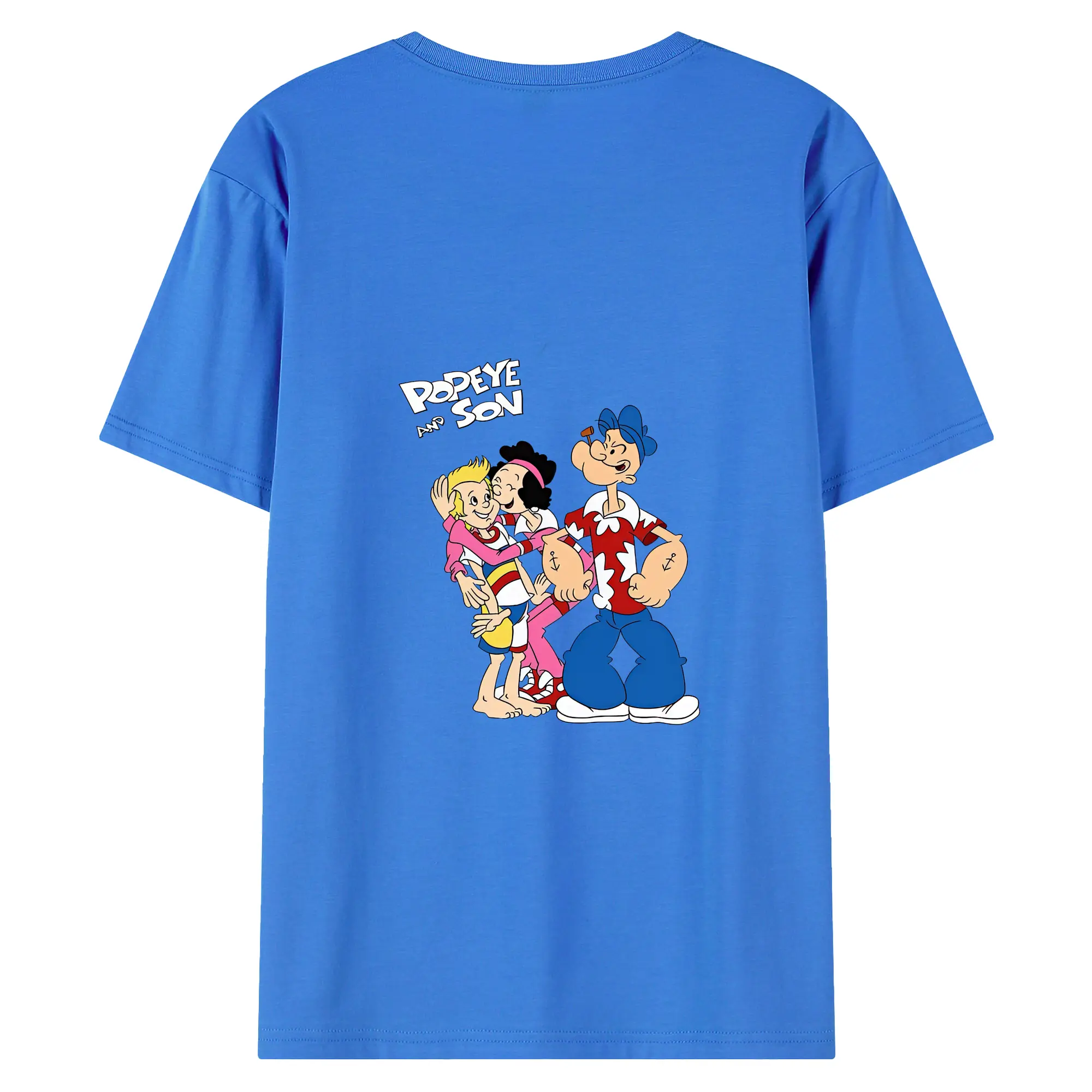 ポパイ グッズ ポパイ - 綿100% ヴィンテージ風 半袖Tシャツ ・ 背面プリント ・ 柔らか肌触り ・ 通気性 快適 ・ スポーツ カジュアル 外出用