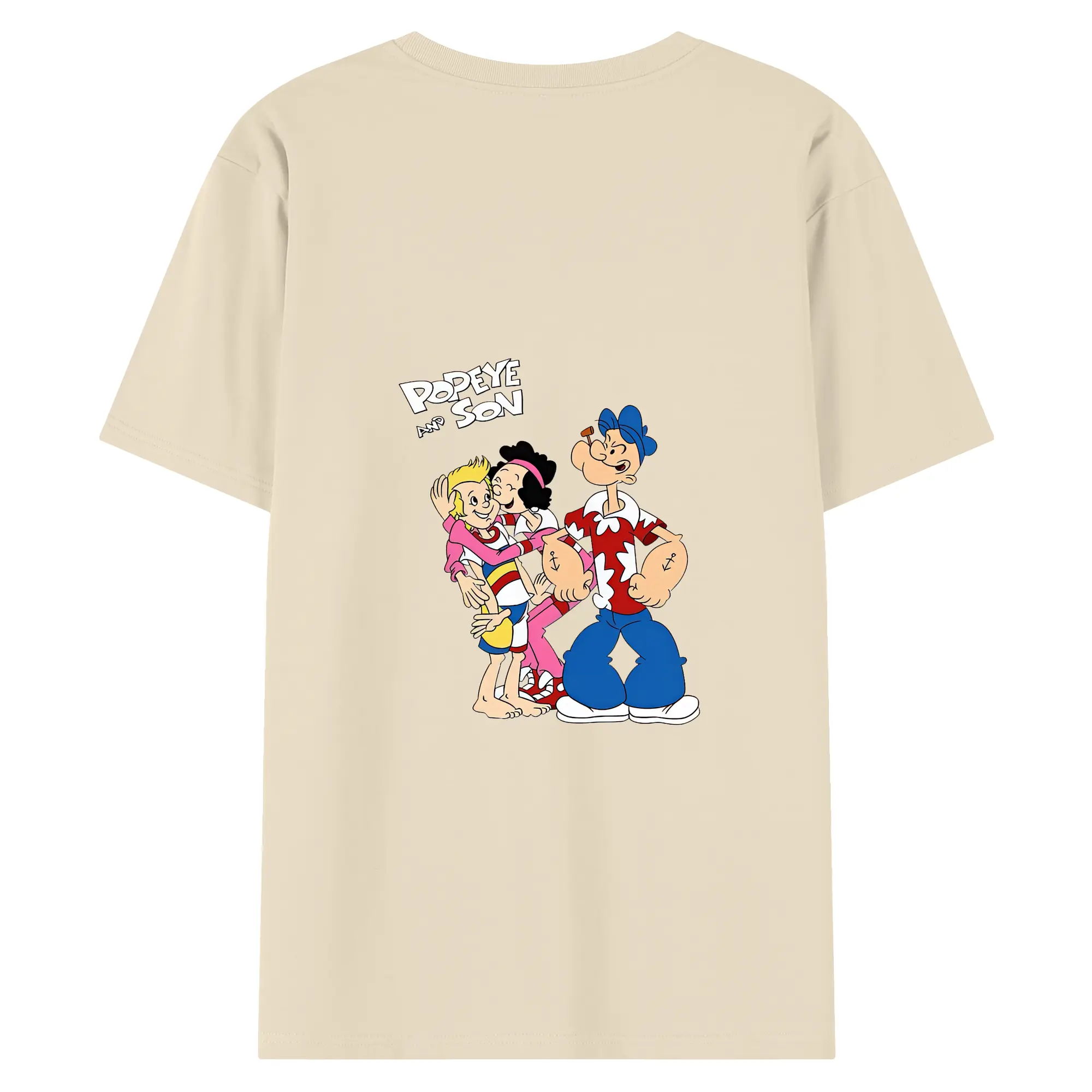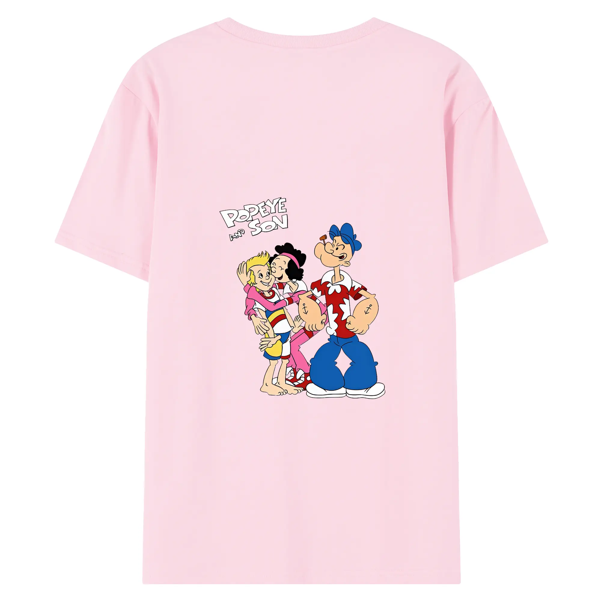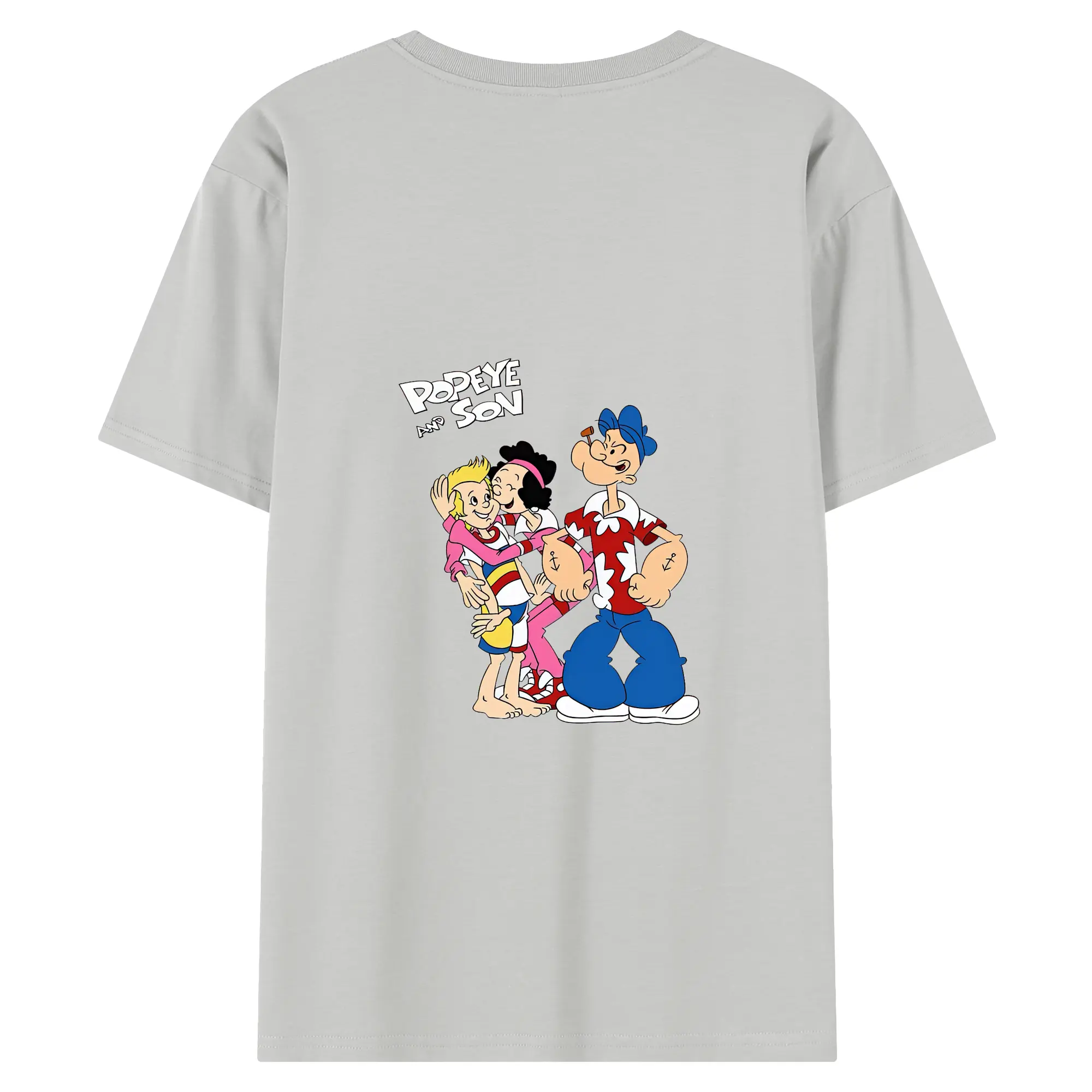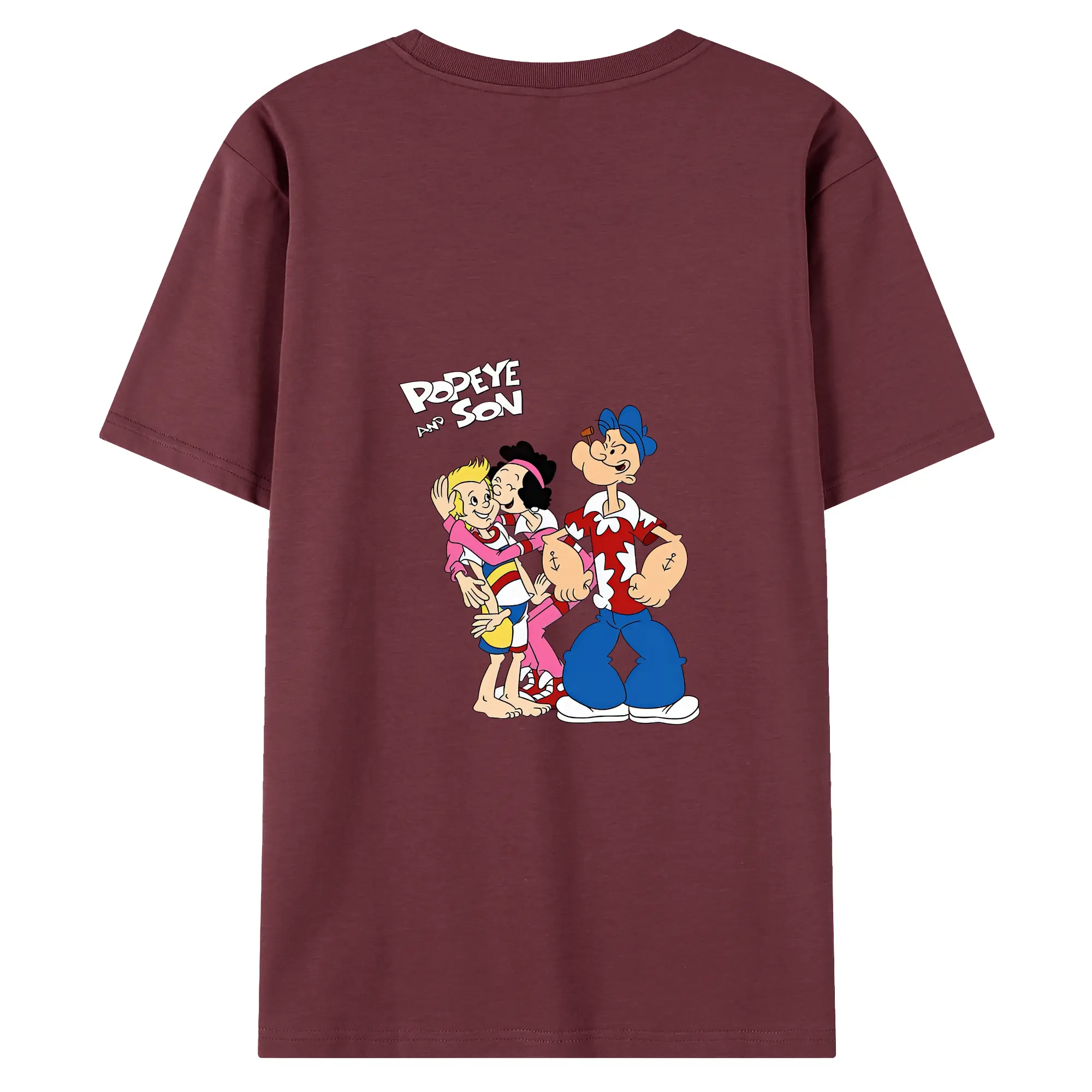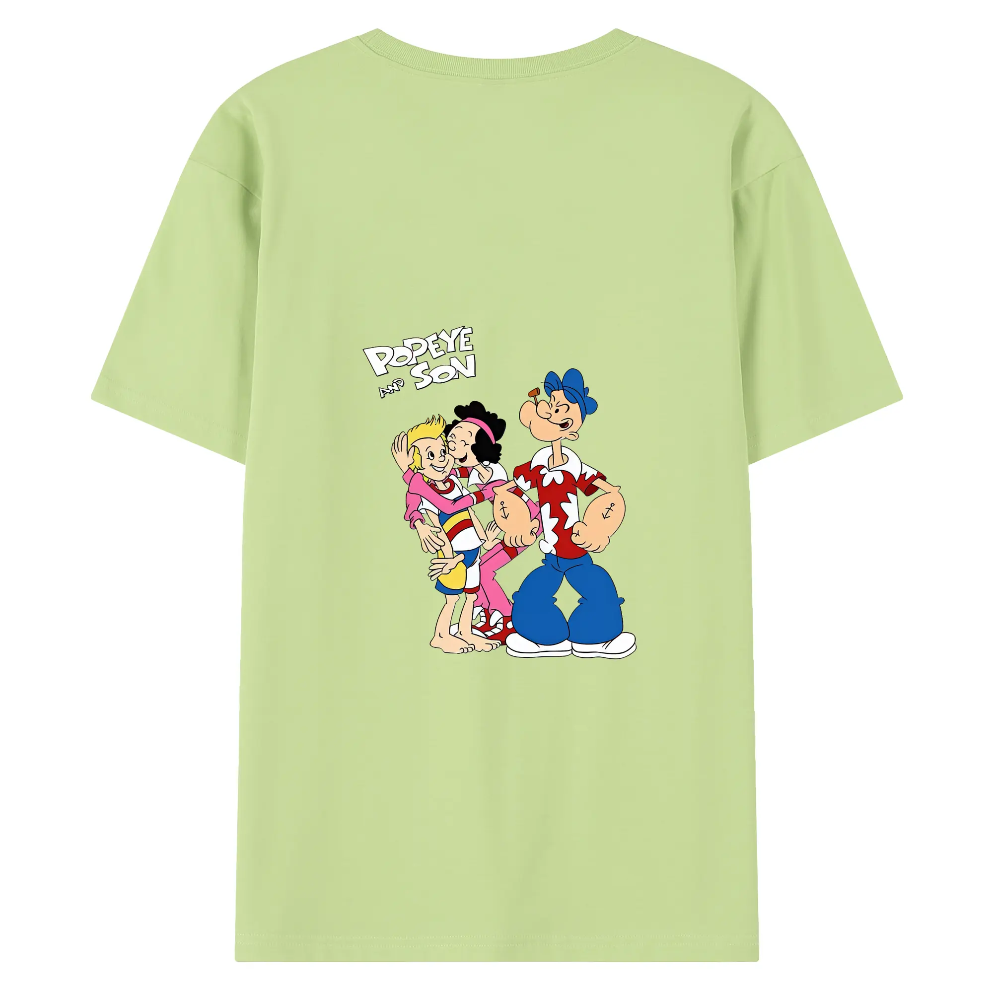 ポパイ グッズ ポパイ - 綿100% ヴィンテージ風 半袖Tシャツ ・ 背面プリント ・ 柔らか肌触り ・ 通気性 快適 ・ スポーツ カジュアル 外出用