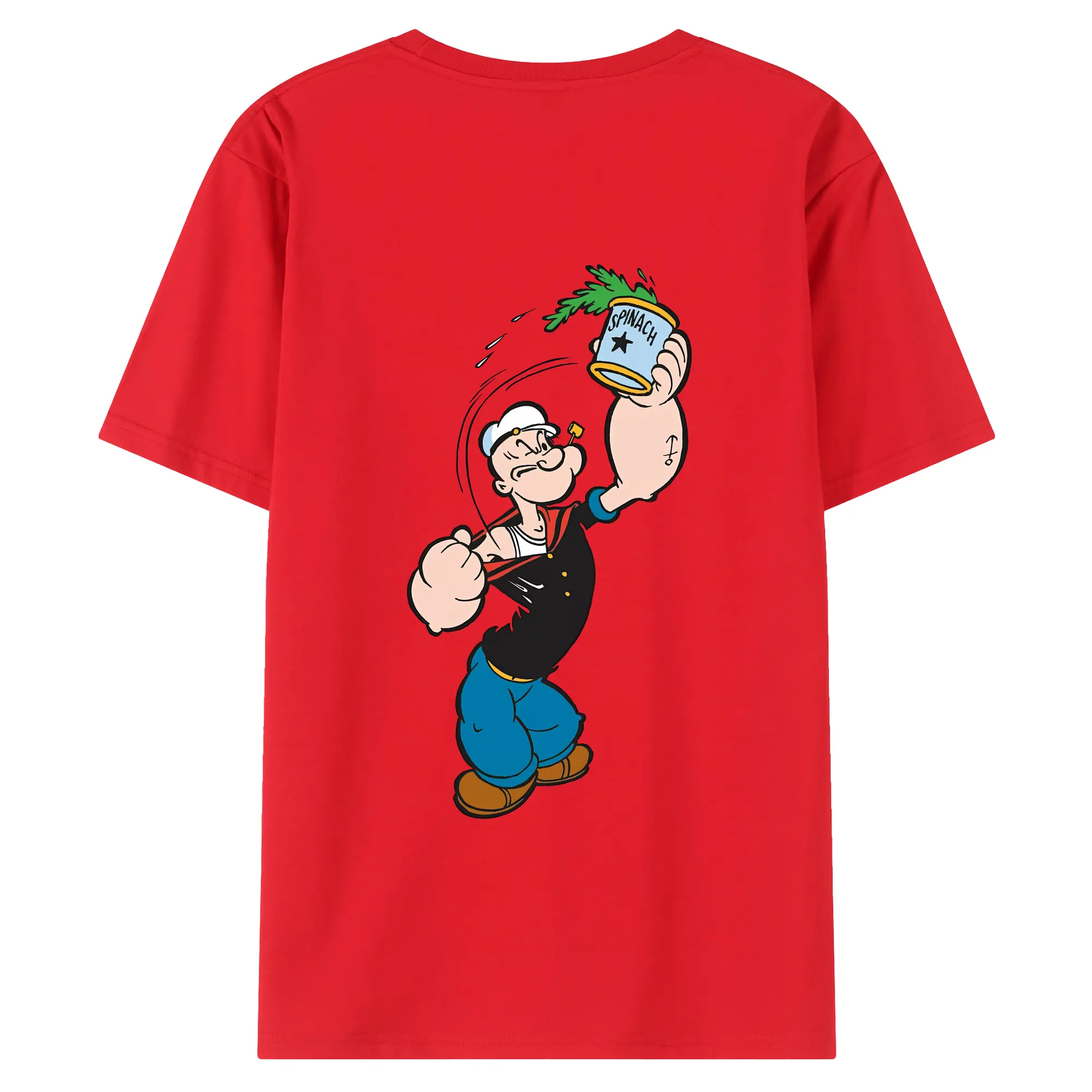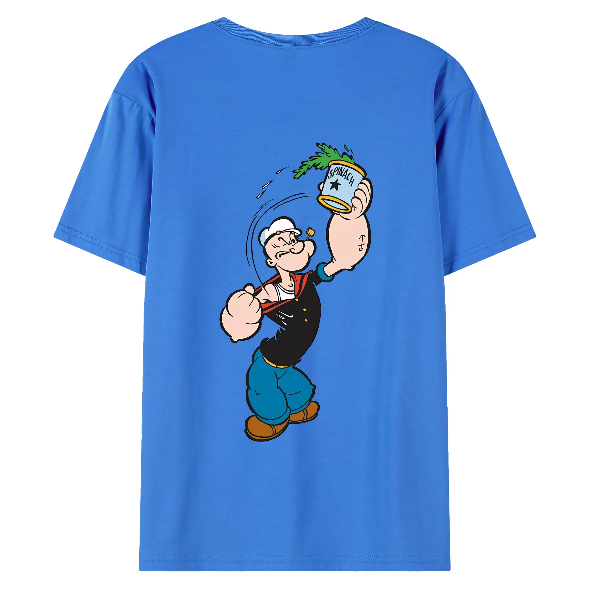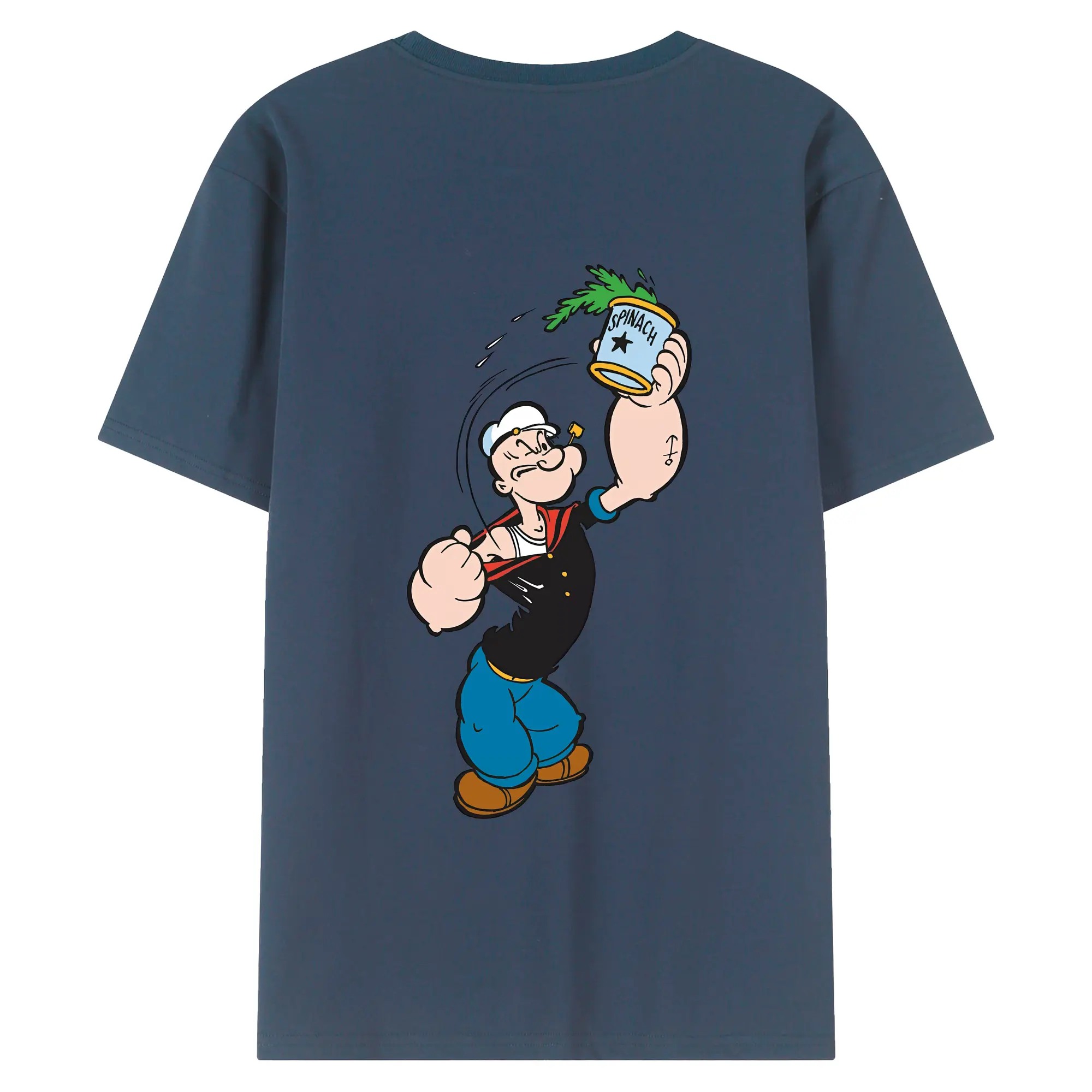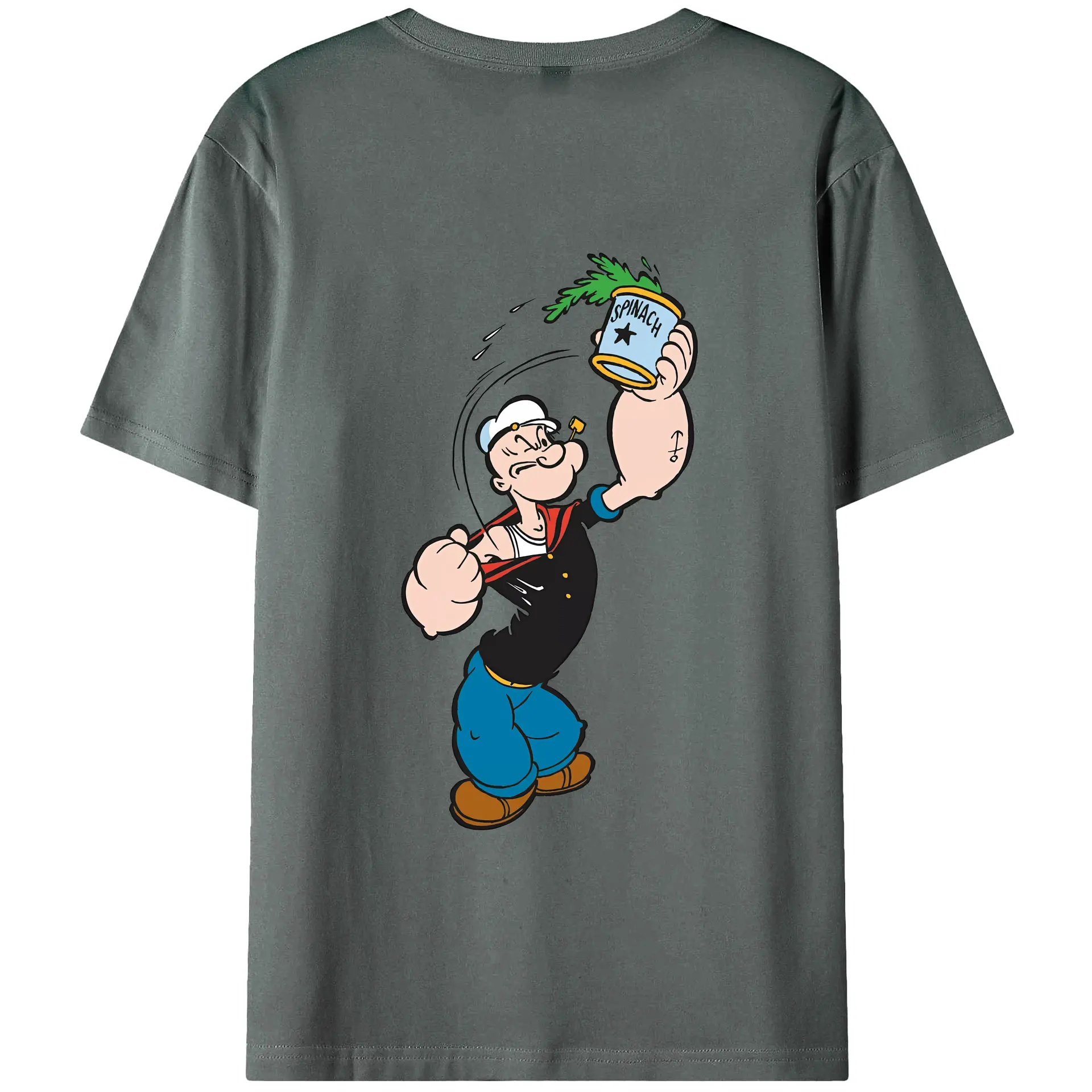 ポパイ グッズ ポパイ - 綿100% ヴィンテージ風 半袖Tシャツ ・ 背面プリント ・ 柔らか肌触り ・ 通気性 快適 ・ スポーツ カジュアル 外出用