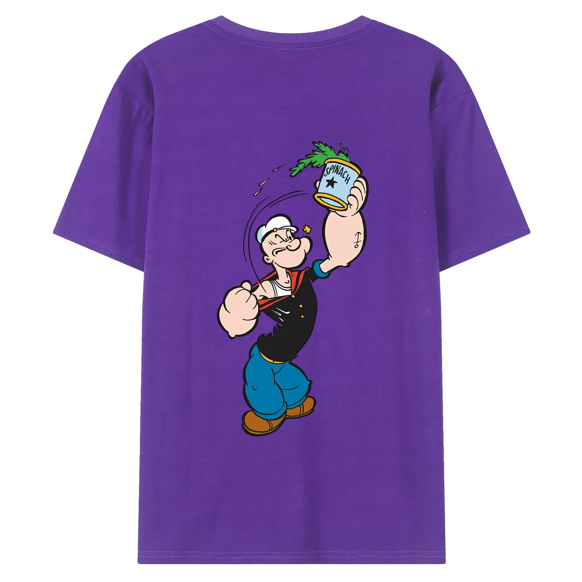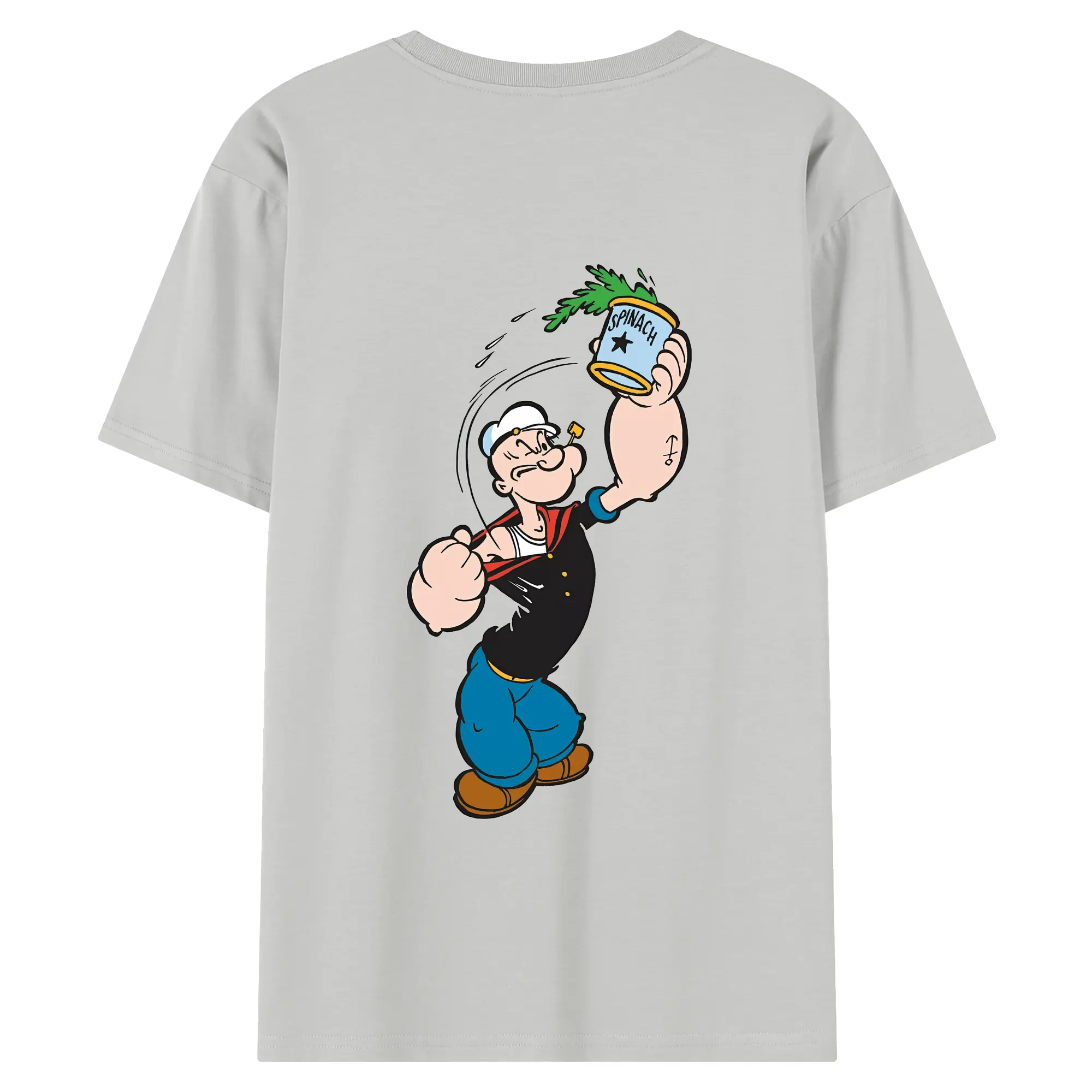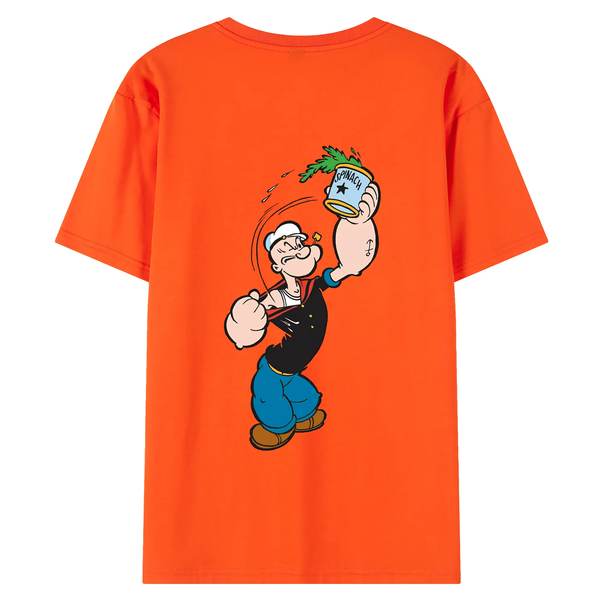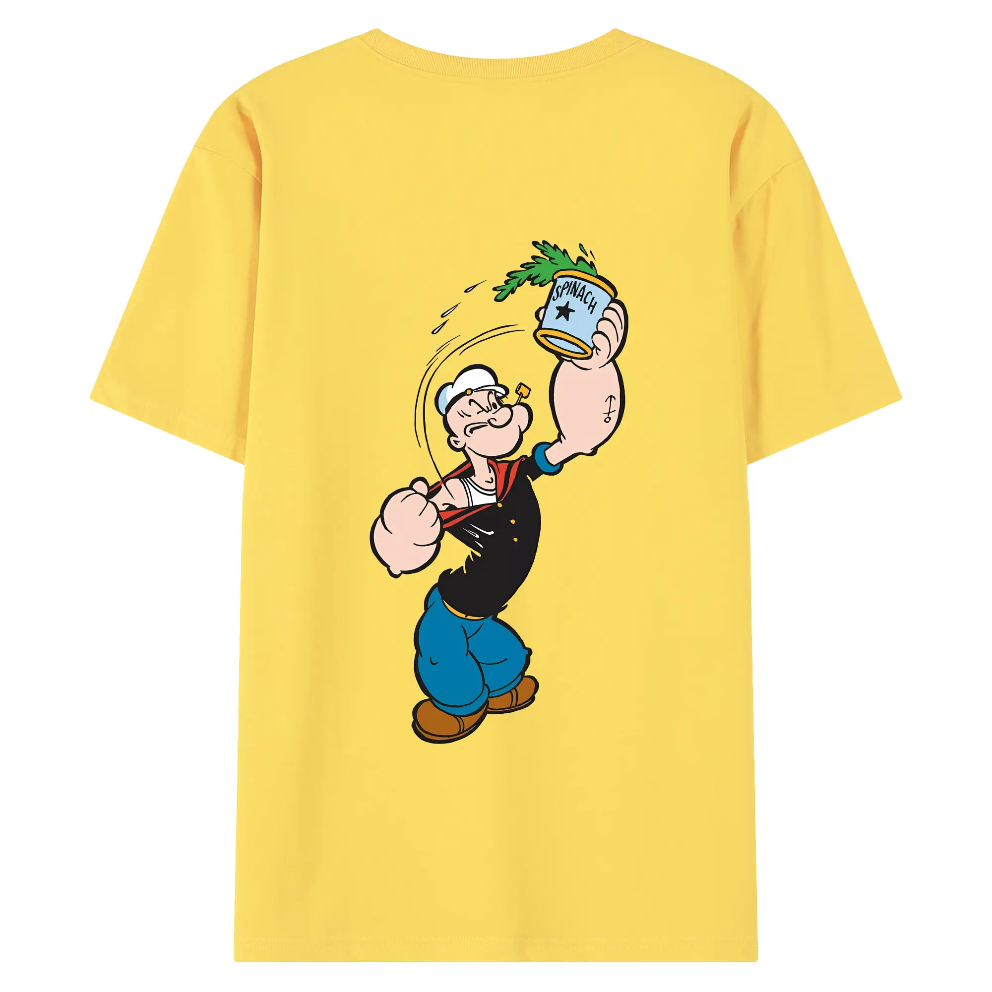 ポパイ グッズ ポパイ - 綿100% ヴィンテージ風 半袖Tシャツ ・ 背面プリント ・ 柔らか肌触り ・ 通気性 快適 ・ スポーツ カジュアル 外出用
