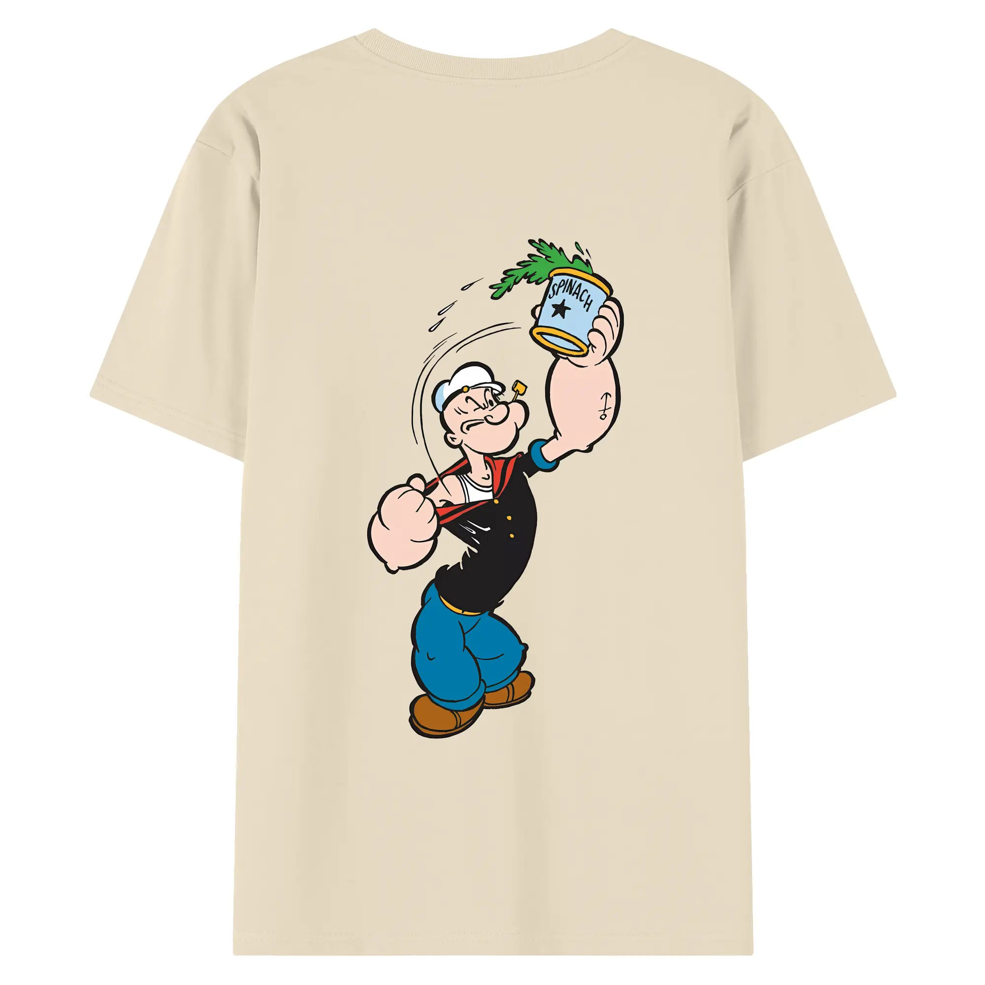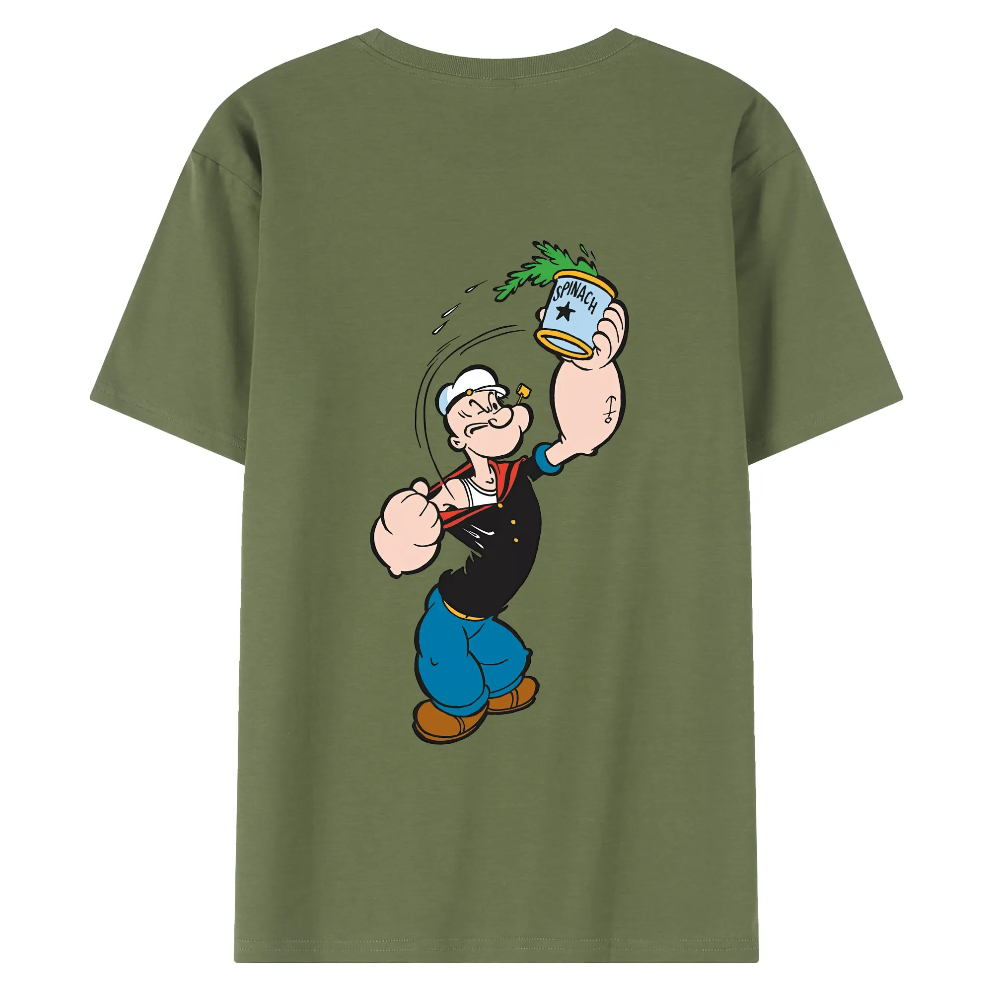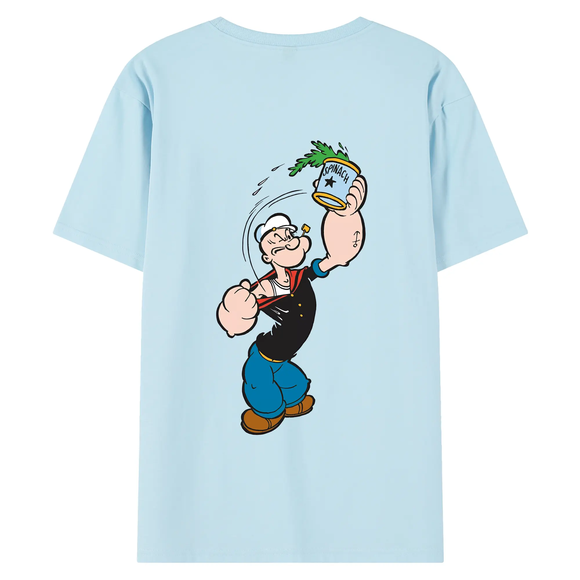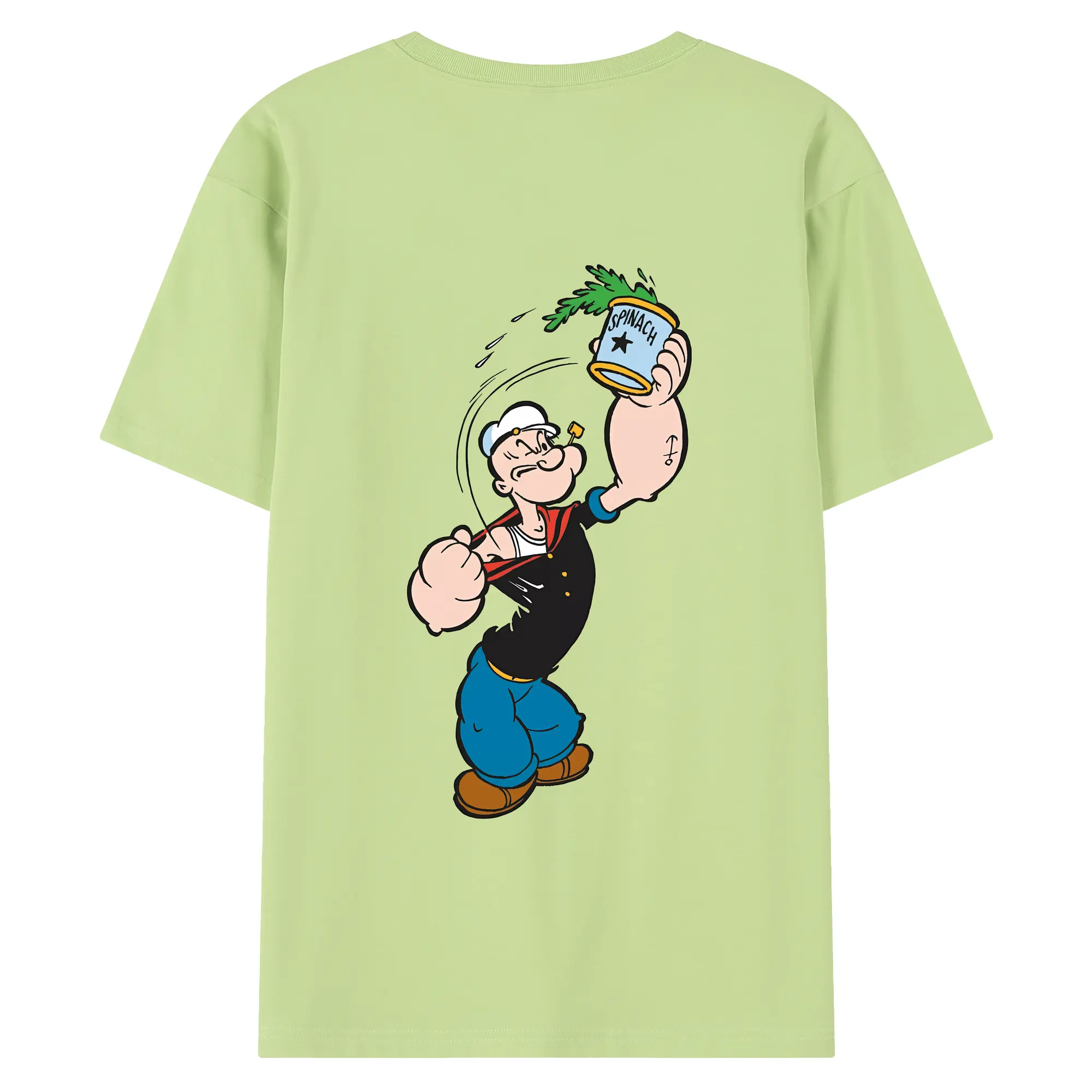 ポパイ グッズ ポパイ - 綿100% ヴィンテージ風 半袖Tシャツ ・ 背面プリント ・ 柔らか肌触り ・ 通気性 快適 ・ スポーツ カジュアル 外出用