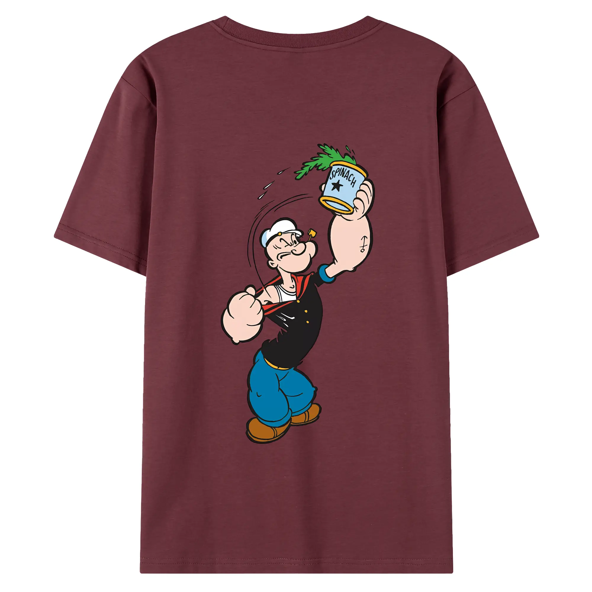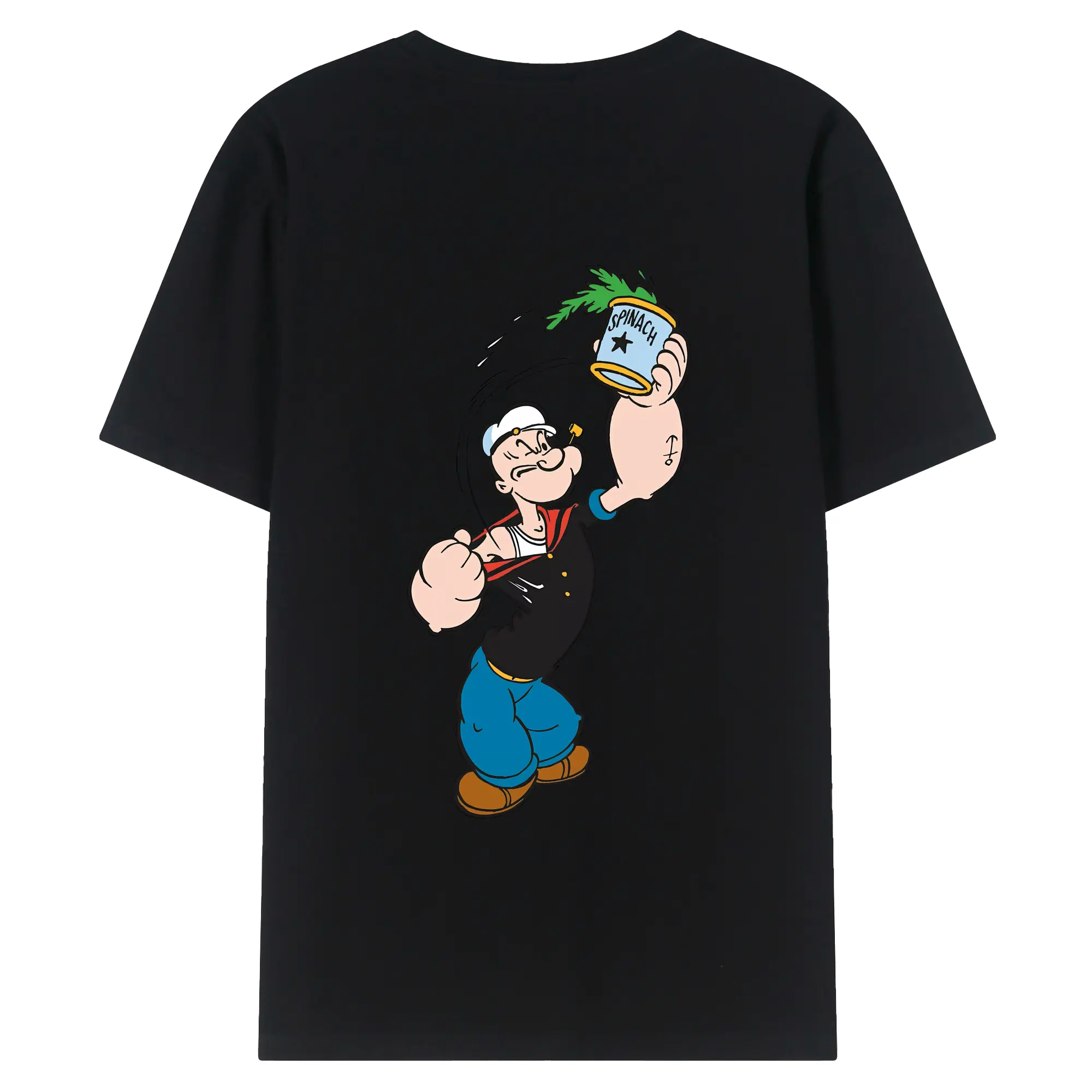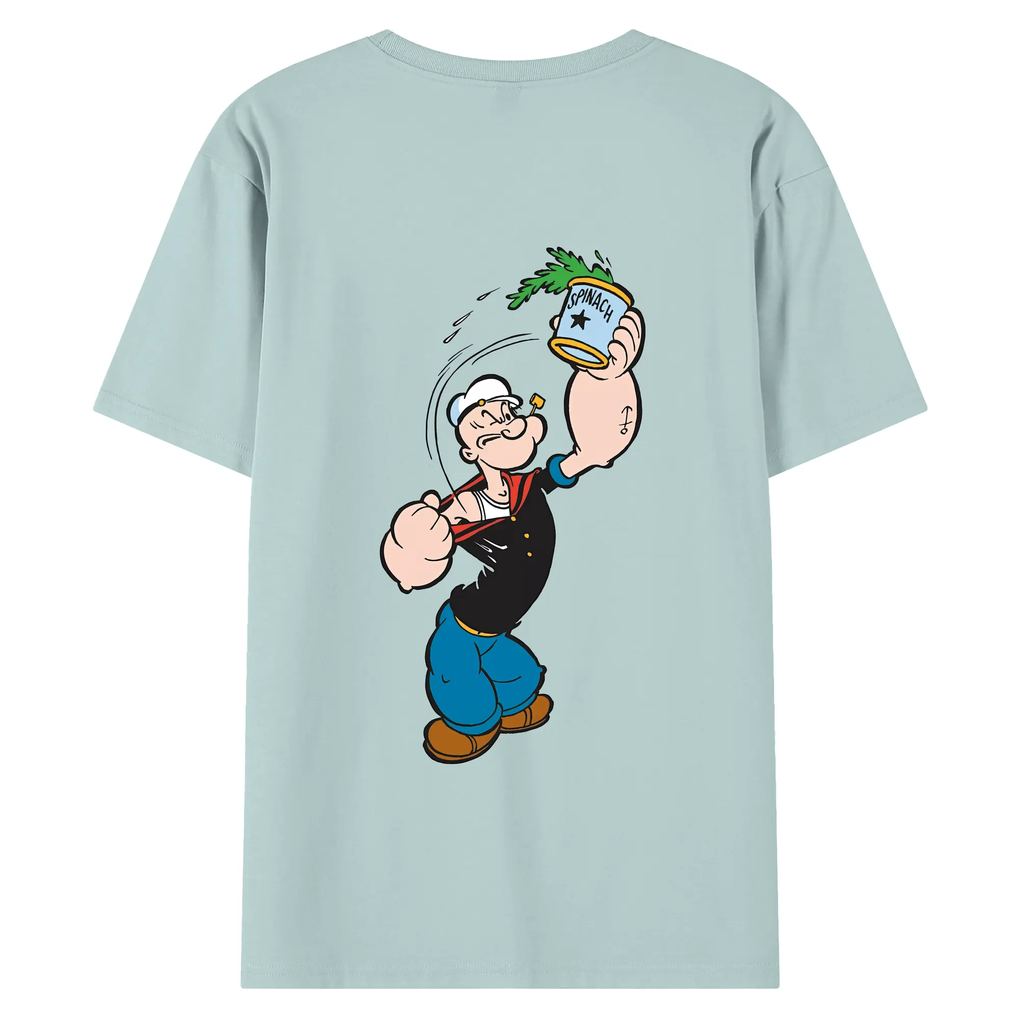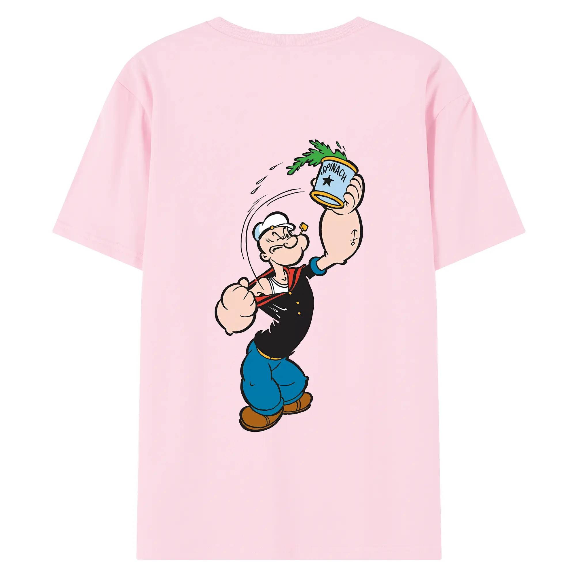 ポパイ グッズ ポパイ - 綿100% ヴィンテージ風 半袖Tシャツ ・ 背面プリント ・ 柔らか肌触り ・ 通気性 快適 ・ スポーツ カジュアル 外出用