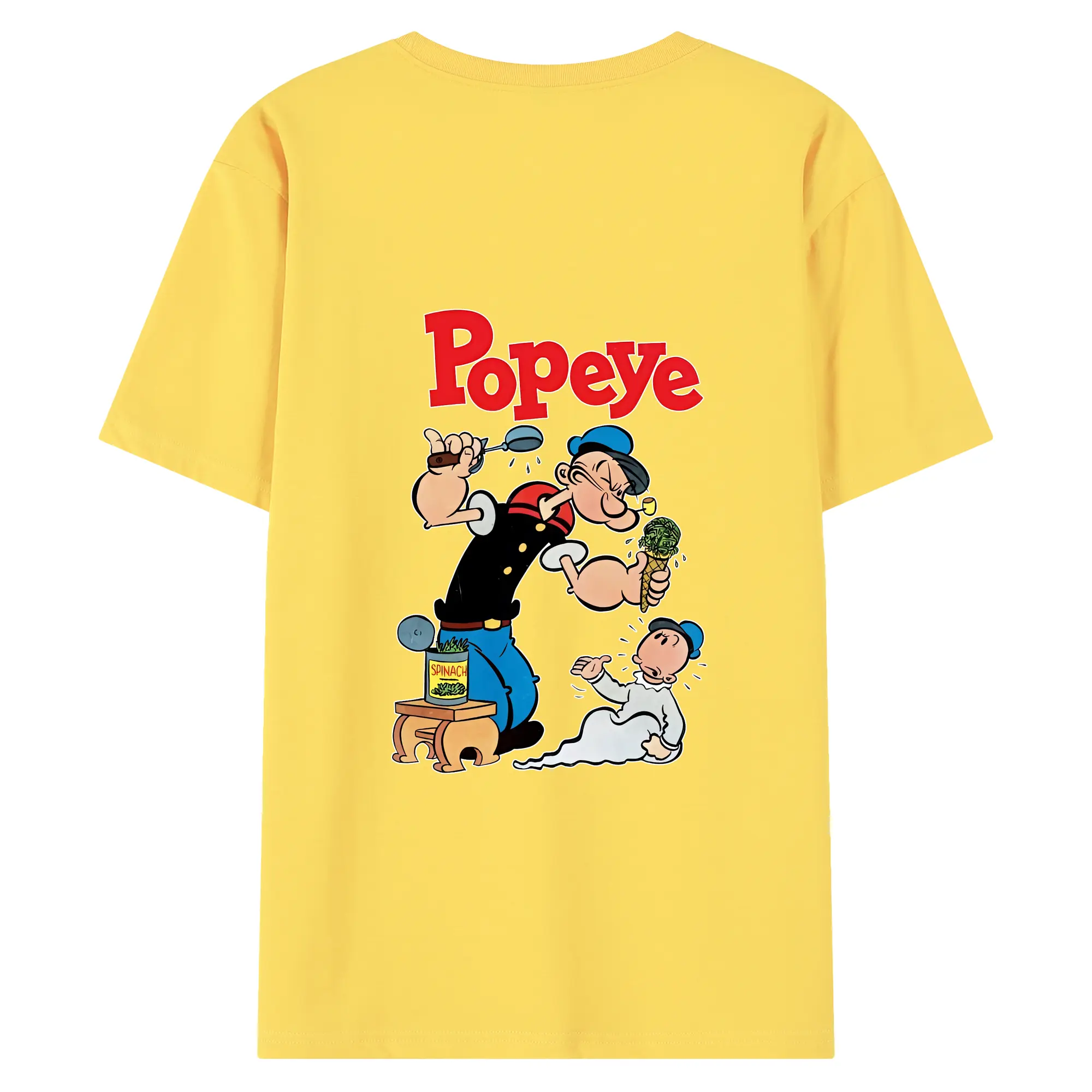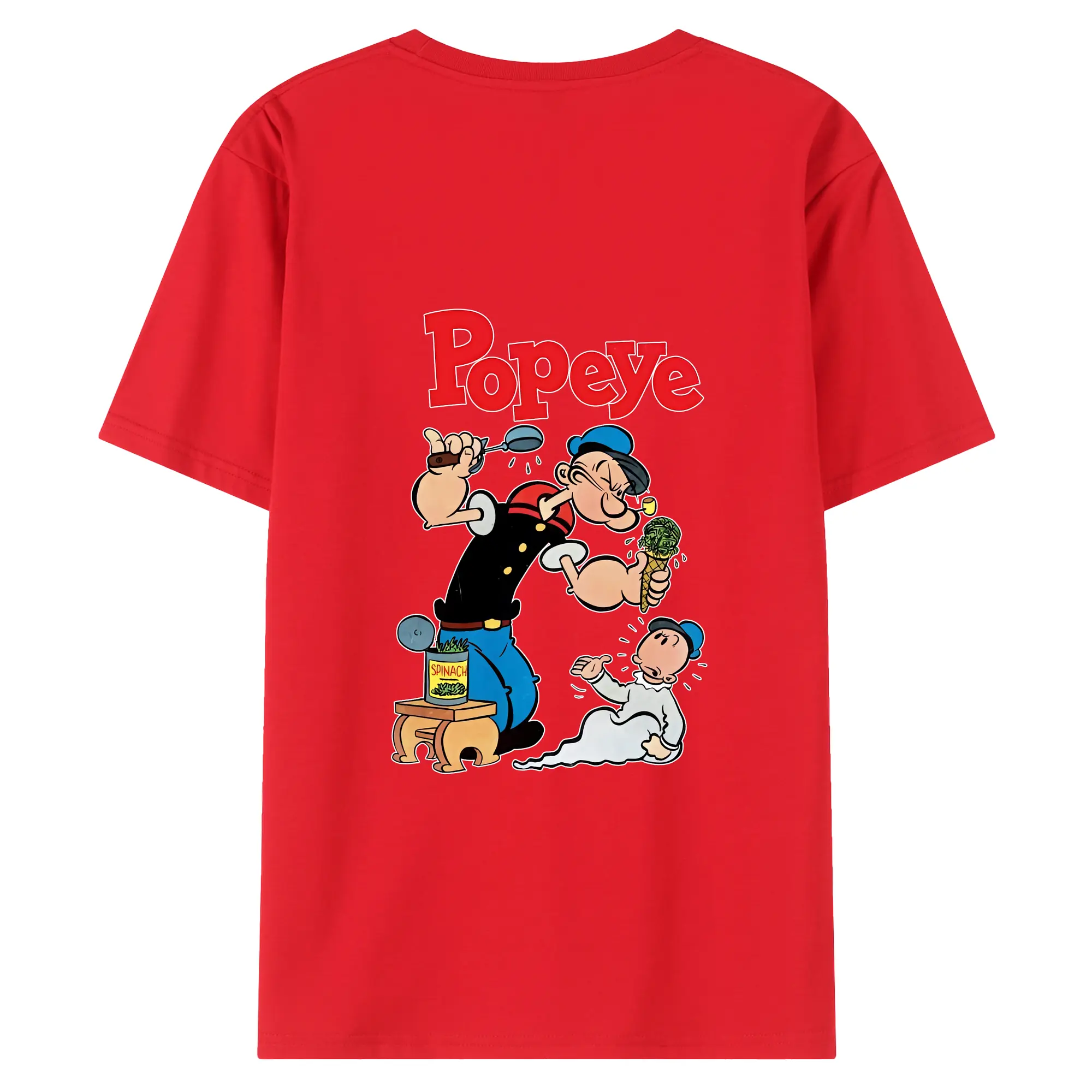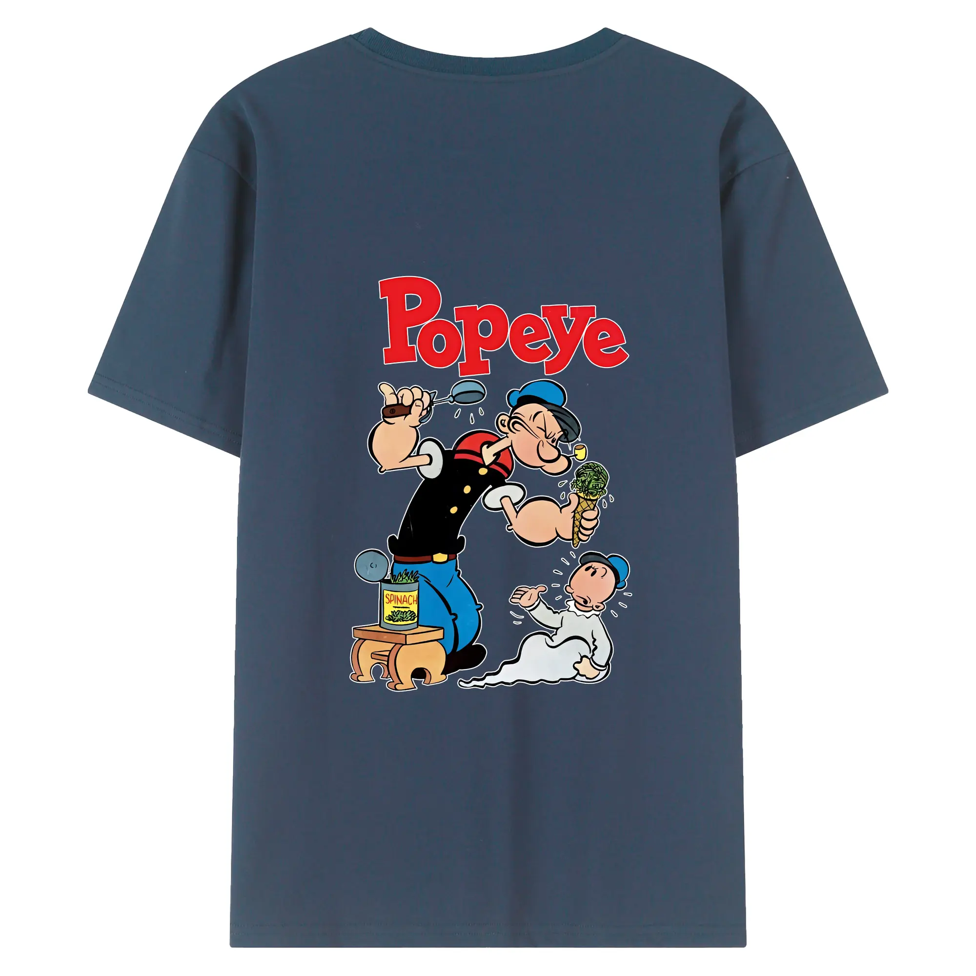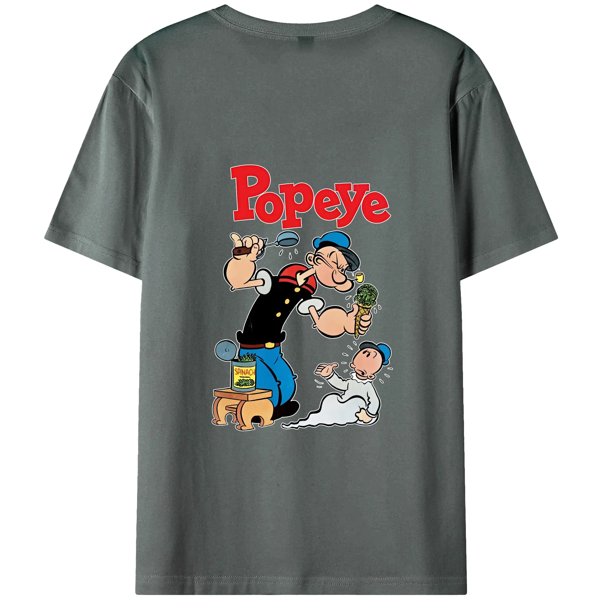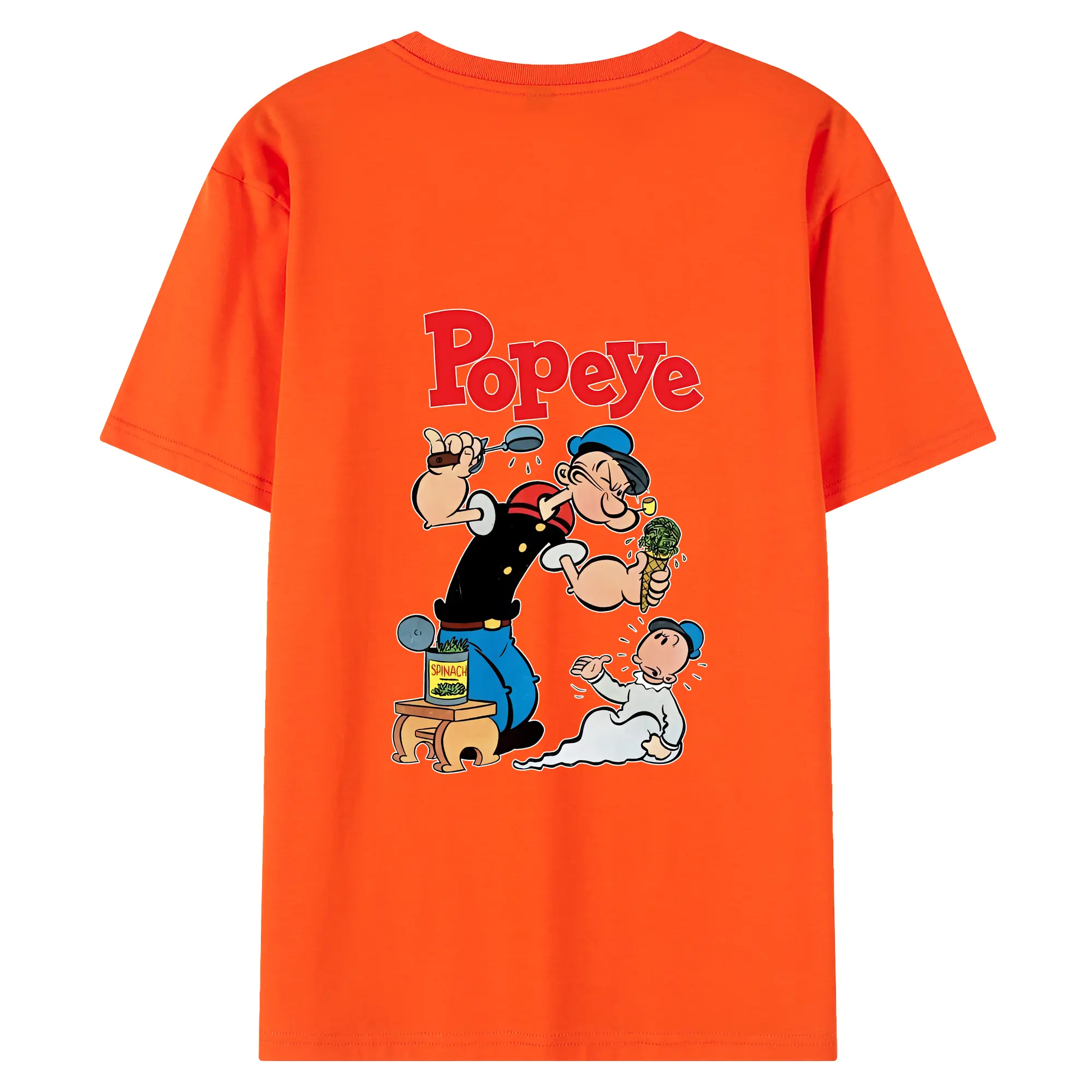 ポパイ グッズ ポパイ - 綿100% ヴィンテージ風 半袖Tシャツ ・ 背面プリント ・ 柔らか肌触り ・ 通気性 快適 ・ スポーツ カジュアル 外出用