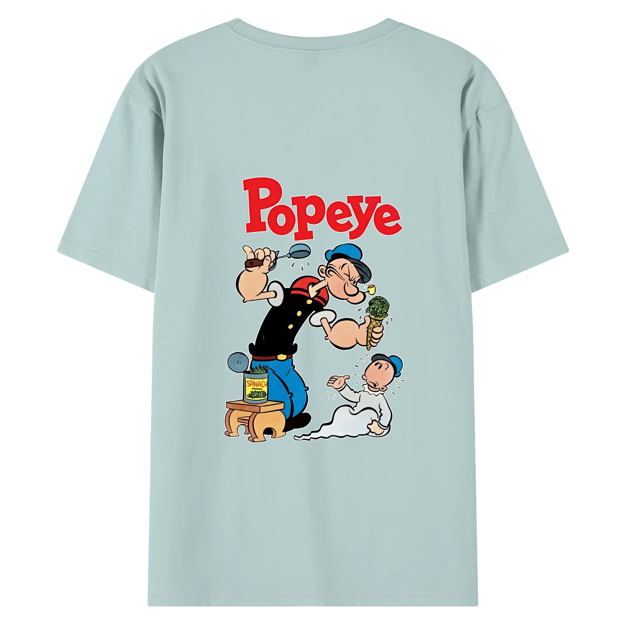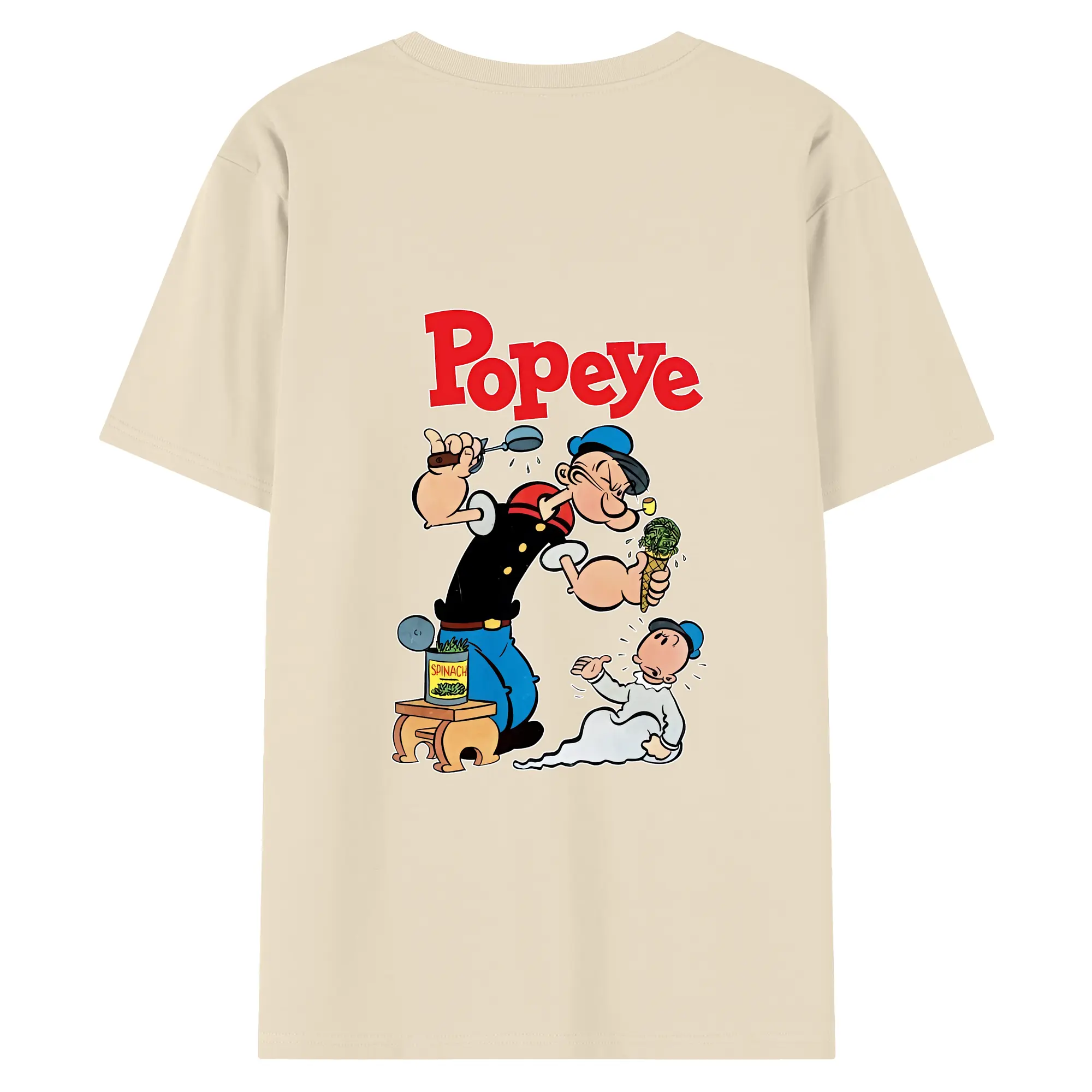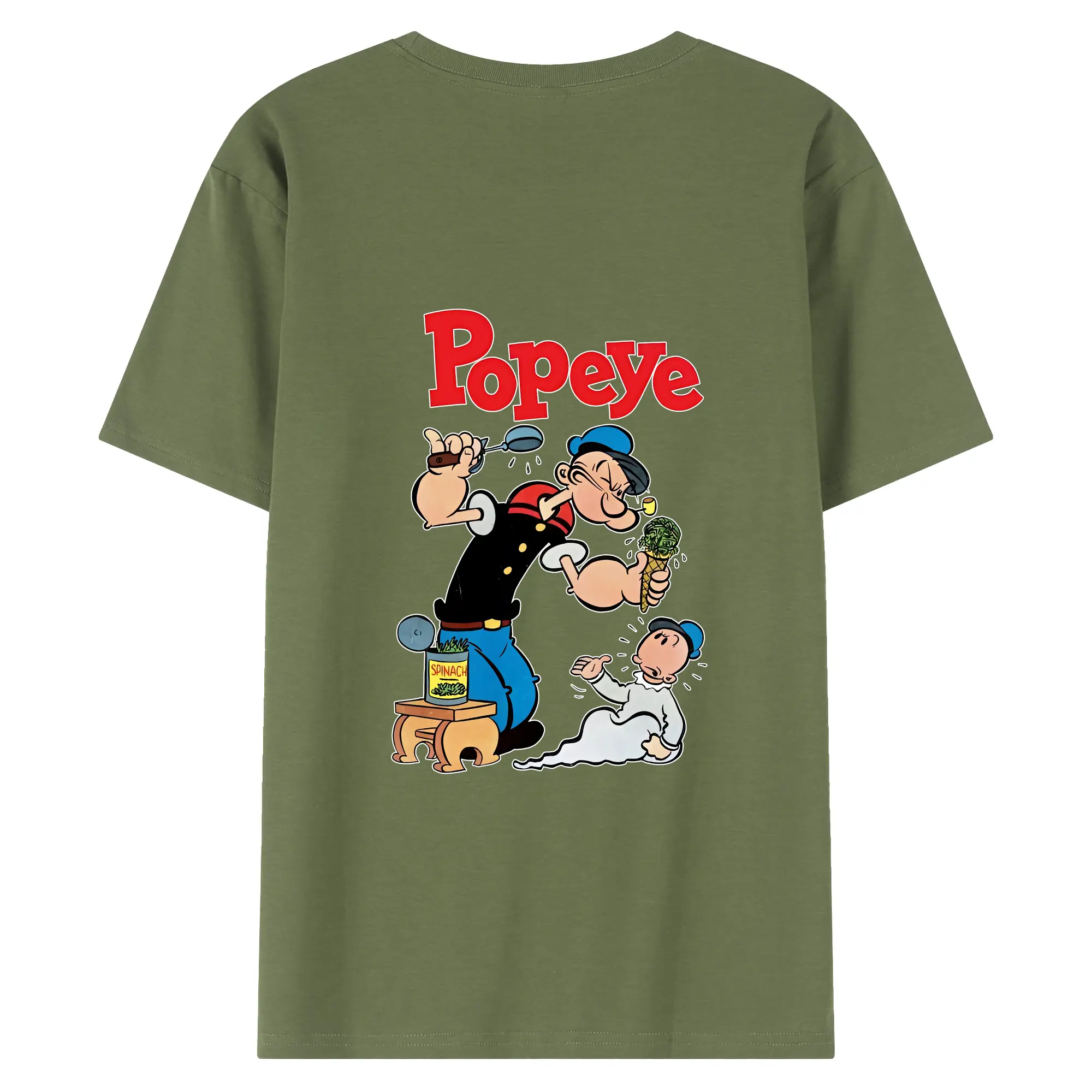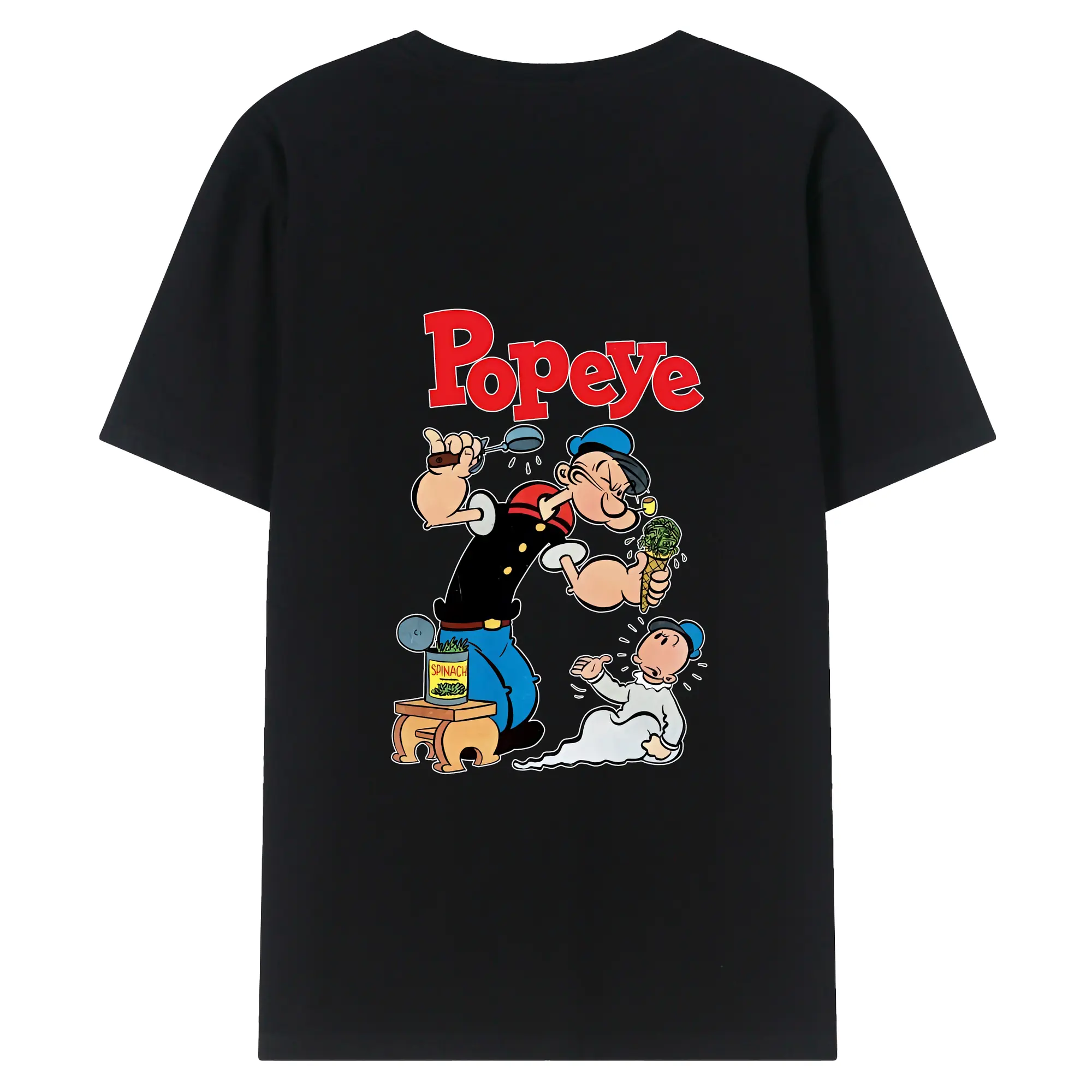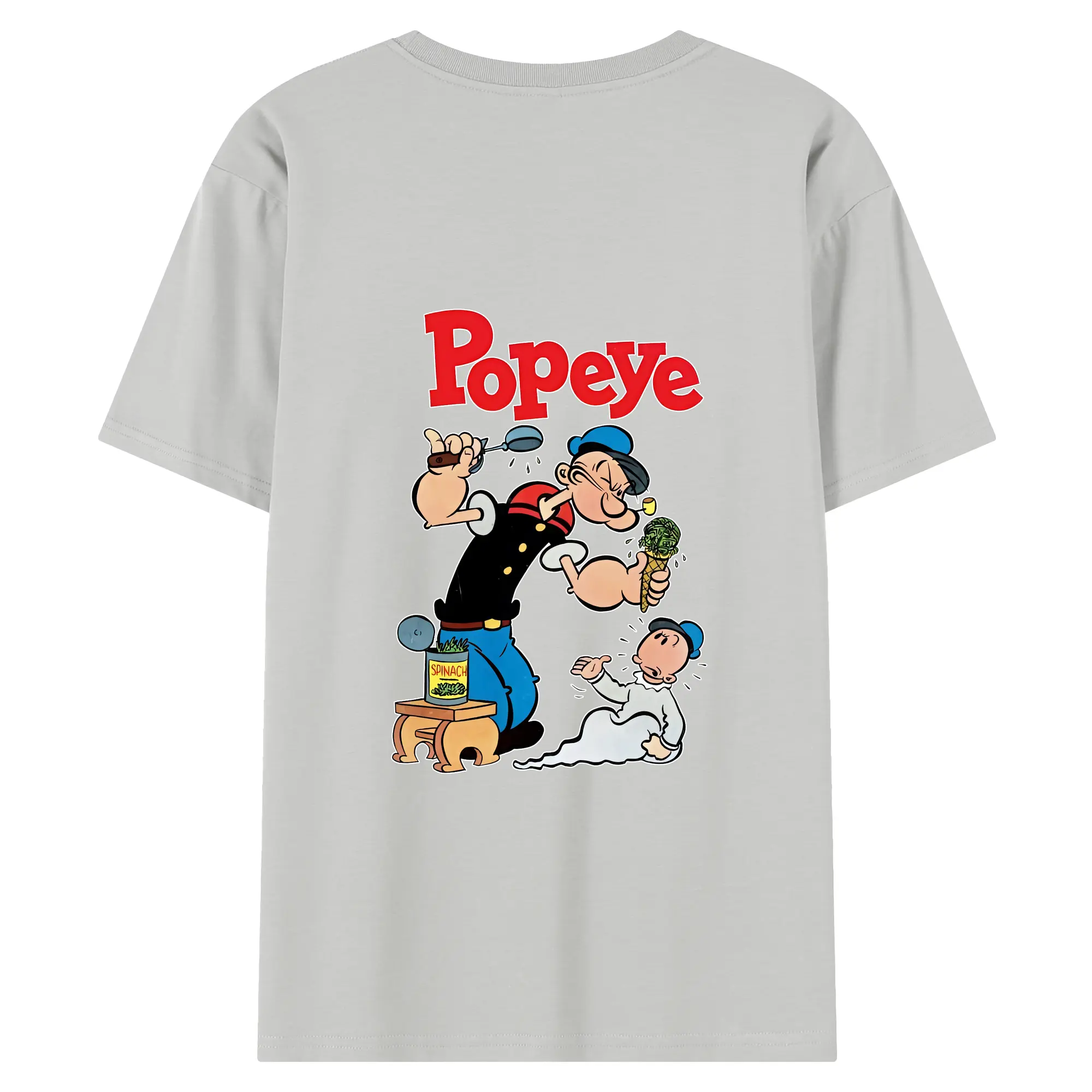 ポパイ グッズ ポパイ - 綿100% ヴィンテージ風 半袖Tシャツ ・ 背面プリント ・ 柔らか肌触り ・ 通気性 快適 ・ スポーツ カジュアル 外出用