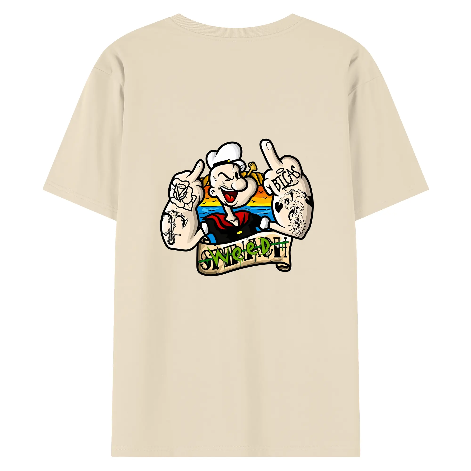 ポパイ グッズ ポパイ - 綿100% ヴィンテージ風 半袖Tシャツ ・ 背面プリント ・ 柔らか肌触り ・ 通気性 快適 ・ スポーツ カジュアル 外出用