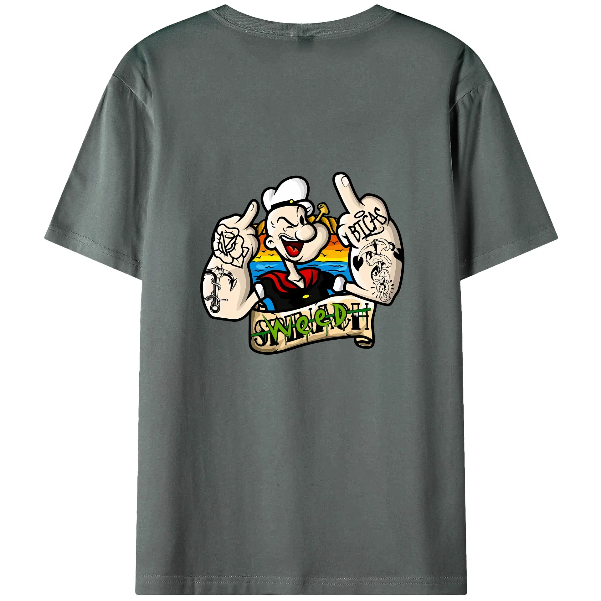 ポパイ グッズ ポパイ - 綿100% 半袖Tシャツ ・ フロントプリント ・ 快適 通気性 ・ 日常使い 散歩 スポーツ用