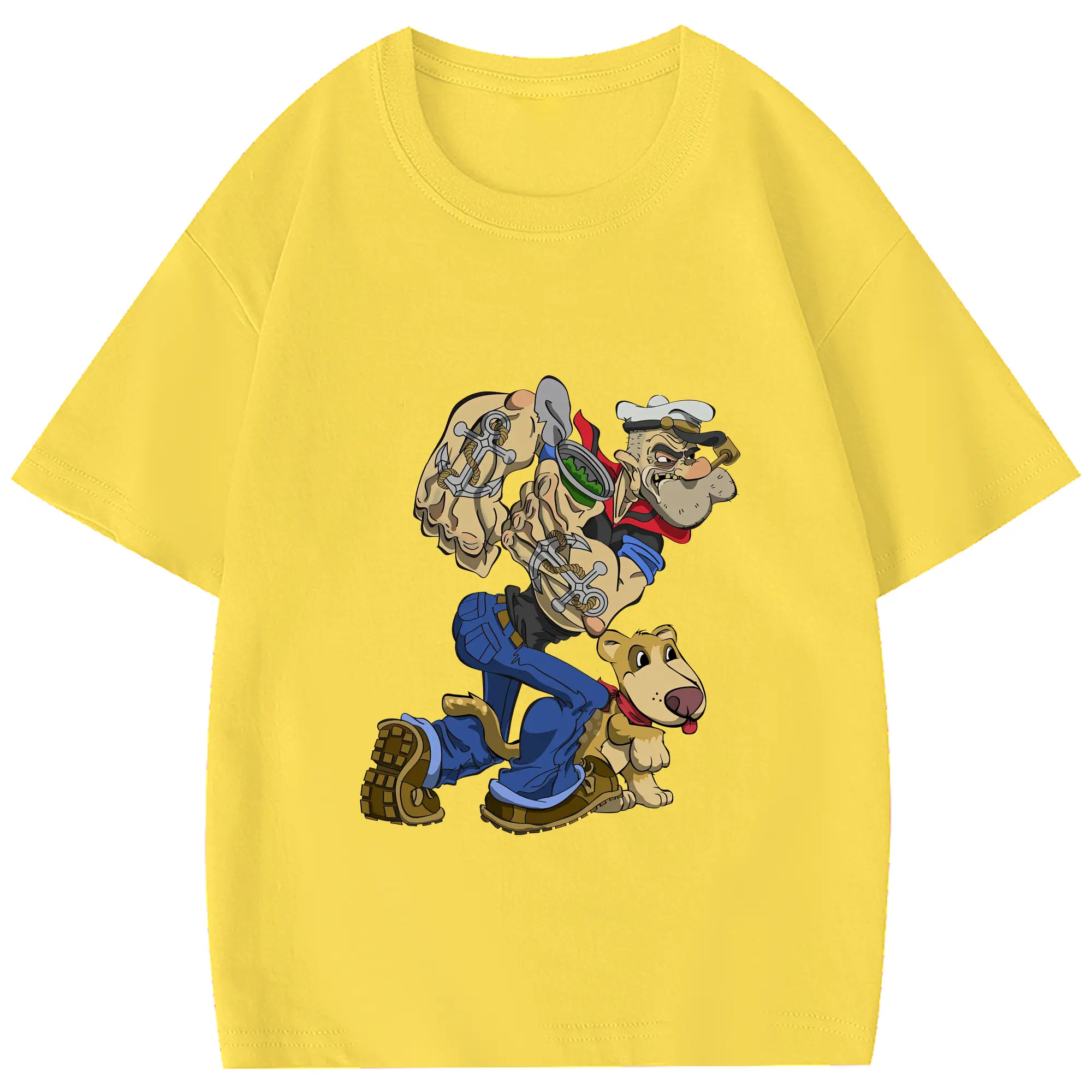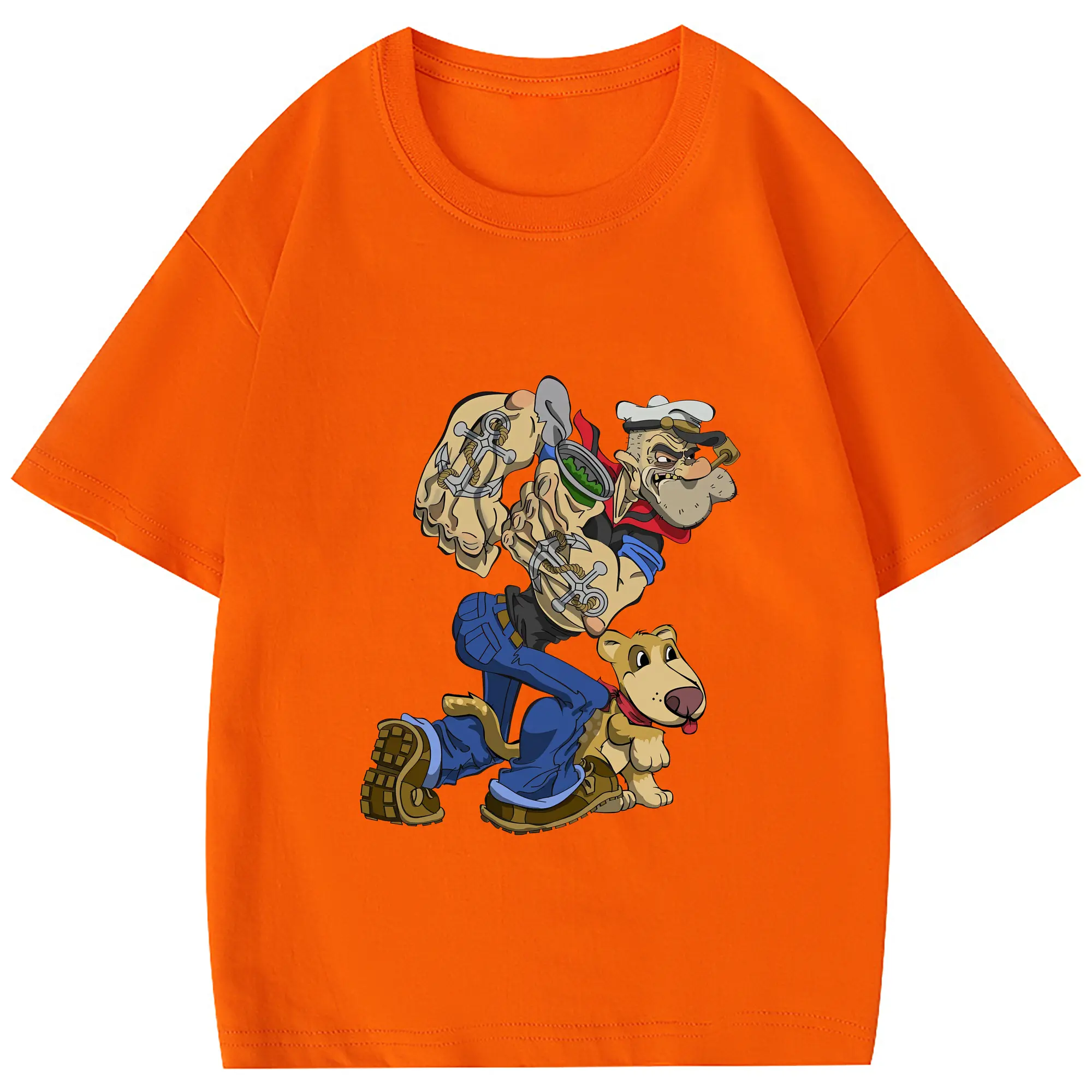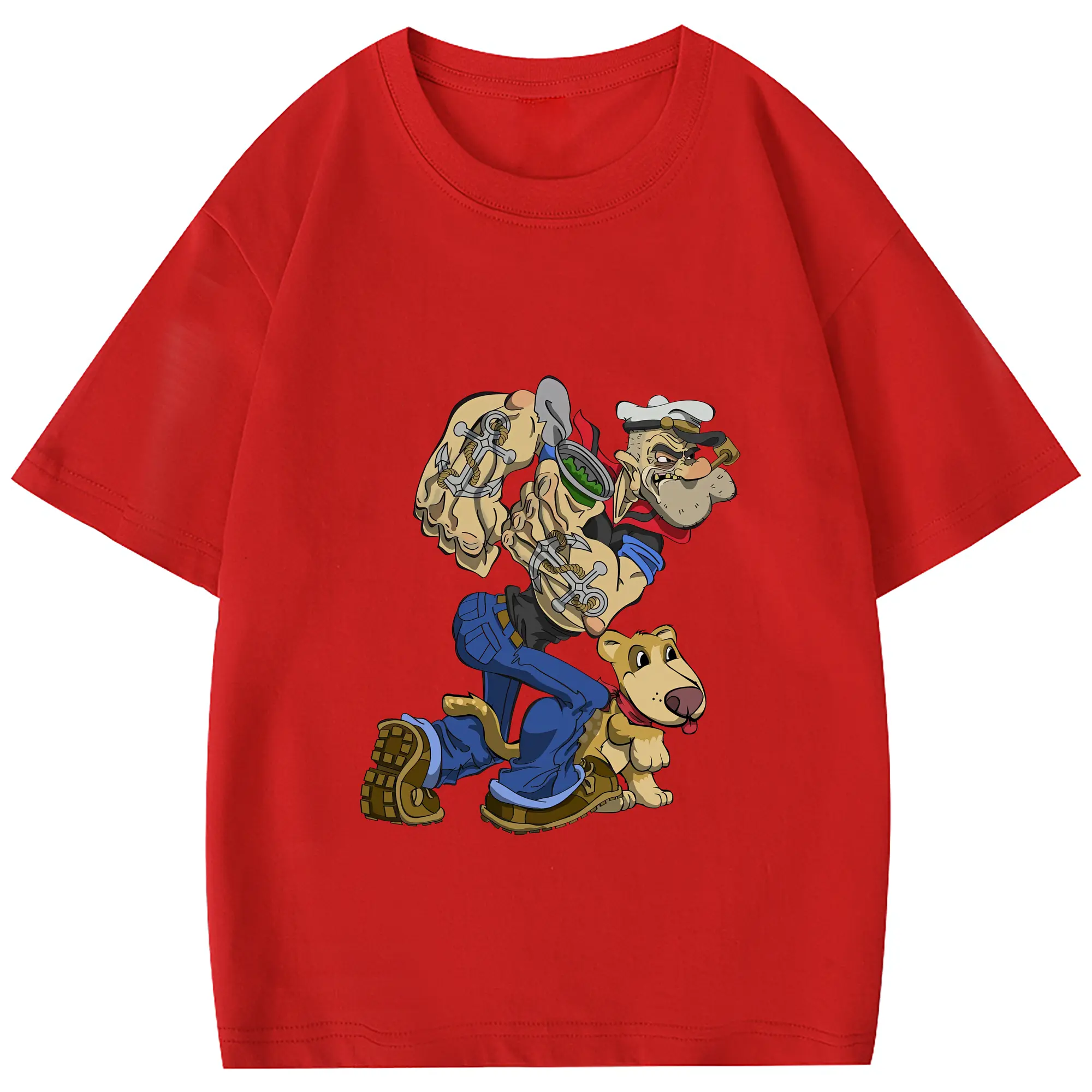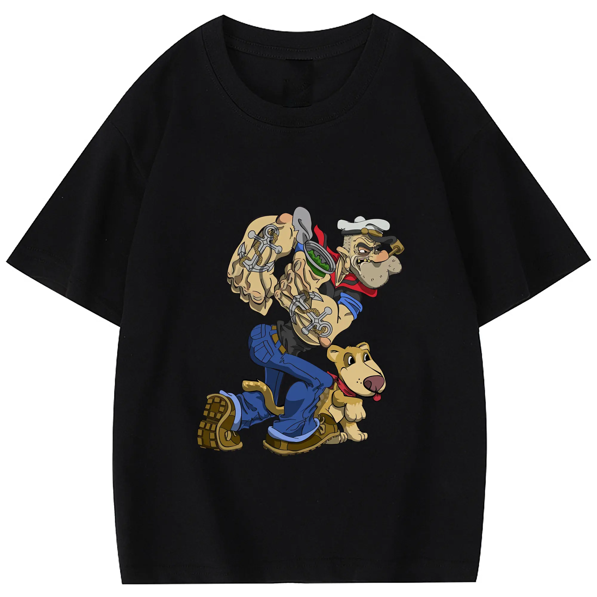 ポパイ グッズ ポパイ - 綿100% 半袖Tシャツ ・ バックプリント ・ 快適 通気性 ・ 日常使い 散歩 スポーツ用