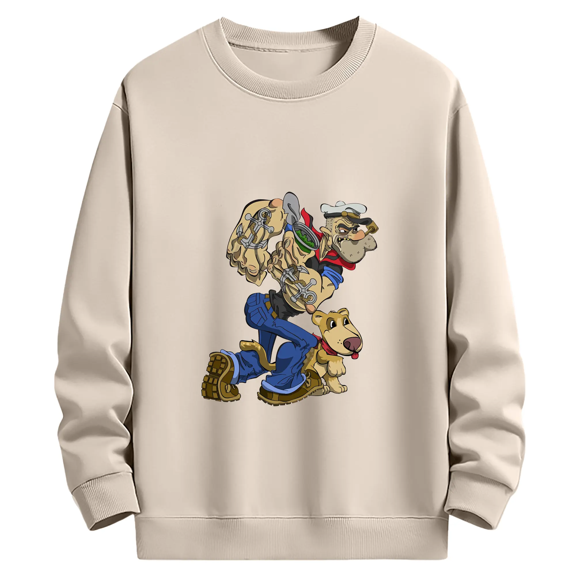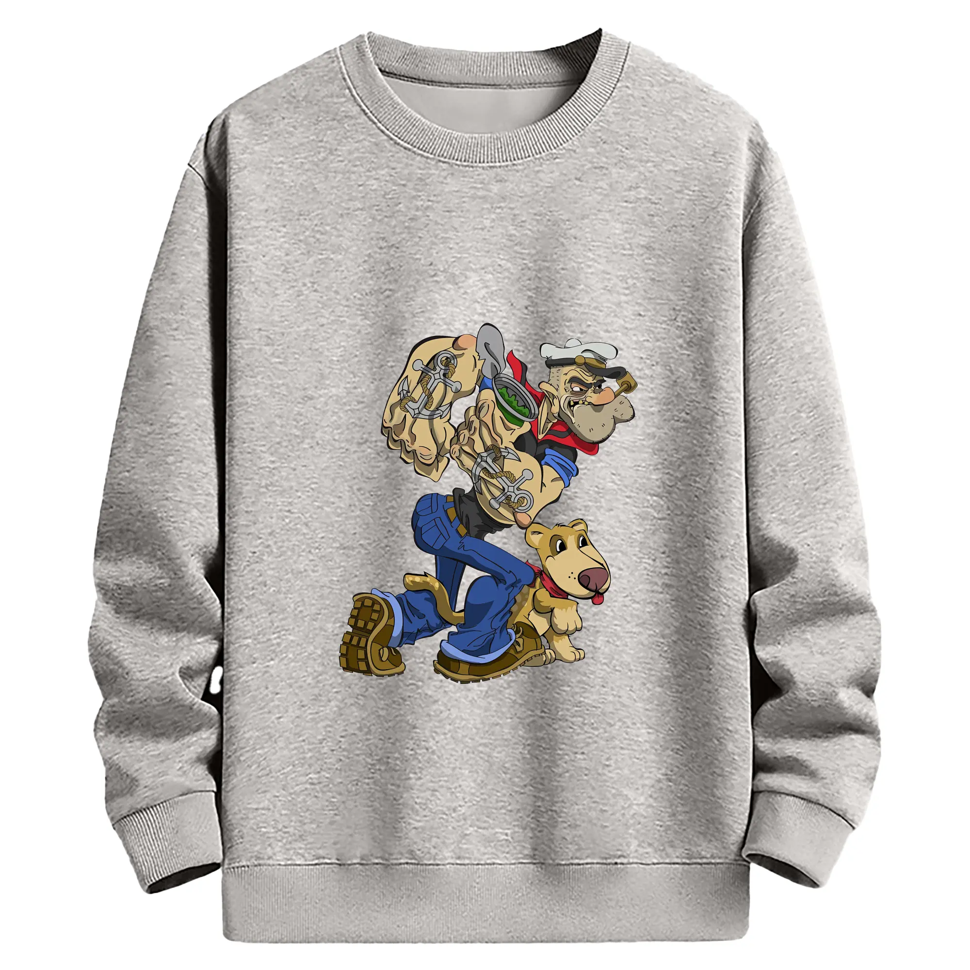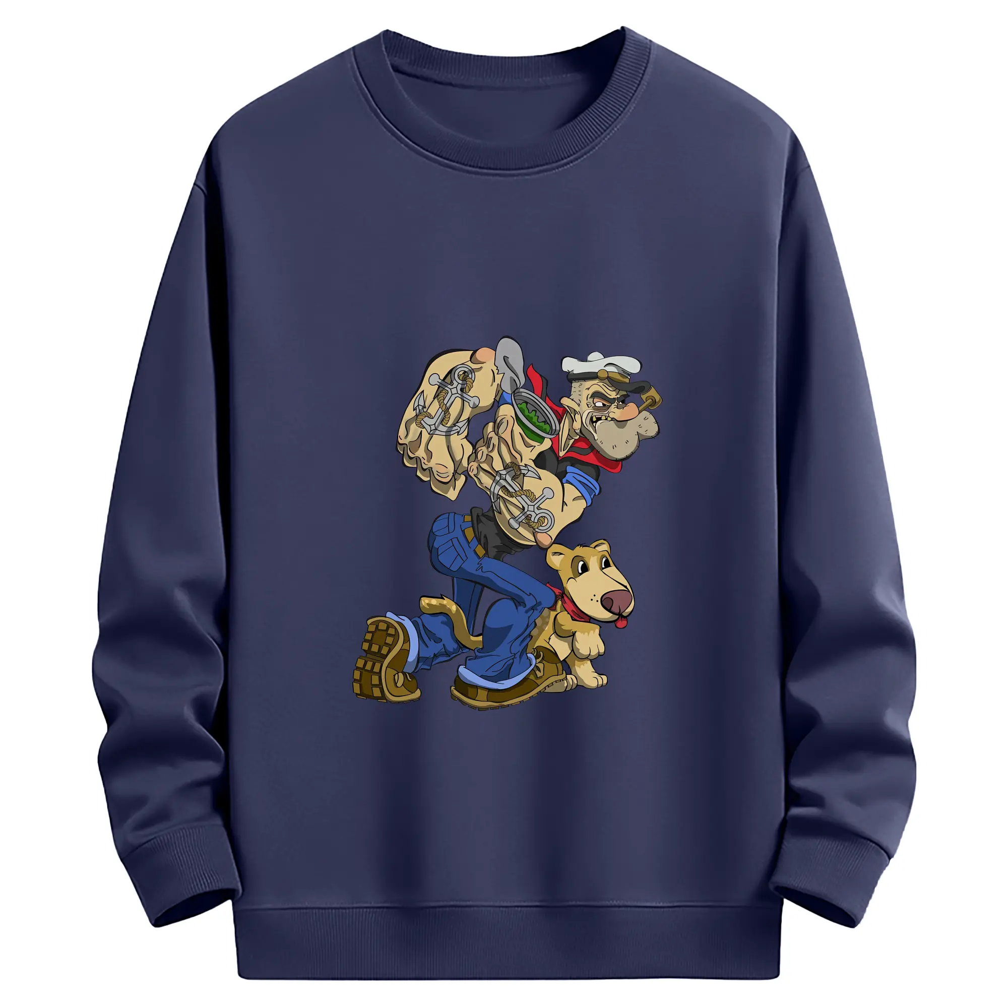 ポパイ グッズ ポパイ - 薄手 クルーネック スウェット 裏毛260g · ポリエステル 春秋向け カジュアル 男女兼用 · トレーナー デイリー スポーツ 散歩に最適