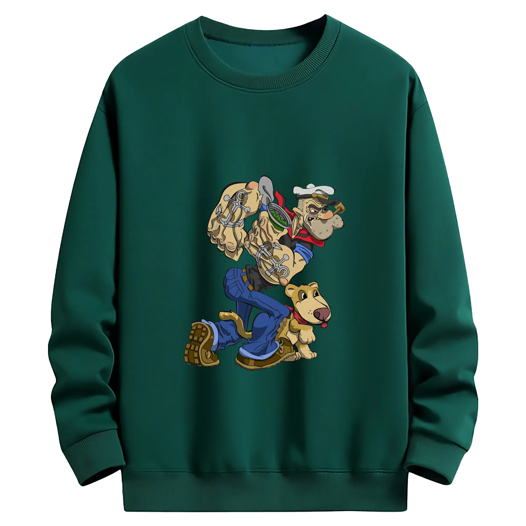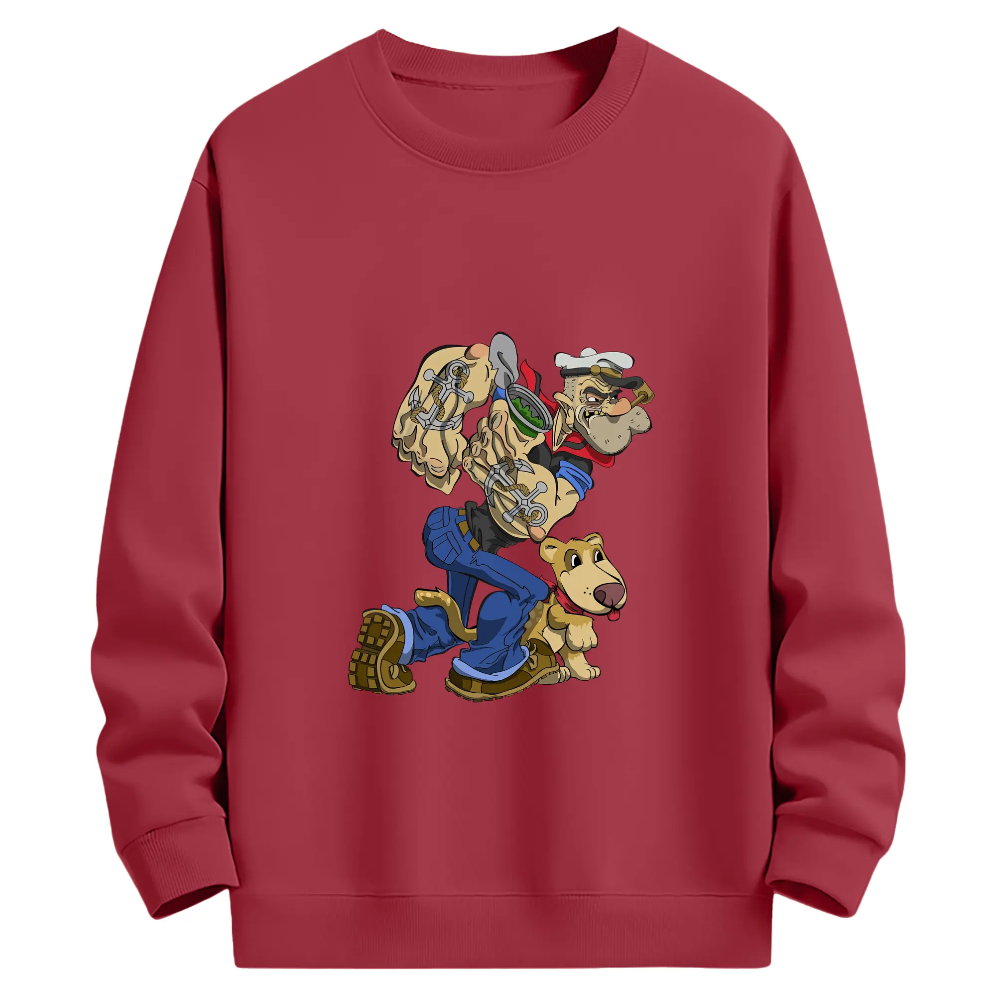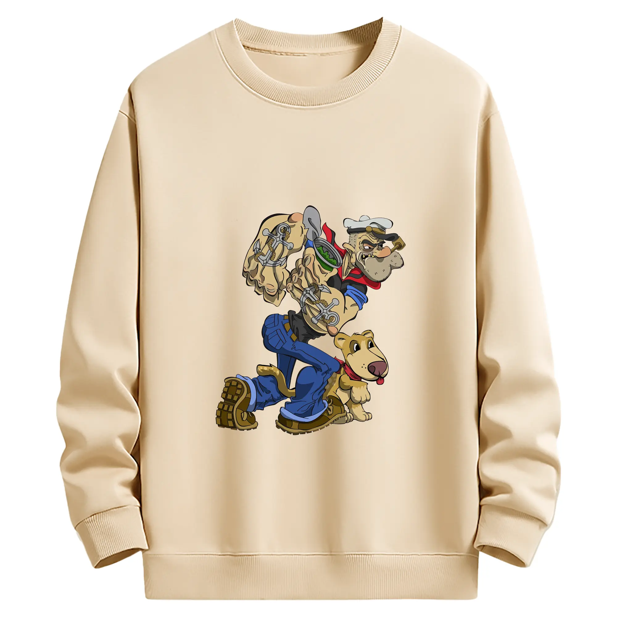 ポパイ グッズ ポパイ - 薄手 クルーネック スウェット 裏毛260g · ポリエステル 春秋向け カジュアル 男女兼用 · トレーナー デイリー スポーツ 散歩に最適