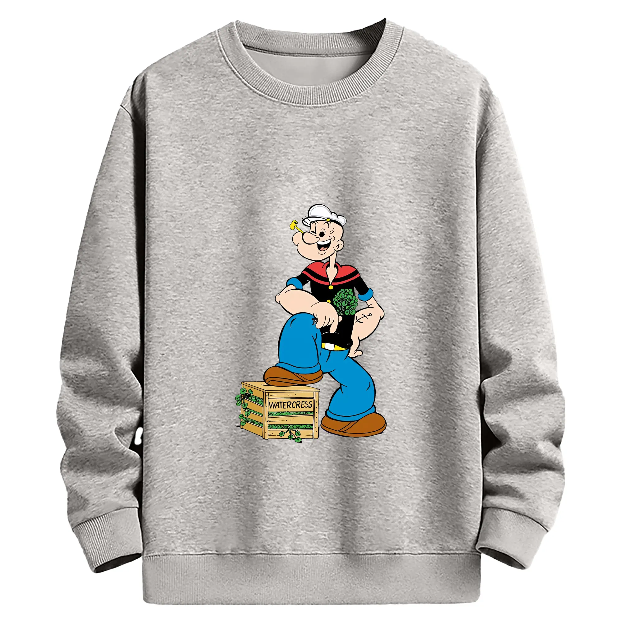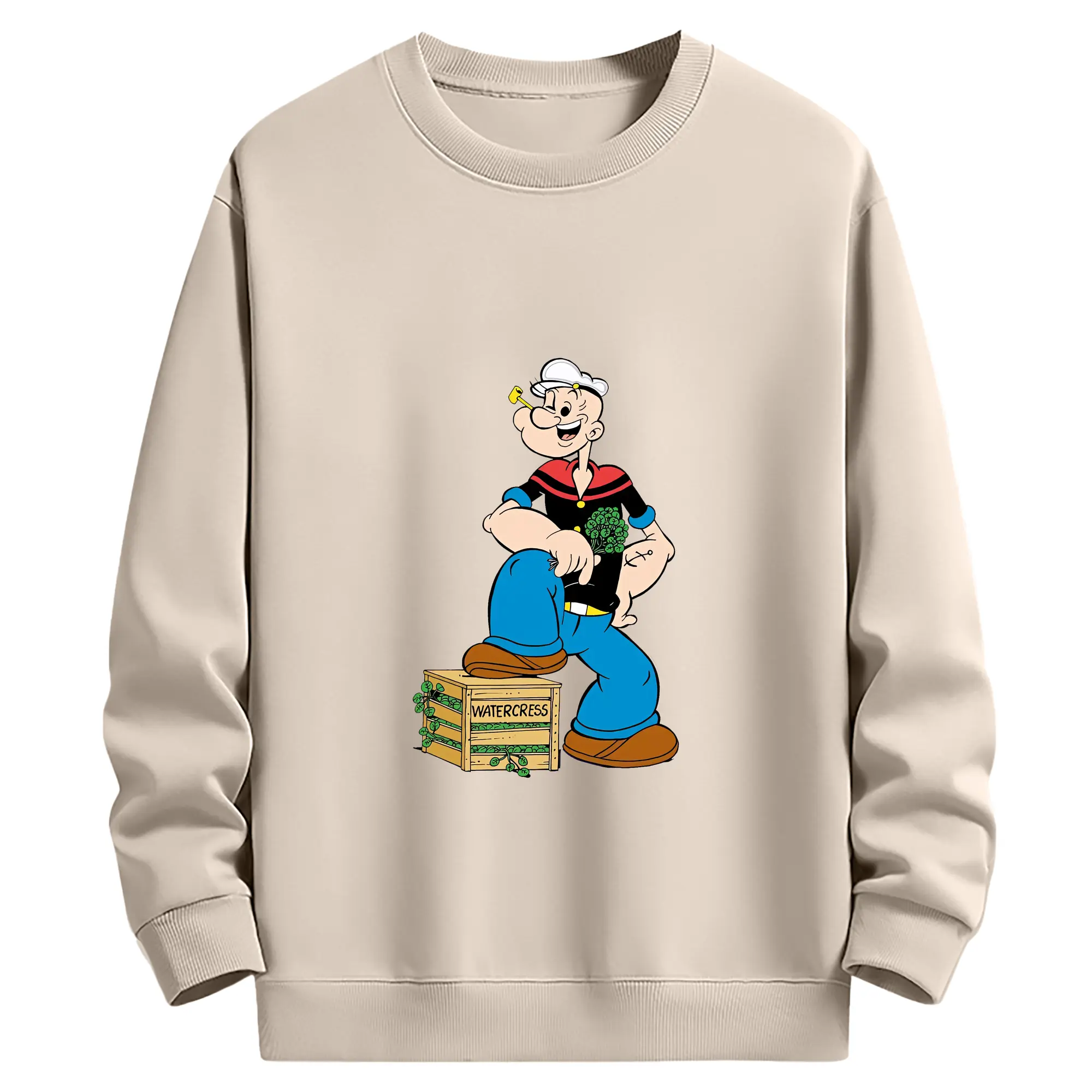 ポパイ グッズ ポパイ - 薄手 クルーネック スウェット 裏毛260g · ポリエステル 春秋向け カジュアル 男女兼用 · トレーナー デイリー スポーツ 散歩に最適