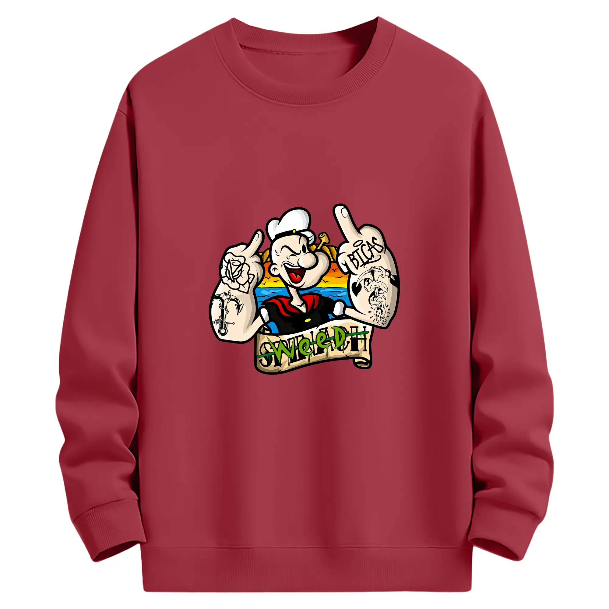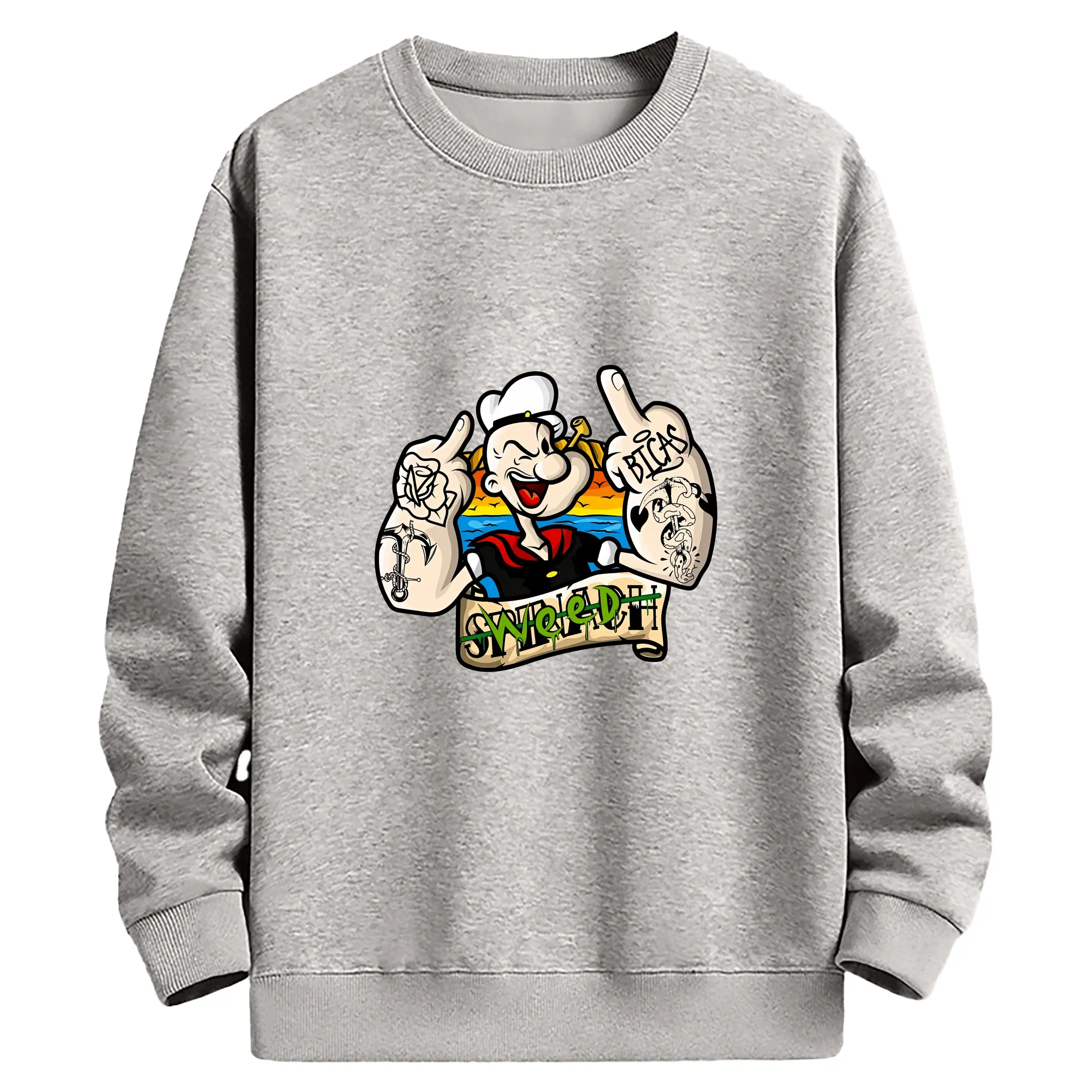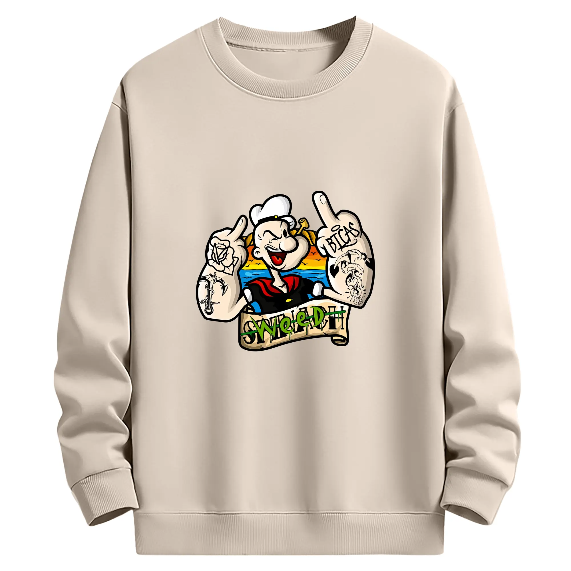 ポパイ グッズ ポパイ - 薄手 クルーネック スウェット 裏毛260g · ポリエステル 春秋向け カジュアル 男女兼用 · トレーナー デイリー スポーツ 散歩に最適