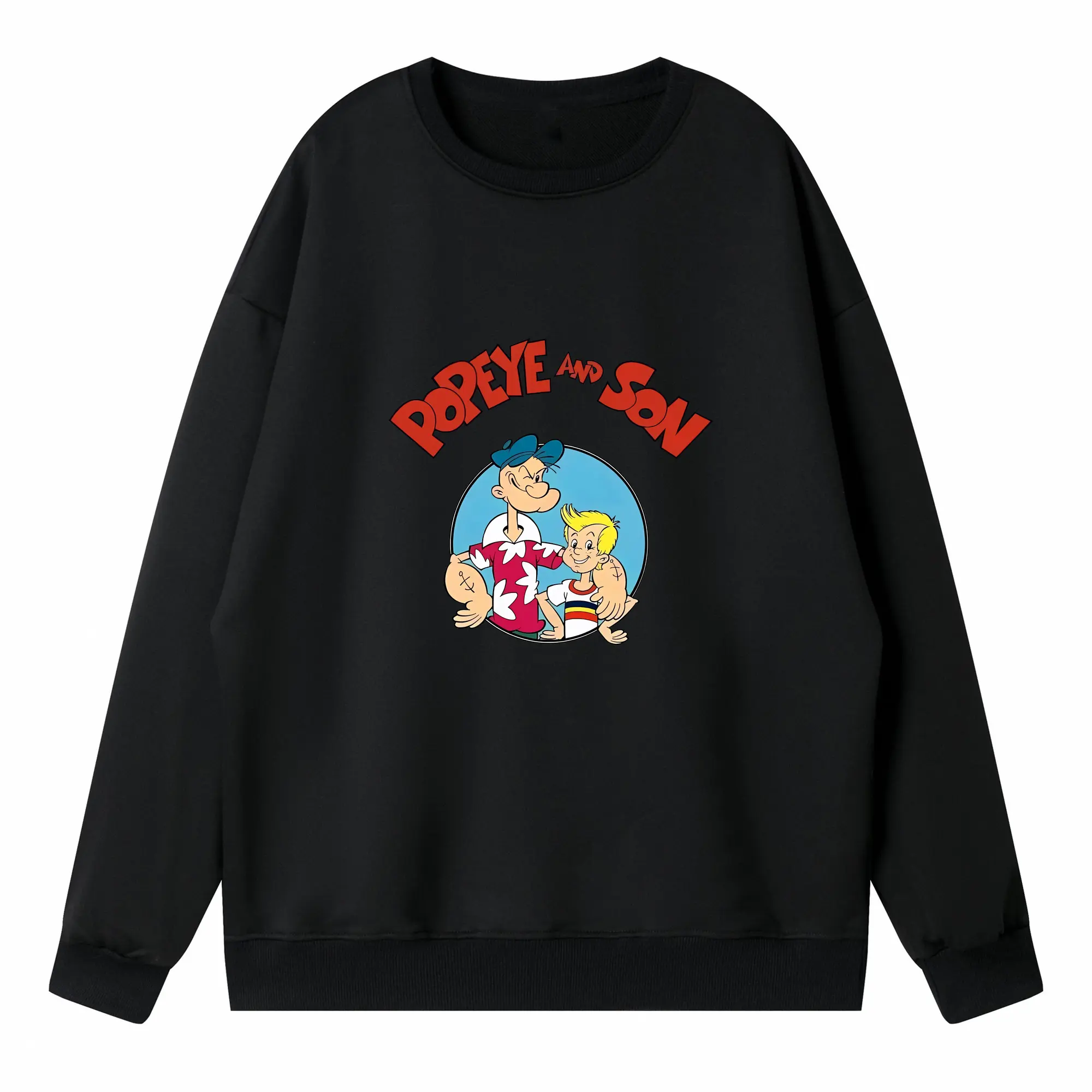 ポパイ グッズ ポパイ - 高品質 クルーネック スウェット ・ コットン59% ポリエステル41% ・ ユニセックス 長袖 トレーナー ・ カジュアル デイリー スポーツ 散歩用