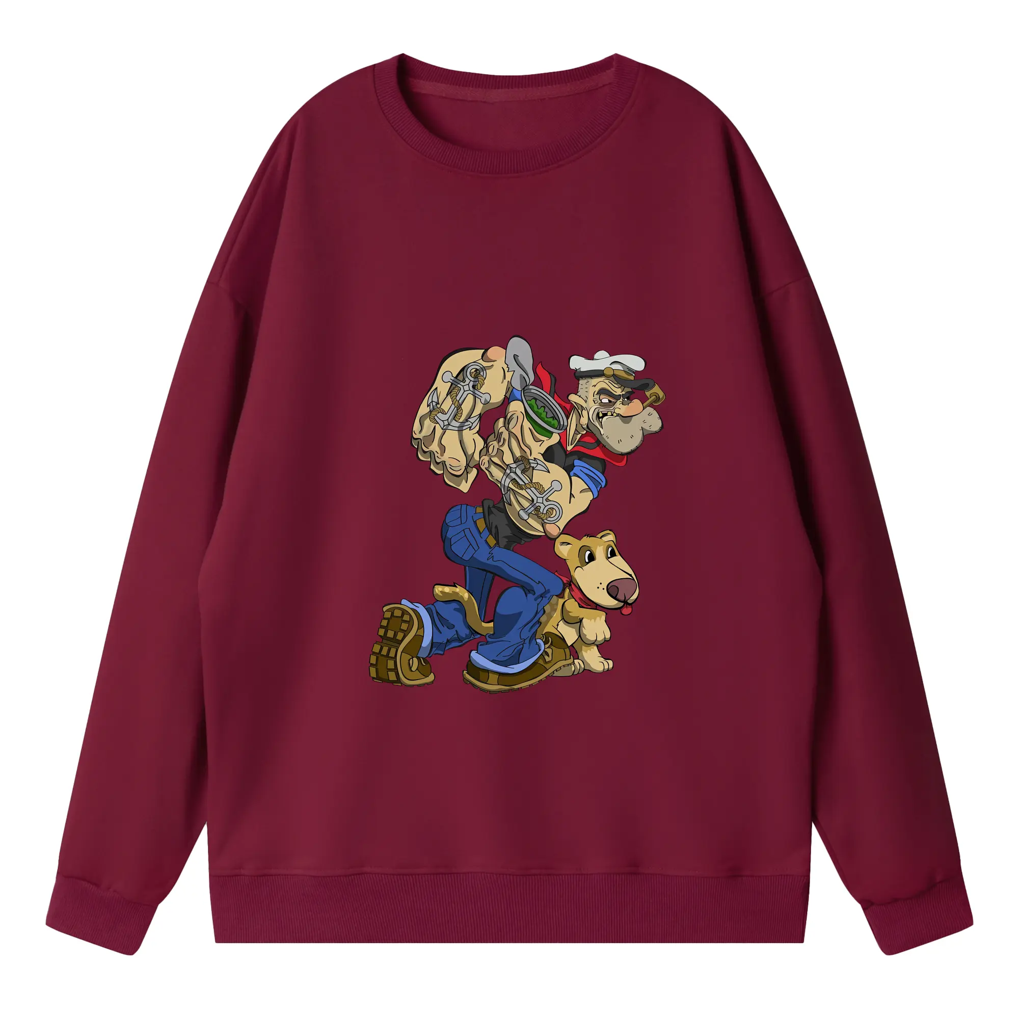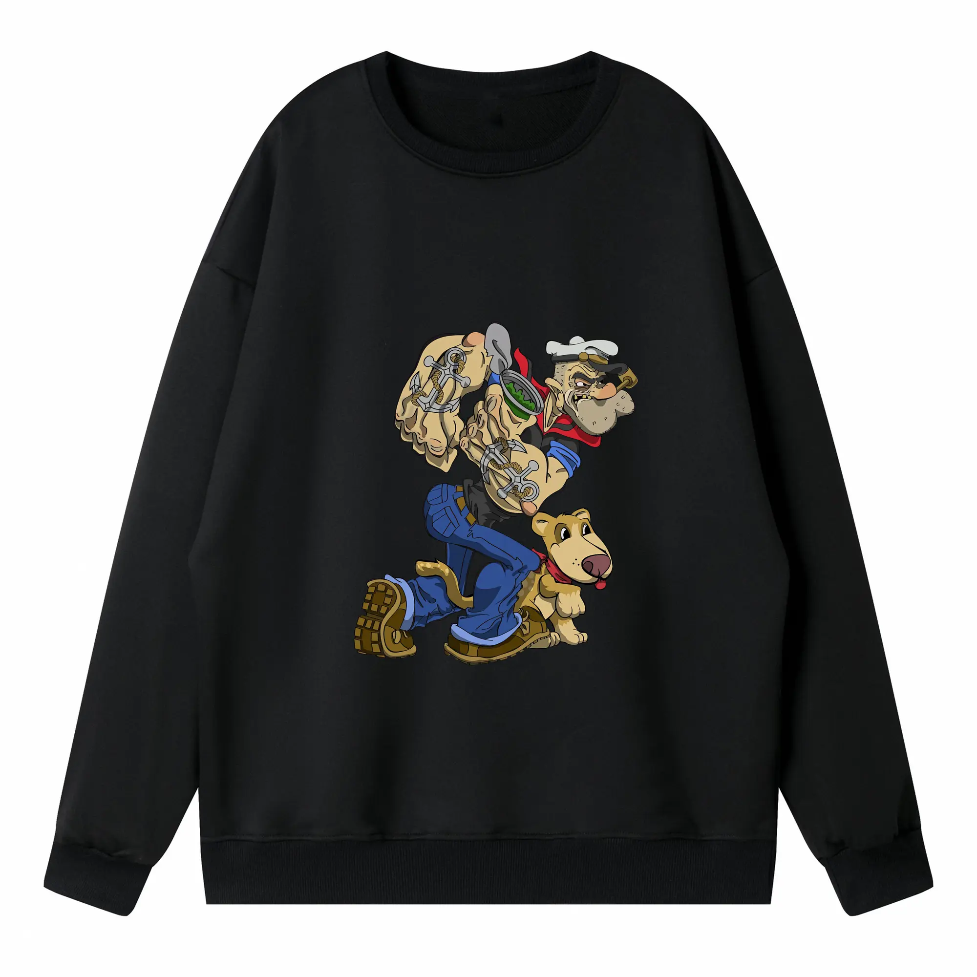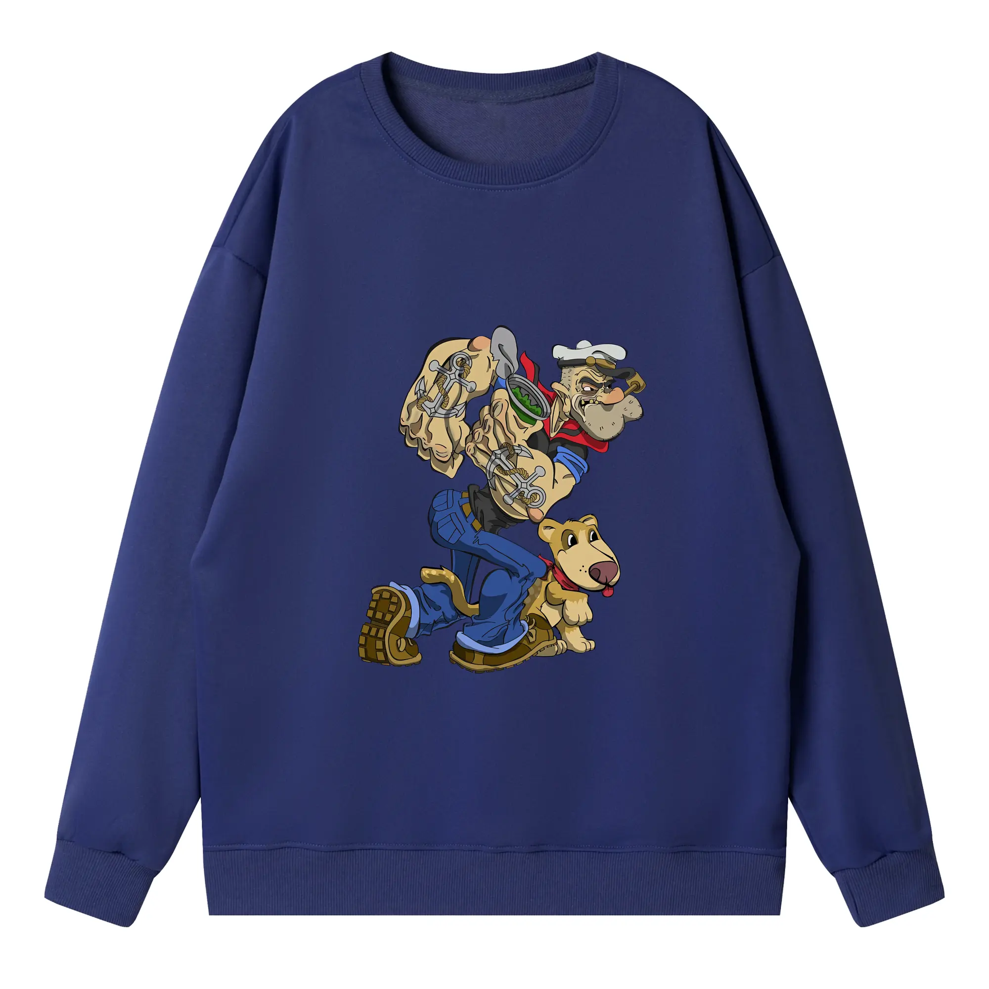ポパイ グッズ ポパイ - 高品質 クルーネック スウェット ・ コットン59% ポリエステル41% ・ ユニセックス 長袖 トレーナー ・ カジュアル デイリー スポーツ 散歩用