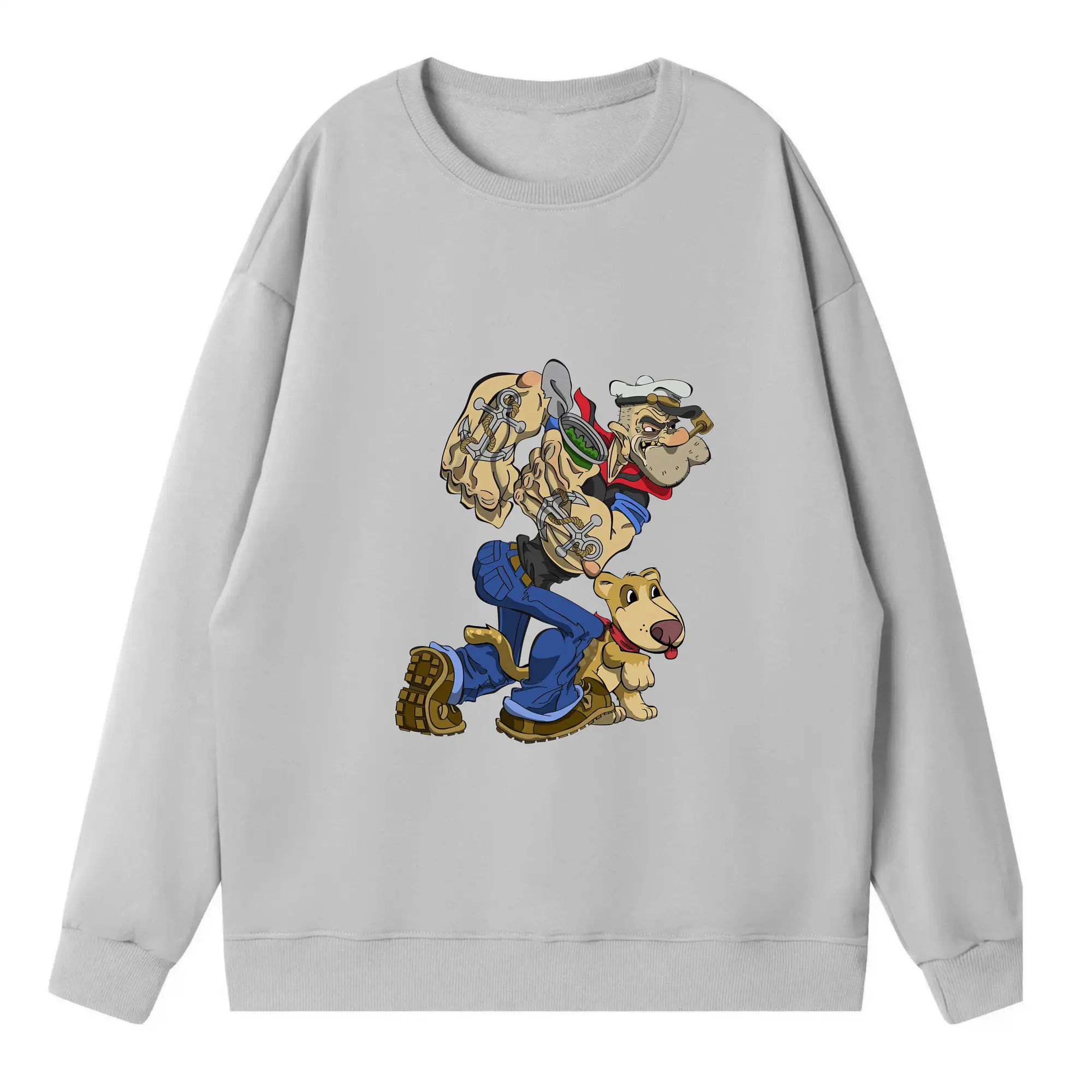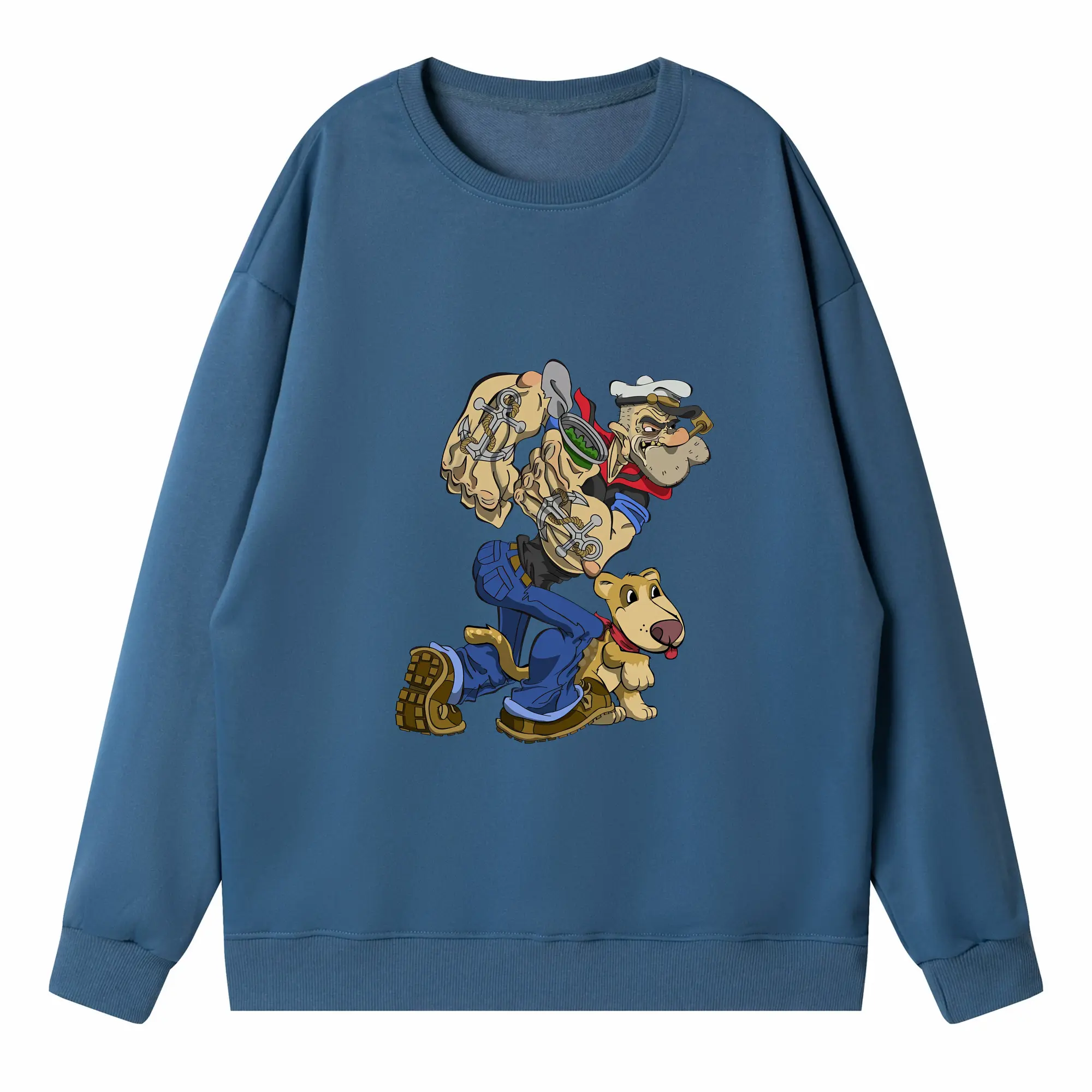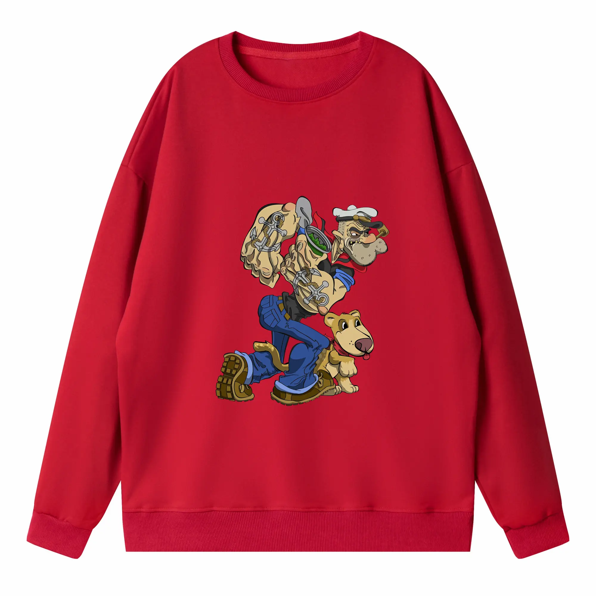 ポパイ グッズ ポパイ - 高品質 クルーネック スウェット ・ コットン59% ポリエステル41% ・ ユニセックス 長袖 トレーナー ・ カジュアル デイリー スポーツ 散歩用
