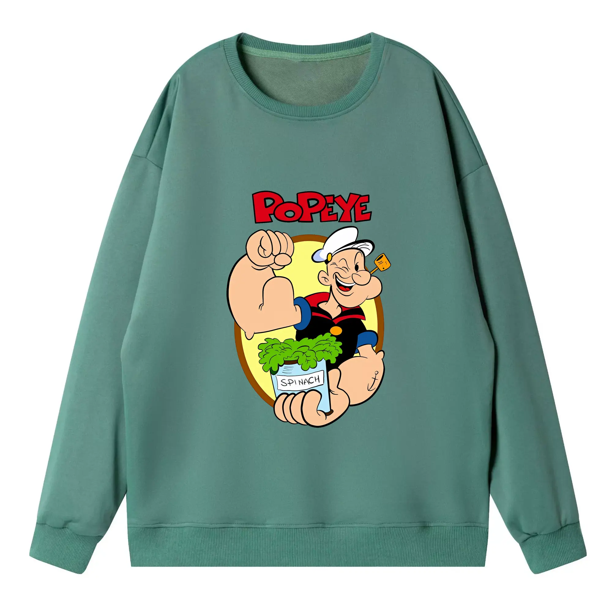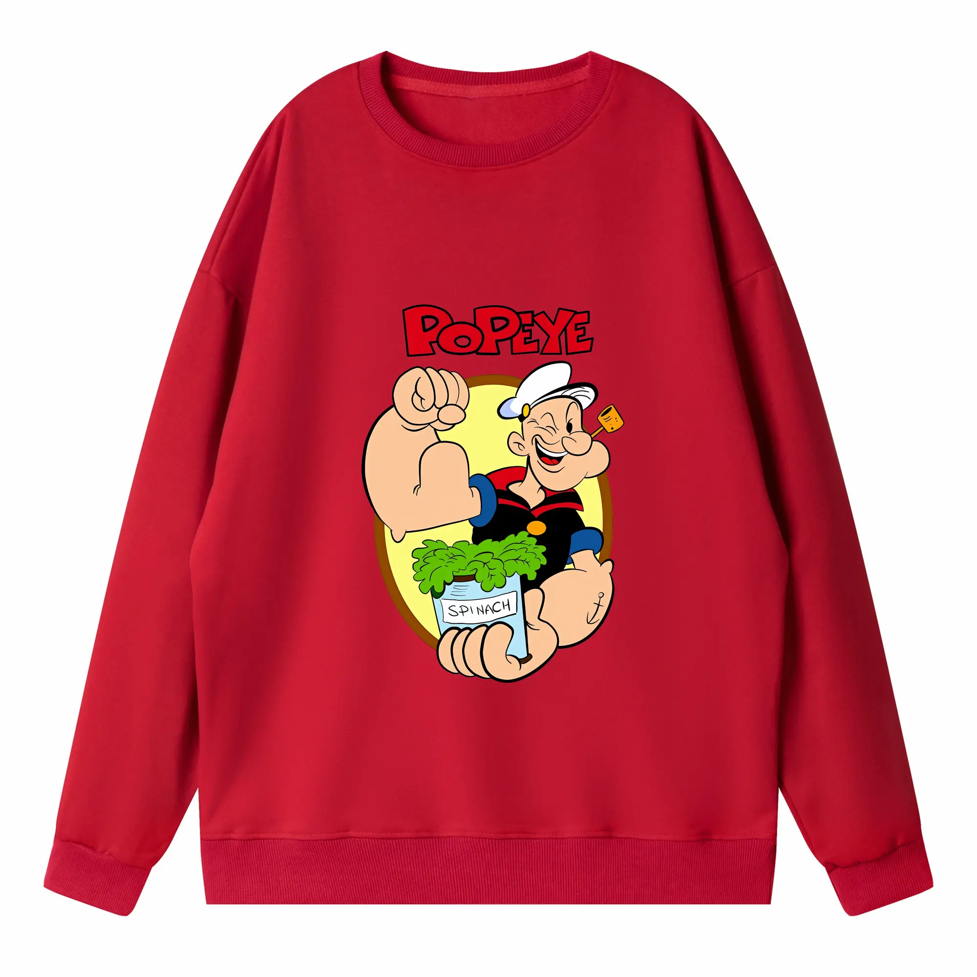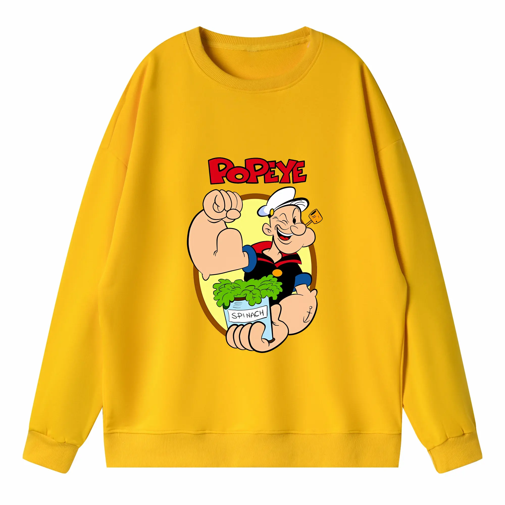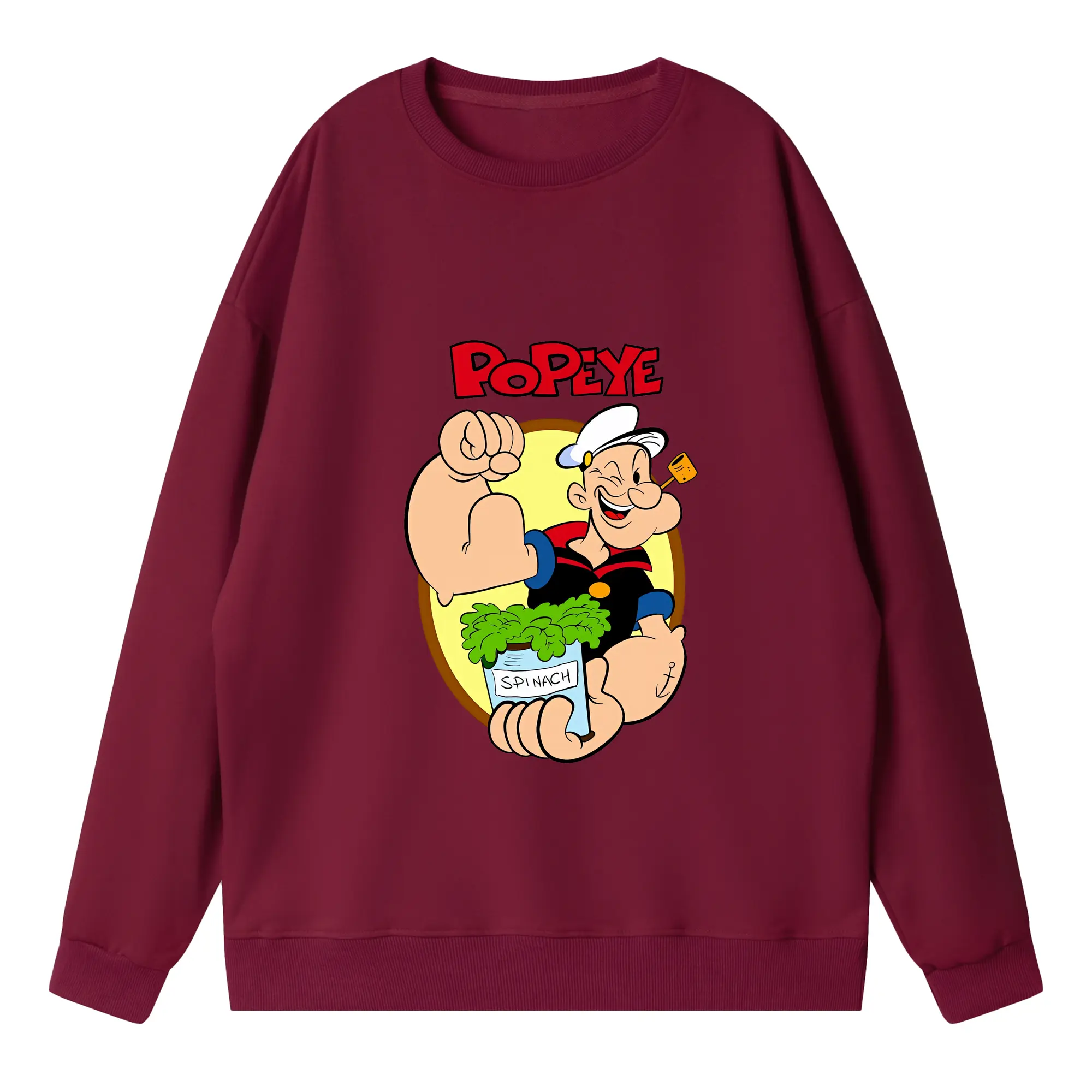 ポパイ グッズ ポパイ - 高品質 クルーネック スウェット ・ コットン59% ポリエステル41% ・ ユニセックス 長袖 トレーナー ・ カジュアル デイリー スポーツ 散歩用